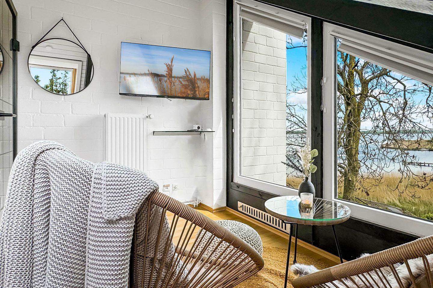 Vom Balkon aus kannst du den Blick über die Landschaft und das Wasser auch draußen genießen – morgens mit Kaffee oder abends, wenn langsam Ruhe einkehrt.