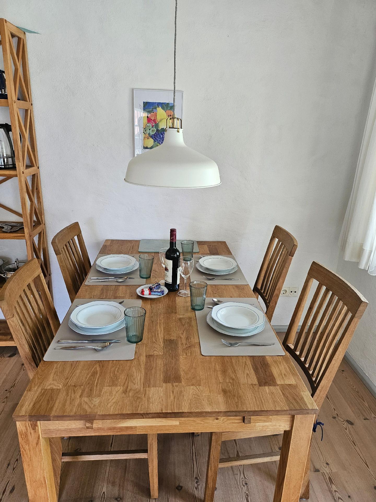 Im Inneren erwartet die Gäste eine liebevoll eingerichtete Ferienwohnung, die keine Wünsche offenlässt. Ausgestattet mit zwei gemütlichen Zimmern, umfasst die Wohnung ein Schlafzimmer mit einem komfortablen Doppelbett und ausreichend Ablagemöglichkeiten sowie ein Wohn/Esszimmer, das mit einem Systemsofa, einem Esstisch, vier Stühlen und einer voll ausgestatteten Einbauküche punktet. Zu den Annehmlichkeiten gehören u.a. ein Smart-Fernseher, eine kombinierte Pad- und Brüh-Kaffeemaschine sowie eine umfangreiche Auswahl an Küchenzubehör. Das helle Duschbad rundet das Raumangebot ab.