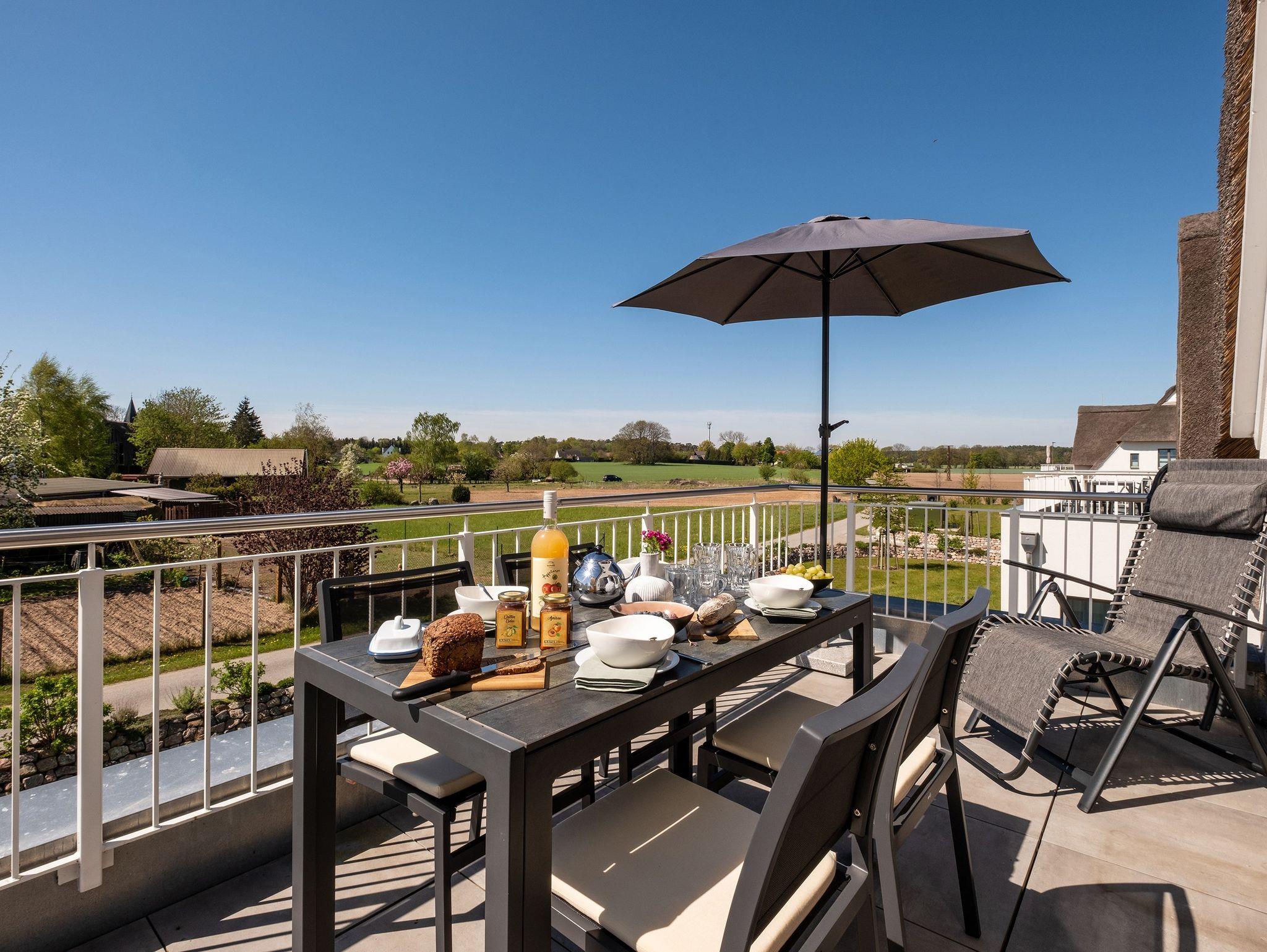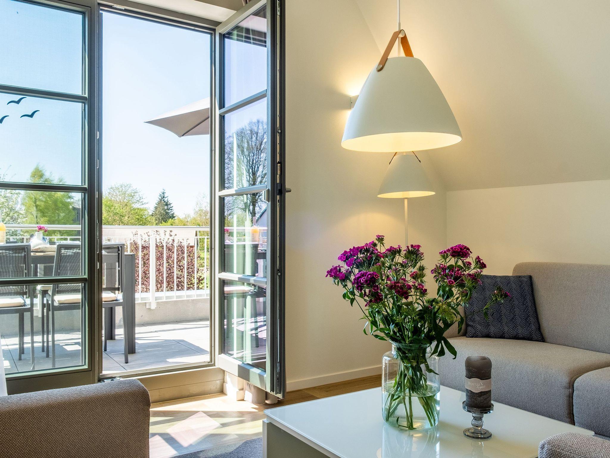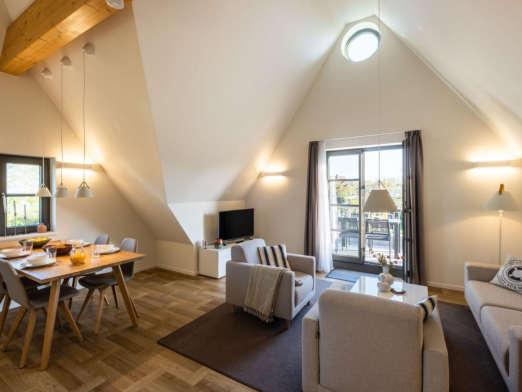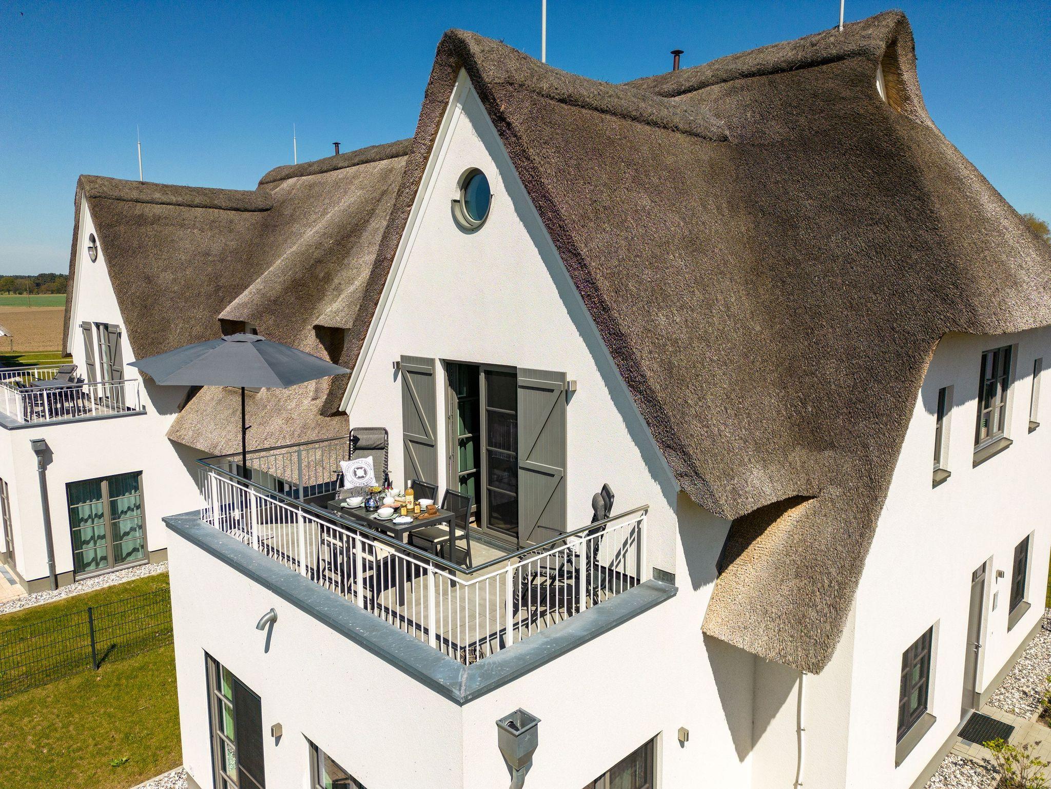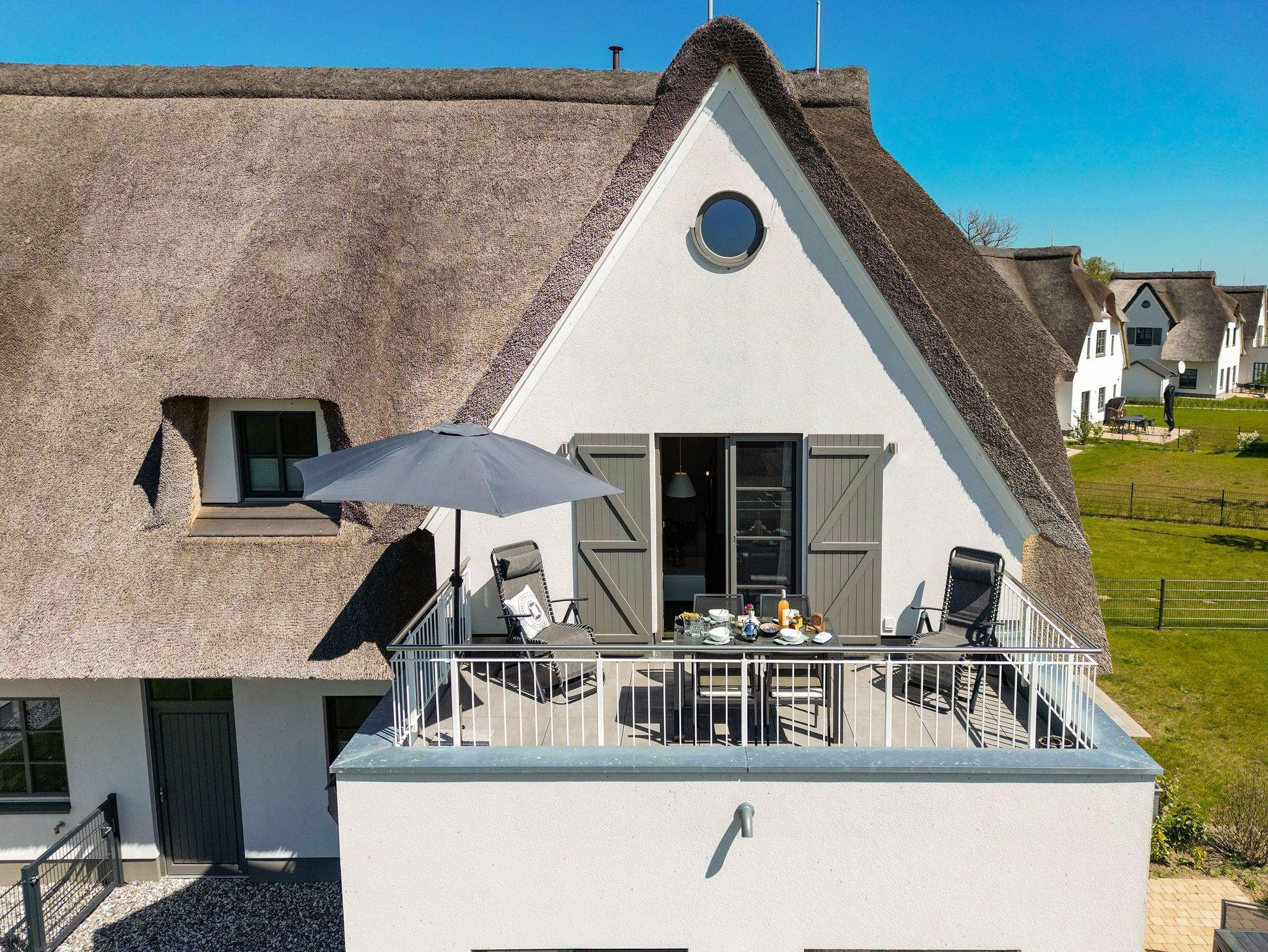 Modernes Apartment unter Reet auf Usedom mit Panoramablick und nachhaltiger Bauweise.