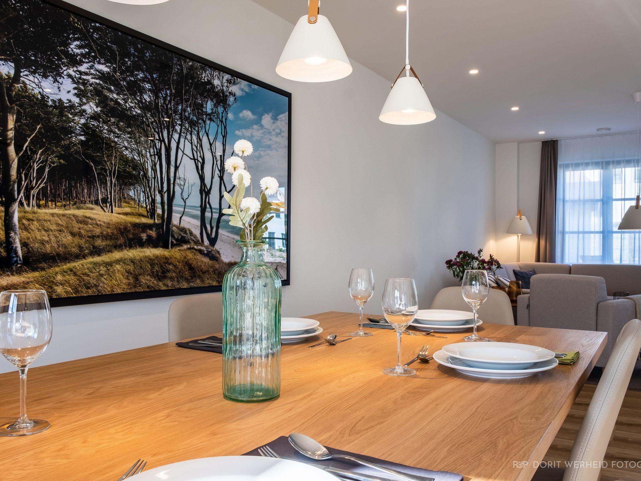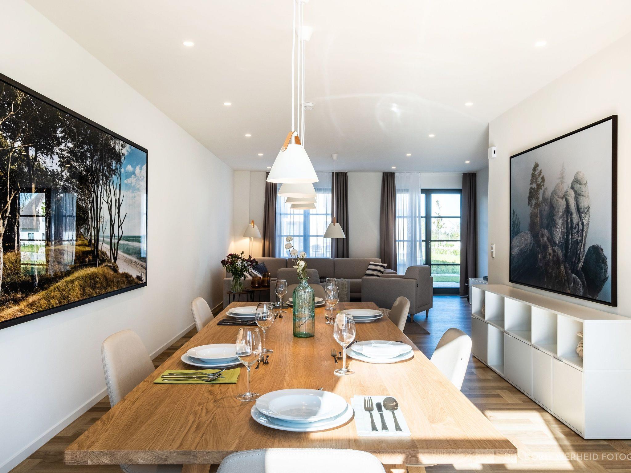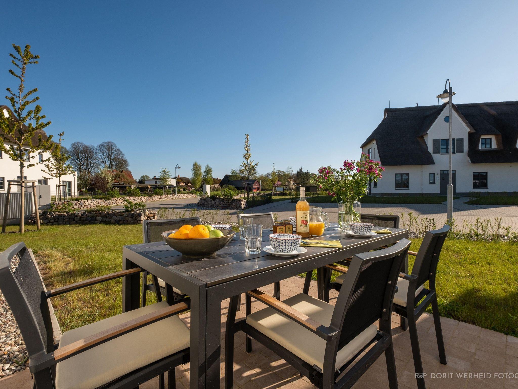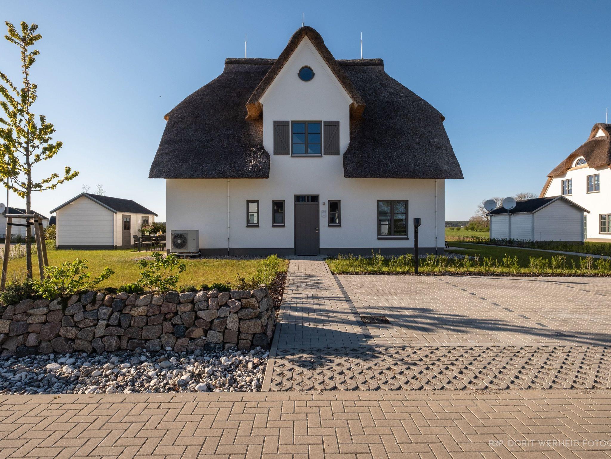 Die Reet gedeckten Häuser wurden in nachhaltiger Holzbauweise errichtet und die Einrichtung ist durch helle sowie freundliche Farben geprägt. Der Blick auf die Haffküste und die umliegende Natur machen Ihren Urlaub einzigartig.