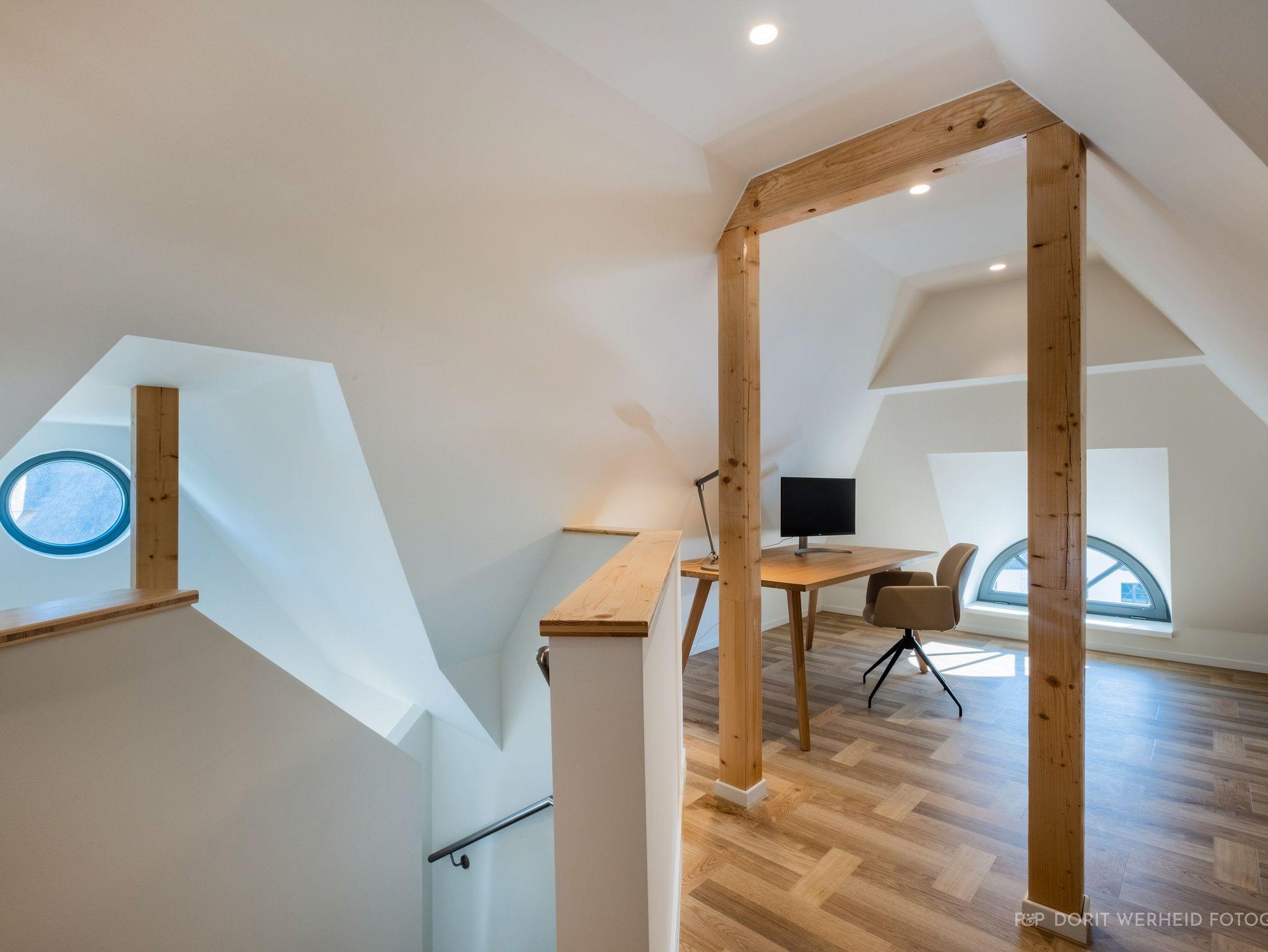 Im Dachgeschoß finden Sie eine offene Galerie wo Sie sich zum Lesen auf das gemütliche Sofa zurückziehen oder am Schreibtisch zurückziehen können. W-Lan ist über einen Router vorhanden.