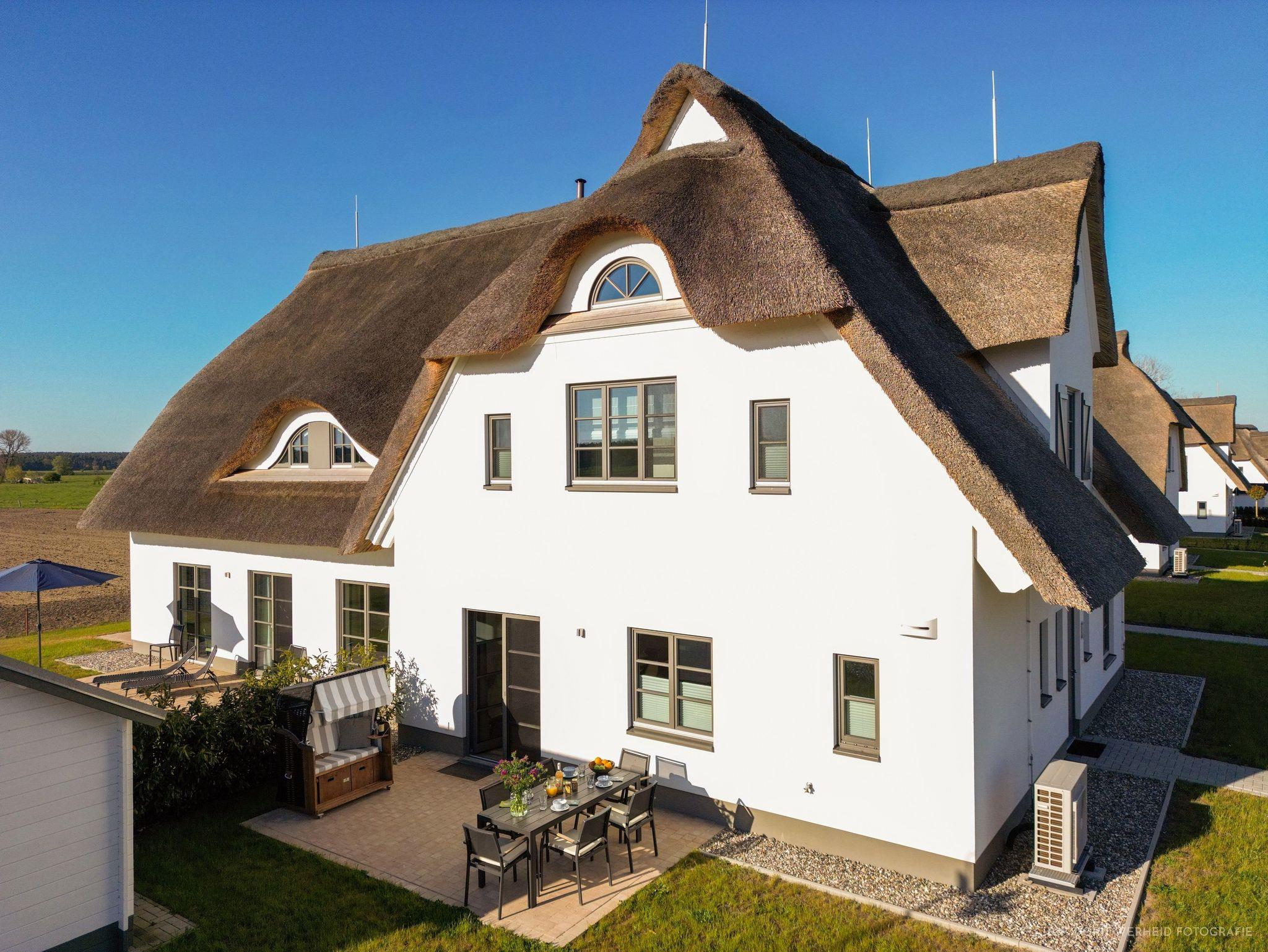 Erleben Sie stilvollen Urlaub im reetgedeckten Ferienhaus Gustav Mahler auf Usedom mit Sauna und herrlichem Naturblick.