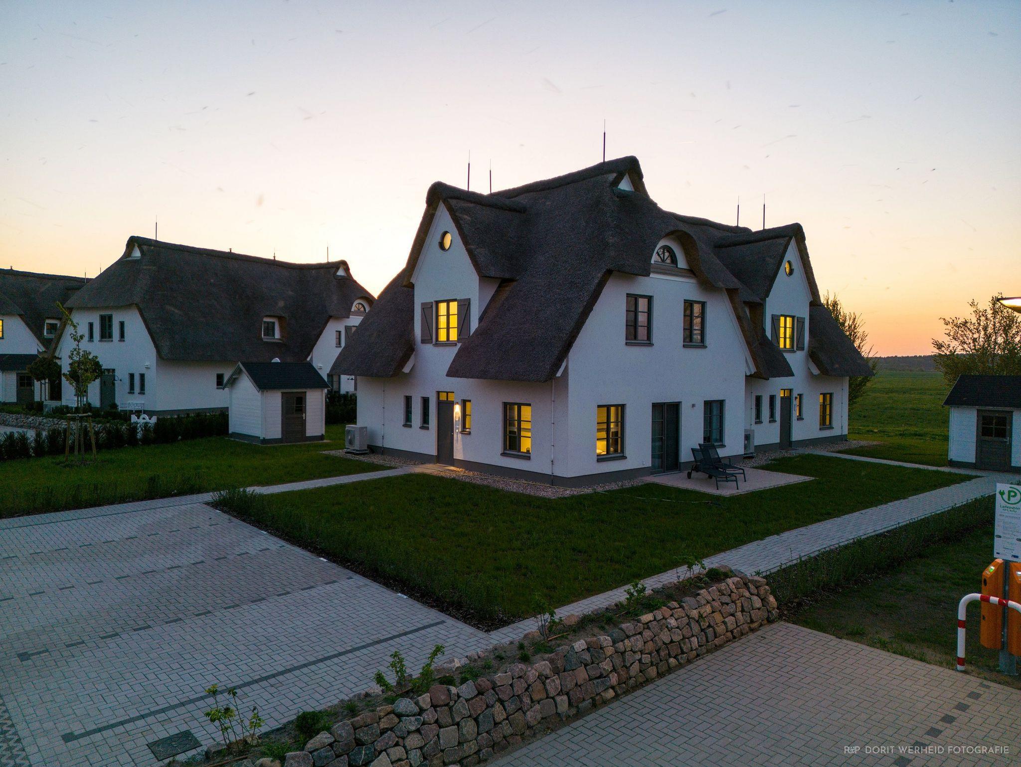 Die Reet gedeckten Häuser wurden in nachhaltiger Holzbauweise errichtet und die Einrichtung ist durch helle sowie freundliche Farben geprägt. Der Blick auf die Haffküste und die umliegende Natur machen Ihren Urlaub einzigartig.