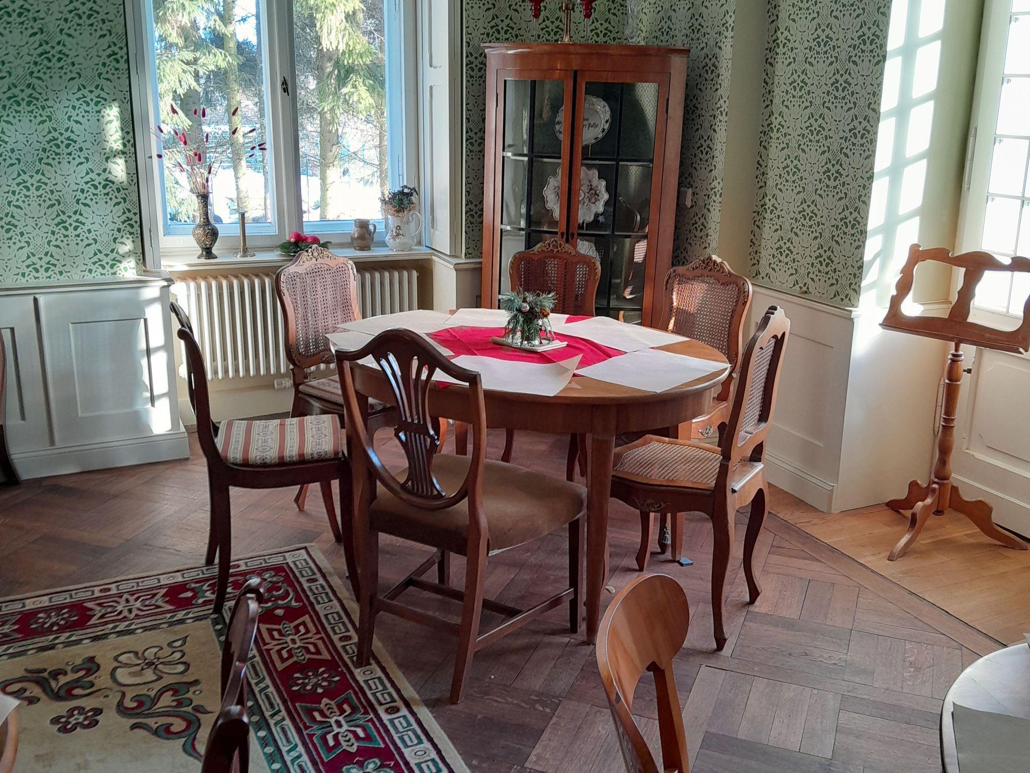 Auf der Terrasse finden Sie in der wärmeren Jahreszeit Sitzmöbel und einen Sonnenschirm. Im Keller des Hauses befinden sich Waschmaschinen und ein Trockner, die von allen Gästen gegen eine geringe Gebühr genutzt werden können.
