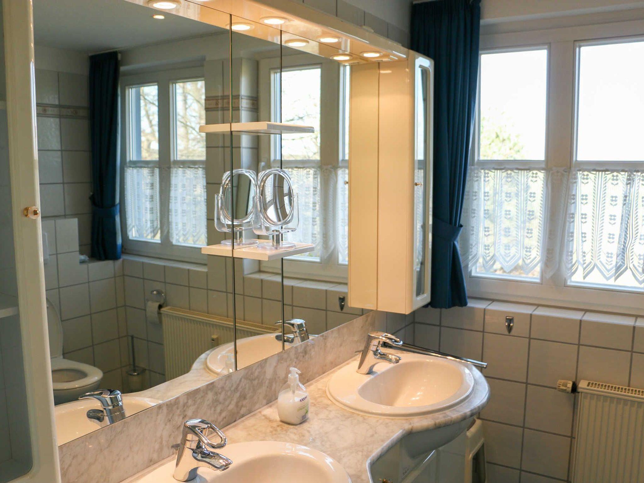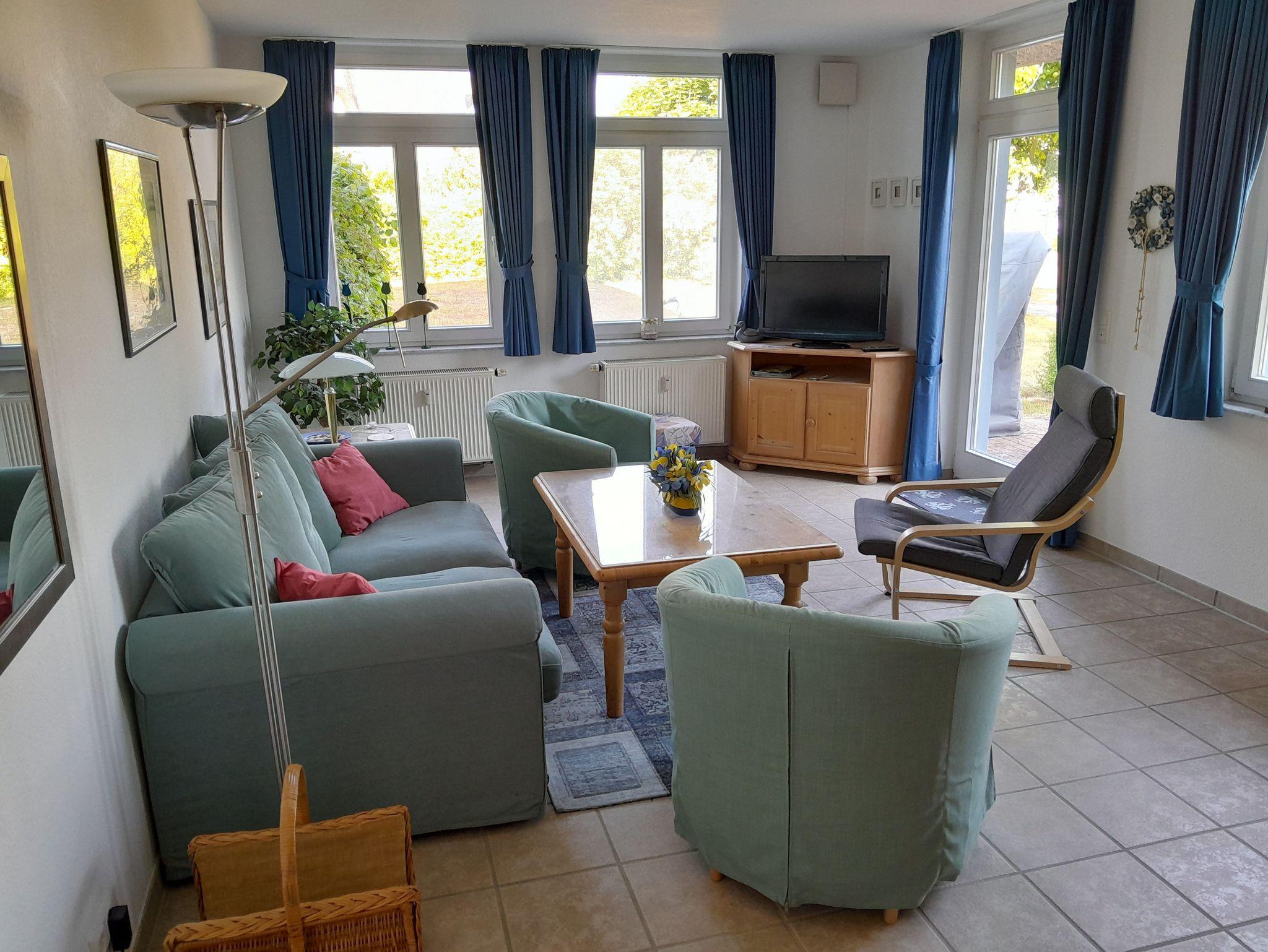 Die Ferienwohnung A 12 ist eine Nichtraucherwohnung auf 2 Etagen mit maritimer Einrichtung. Sie hat im Obergeschoss 2 Schlafzimmer mit je 1 Doppelbett und ein Duschbad. Im Erdgeschoss befindet sich das Wohnzimmer mit Zugang zur Terrasse, die Küche mit Esstisch, sowie ein Gäste-WC. Die Wohnung ist für 4, mit Ausziehsofa im Wohnzimmer, für max. 5 Gäste geeignet. Kinderreisebett und Kinderhochstuhl können nach Absprache bereitgestellt werden. Im Keller des Hauses befinden sich Waschmaschine und Trockner, die gegen geringe Gebühr von allen Gästen genutzt werden können.