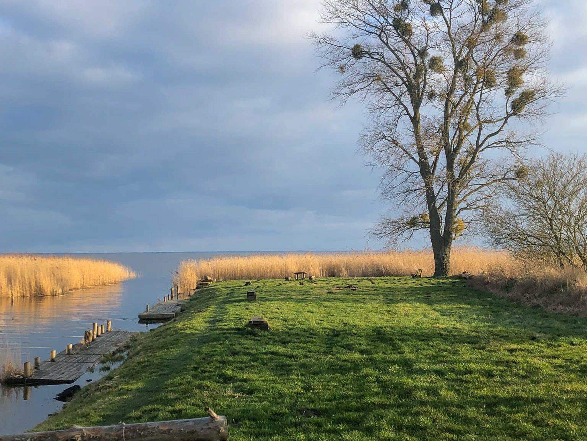 Es erwartet Sie eine reetgedeckte Ferienwohnung mit 82 qm Wohnfläche auf 2 Etagen und 2 Schlafzimmern im Obergeschoss. Fast wie ein Einzelhaus mit eigenem Eingang und Terrasse liegt sie auf einem 5000 qm großen Grundstück. Auf dem Gelände befinden sich 2 Reetdachhäuser mit jeweils mehreren Ferienwohnungen. Umgeben sind diese von einer Liegewiese mit Spielplatz, 2 Grillplätzen, Tischtennis-platten und einem dekorativen Segelboot. Vor Ort können auch Fahrräder ausgeliehen werden.