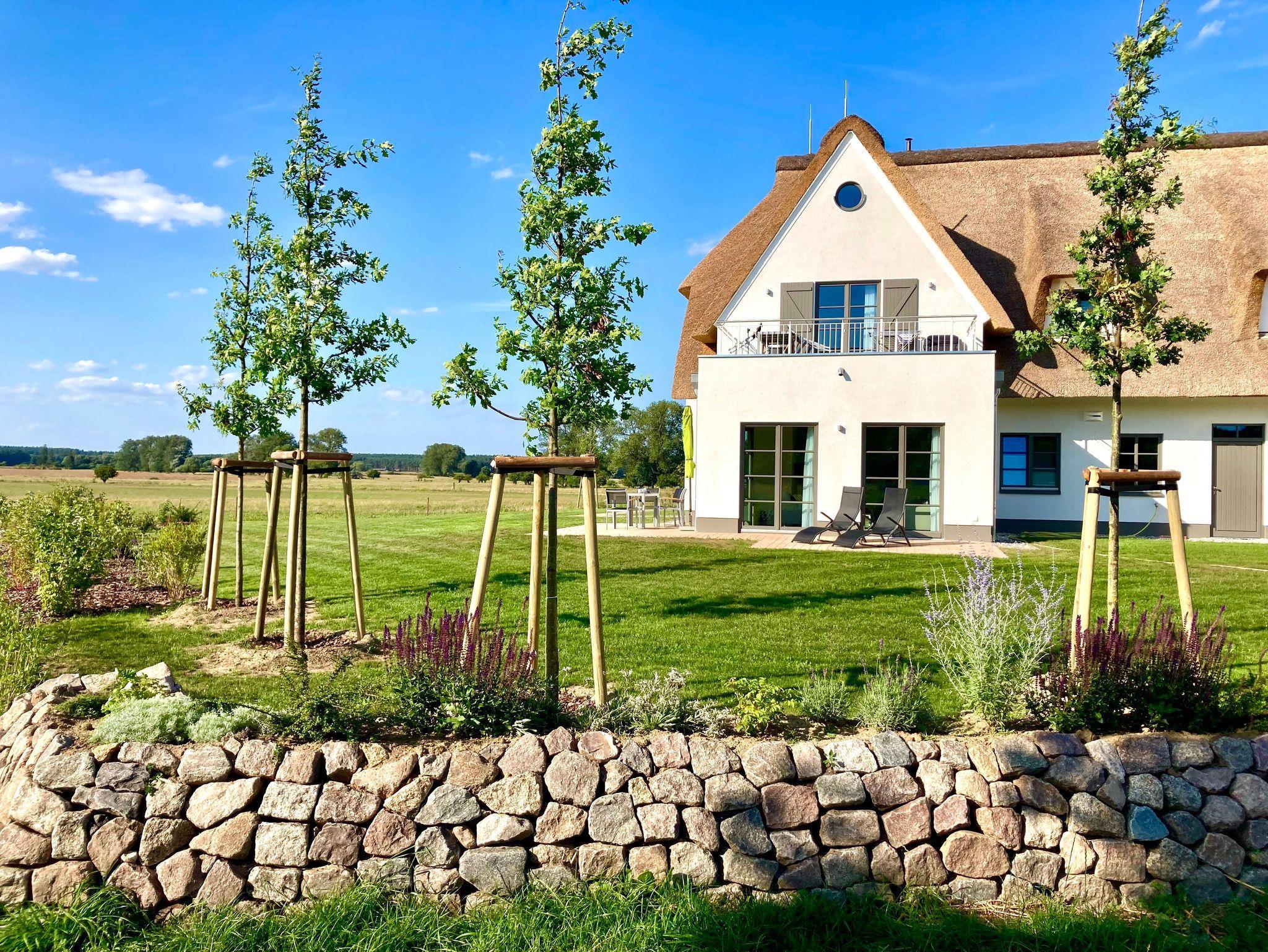 Genießen Sie nachhaltigen Komfort und Sauna im reetgedeckten Apartment auf Usedom mit großem Garten und Terrasse.