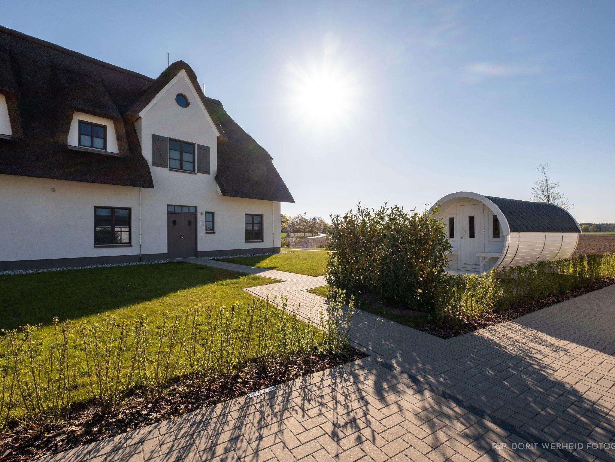 Die Reet gedeckten Häuser wurden in nachhaltiger Holzbauweise errichtet und die Einrichtung ist durch helle sowie freundliche Farben geprägt. Der Blick auf die Haffküste und die umliegende Natur machen Ihren Urlaub einzigartig.