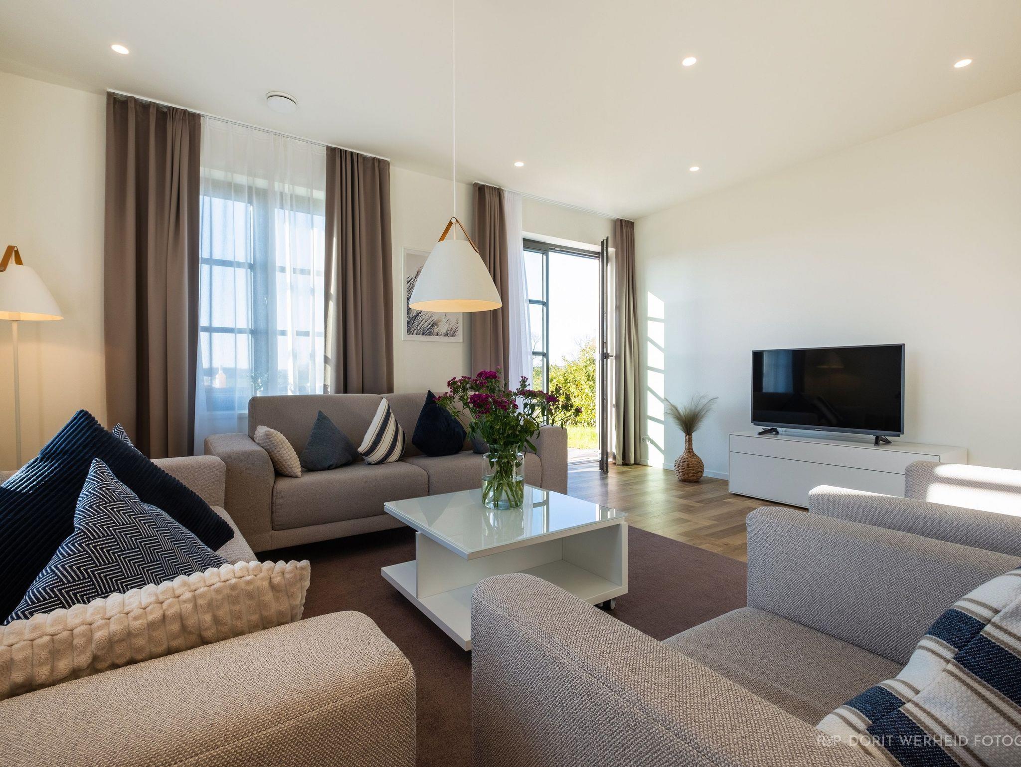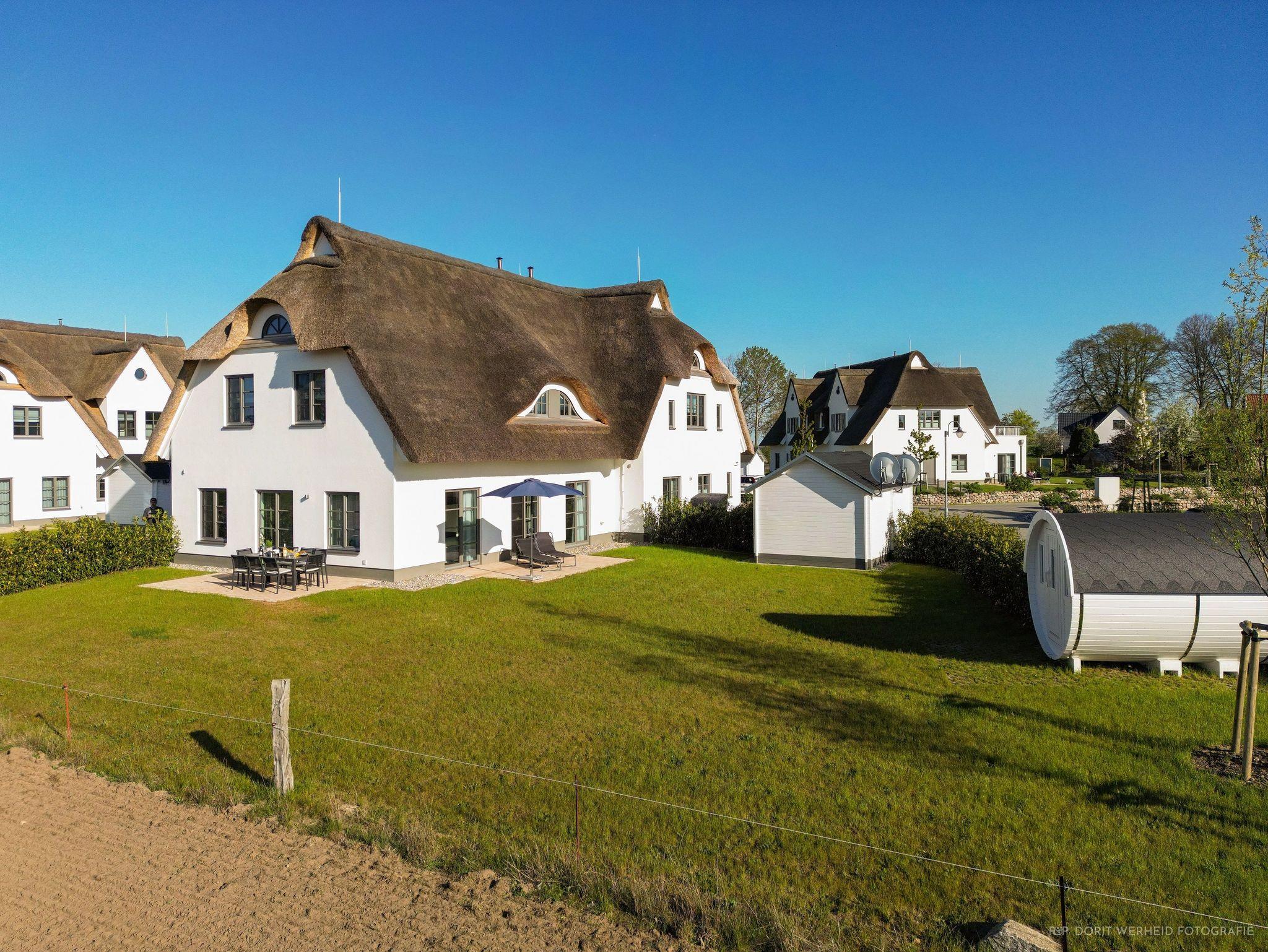 Modernes Ferienhaus Lasse Thoresen auf Usedom mit Reetdach, Sauna und Panoramablick in nachhaltiger Holzbauweise.