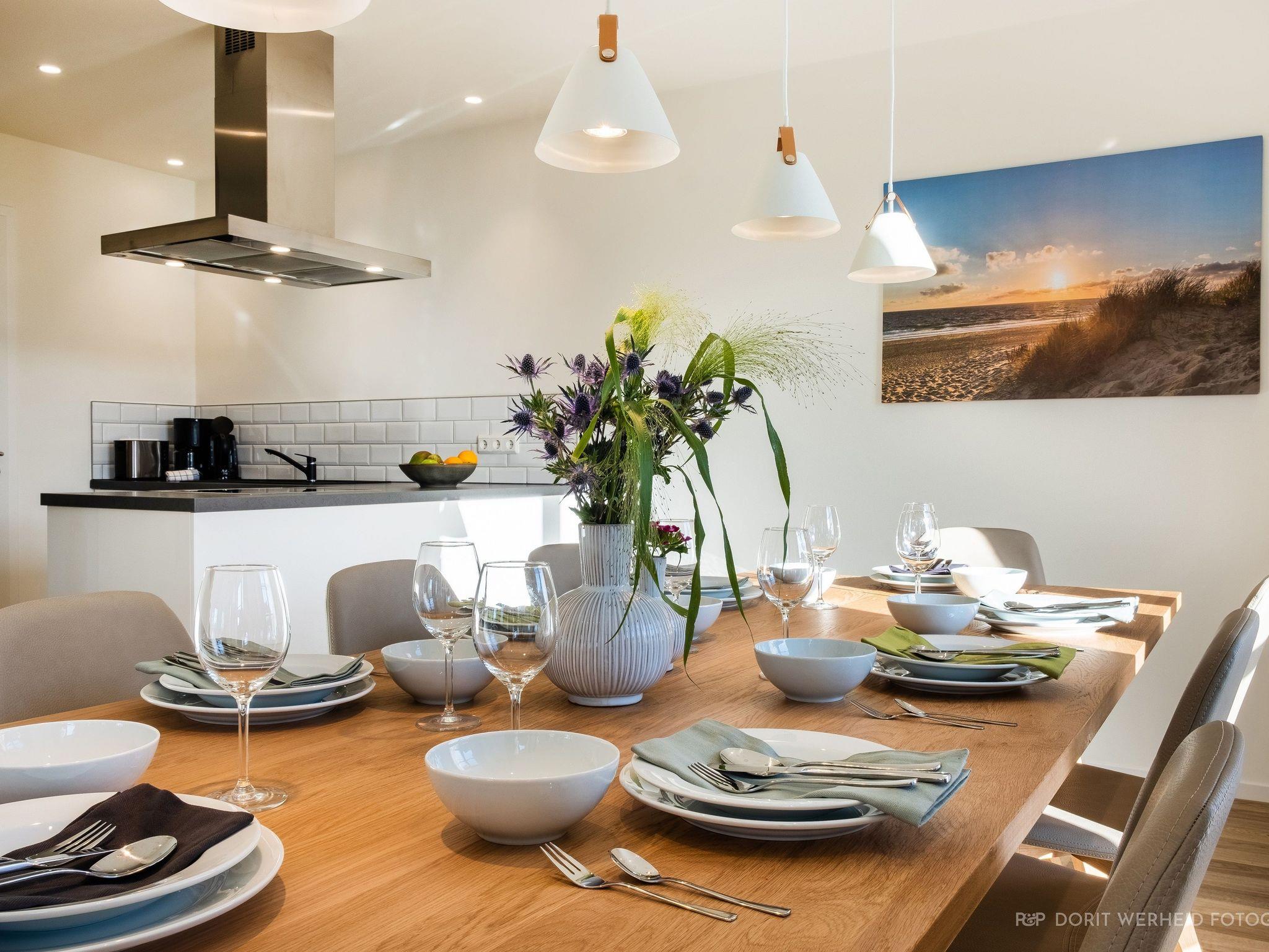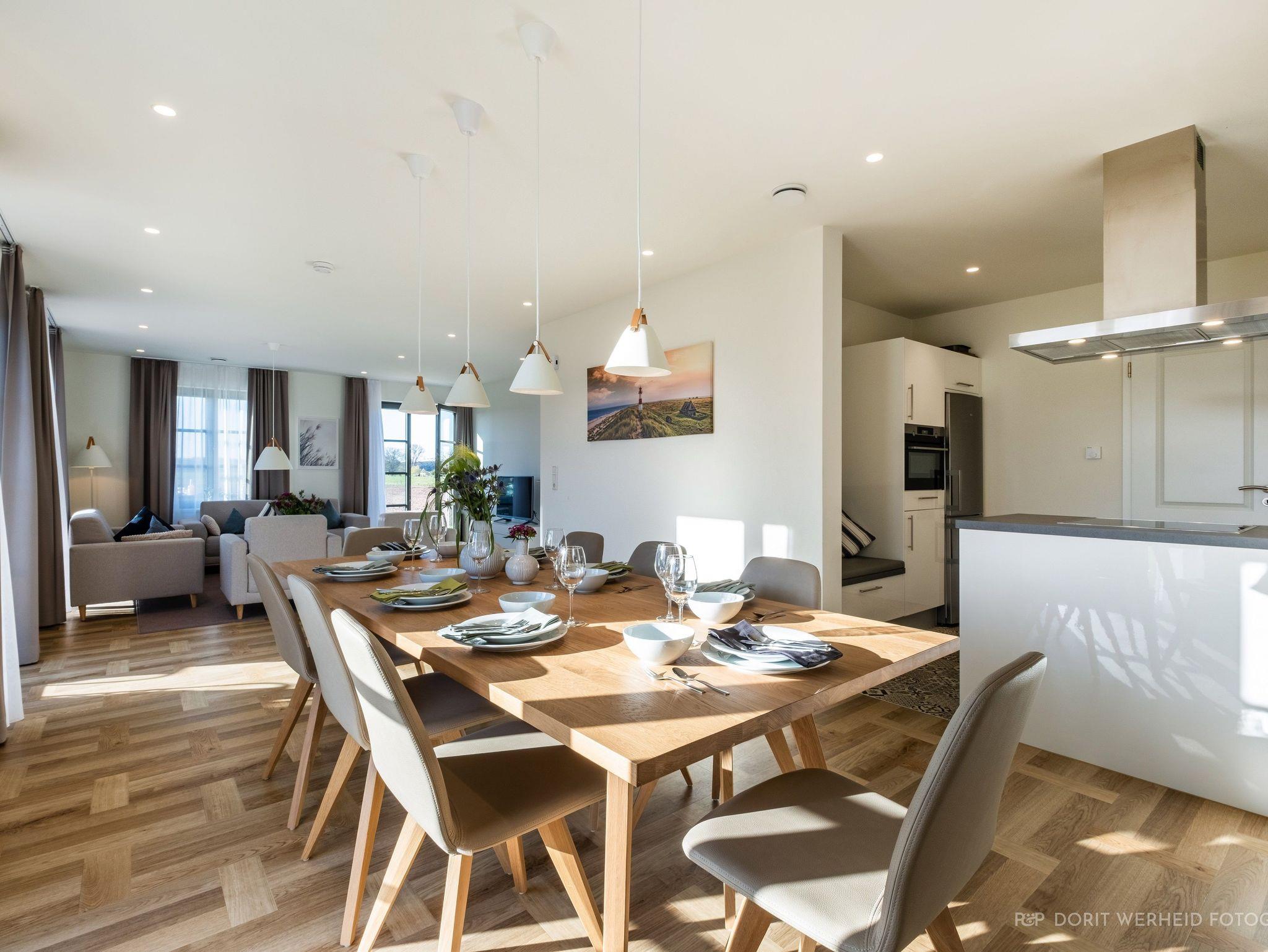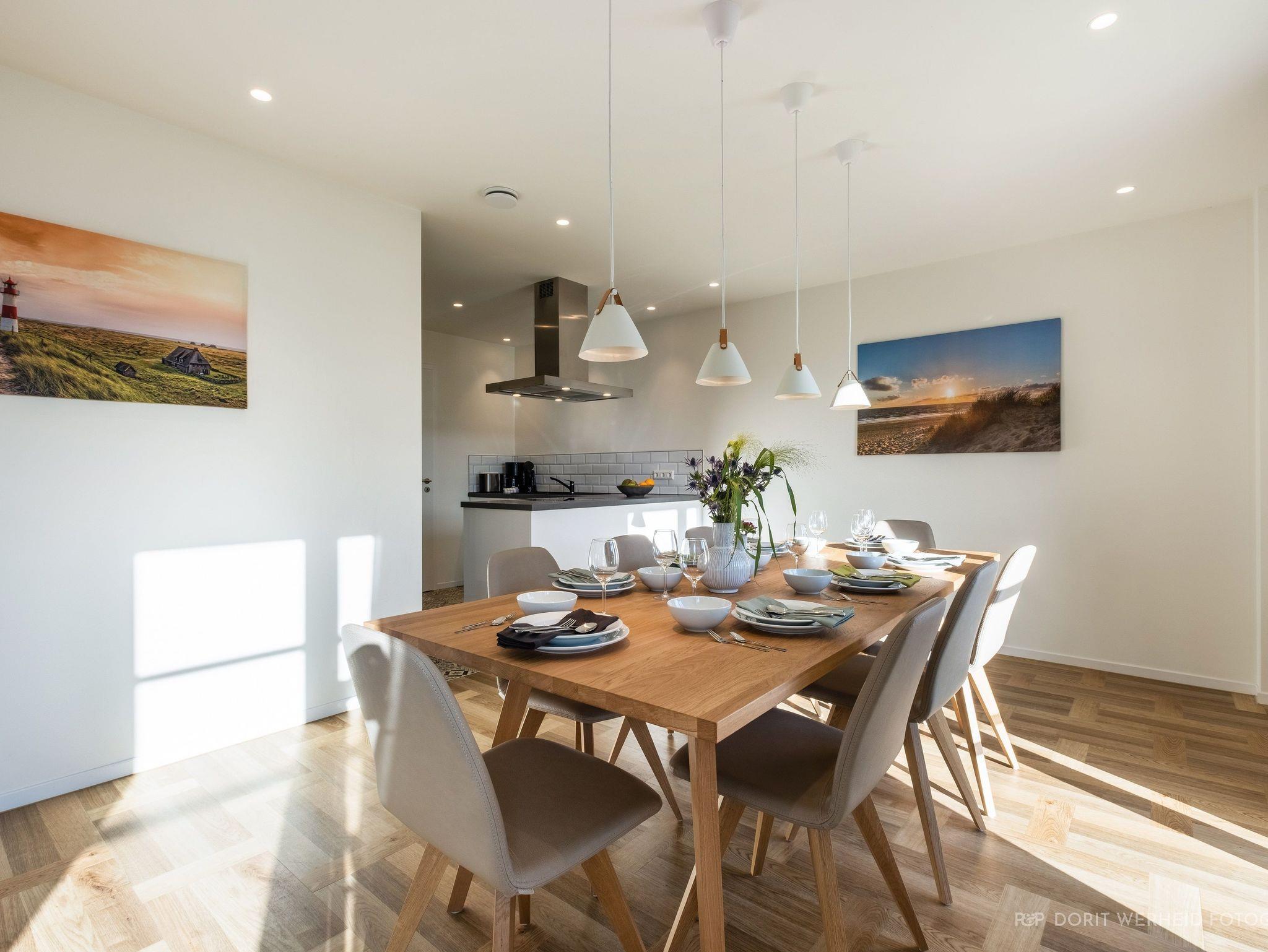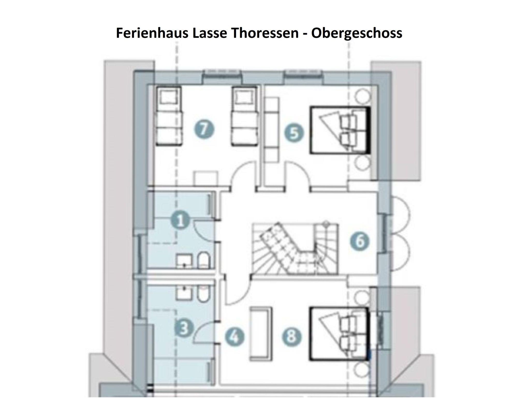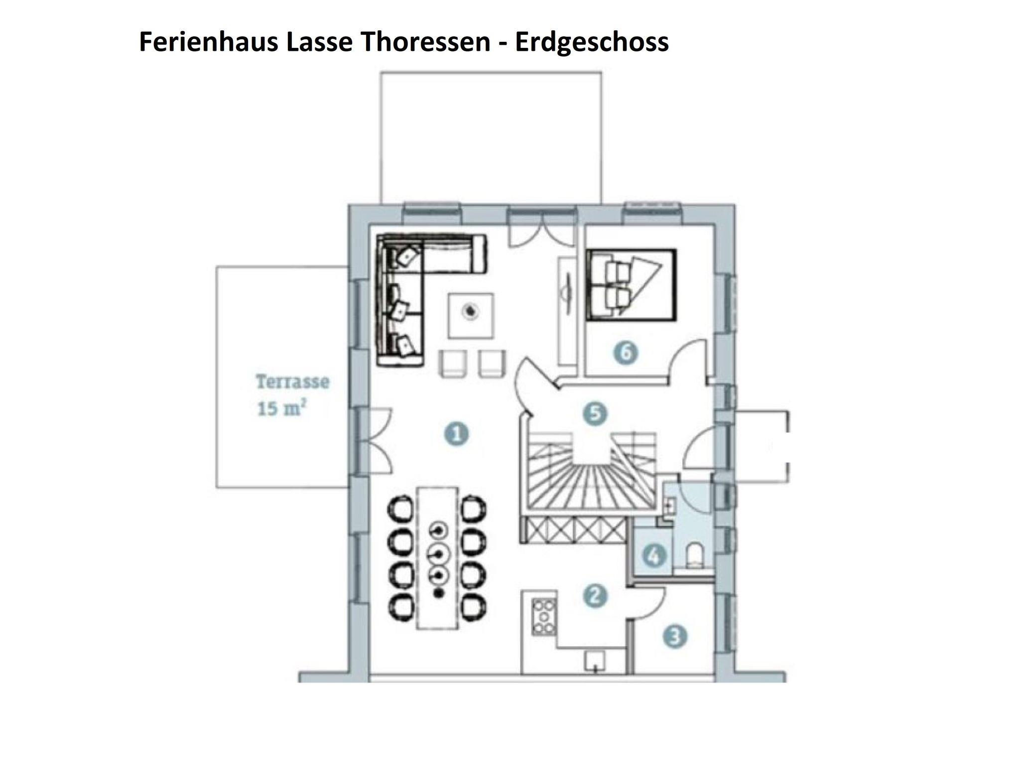 Willkommen im Ferienhaus Lasse Thoresen! Das 165 m² große Ferienhaus erstreckt sich auf 3 Etagen und ist für max. 8 Erwachsene + 1 Kind von max. 3 Jahren geeignet und stilvoll-modern ausgestattet. Es verfügt über eine Wohnküche mit angrenzenden Terrassen, 4 Schlafzimmer und 3 Badezimmer.