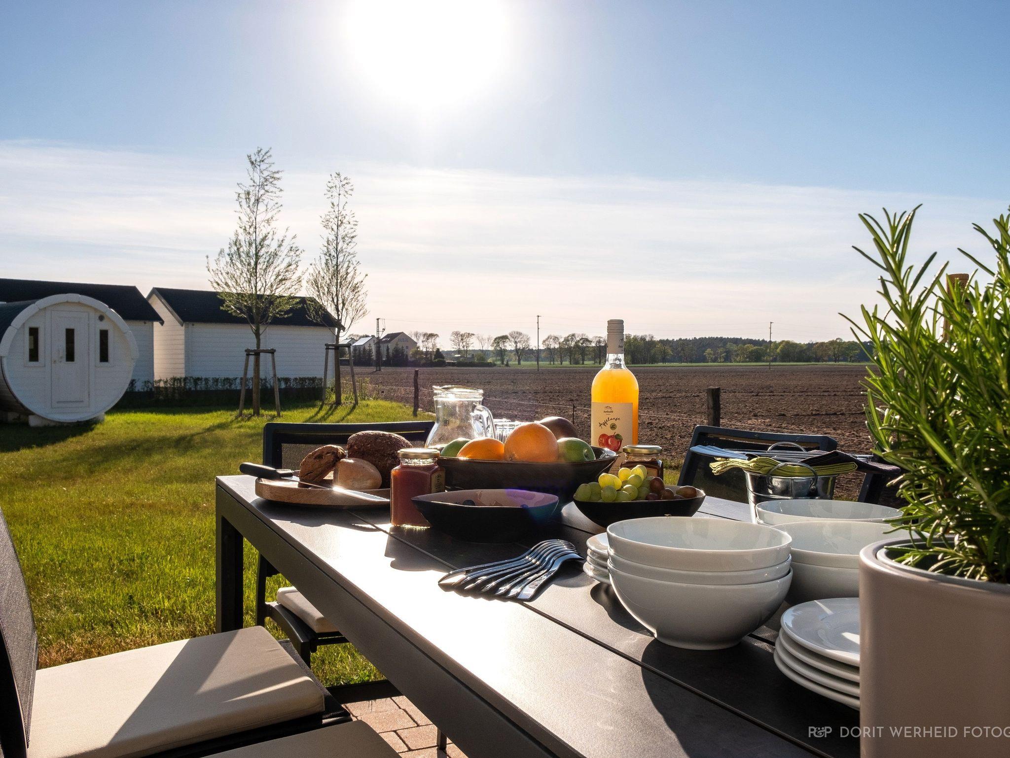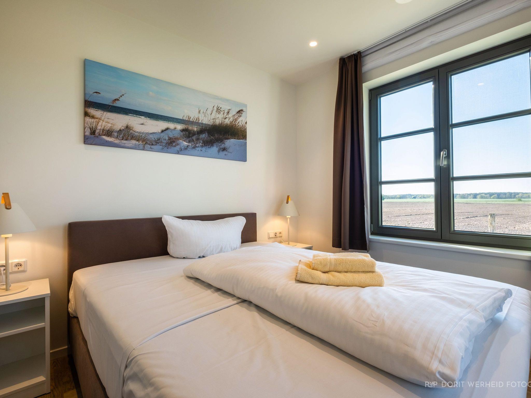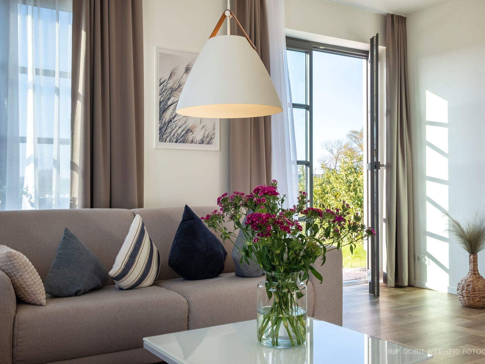 Die Reet gedeckten Häuser wurden in nachhaltiger Holzbauweise errichtet und die Einrichtung ist durch helle sowie freundliche Farben geprägt. Der Blick auf die Haffküste und die umliegende Natur machen Ihren Urlaub einzigartig.