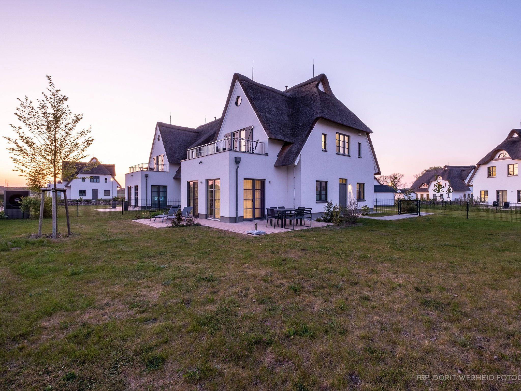 Die Reet gedeckten Häuser wurden in nachhaltiger Holzbauweise errichtet und die Einrichtung ist durch helle sowie freundliche Farben geprägt. Der Blick auf die Haffküste und die umliegende Natur machen Ihren Urlaub einzigartig.