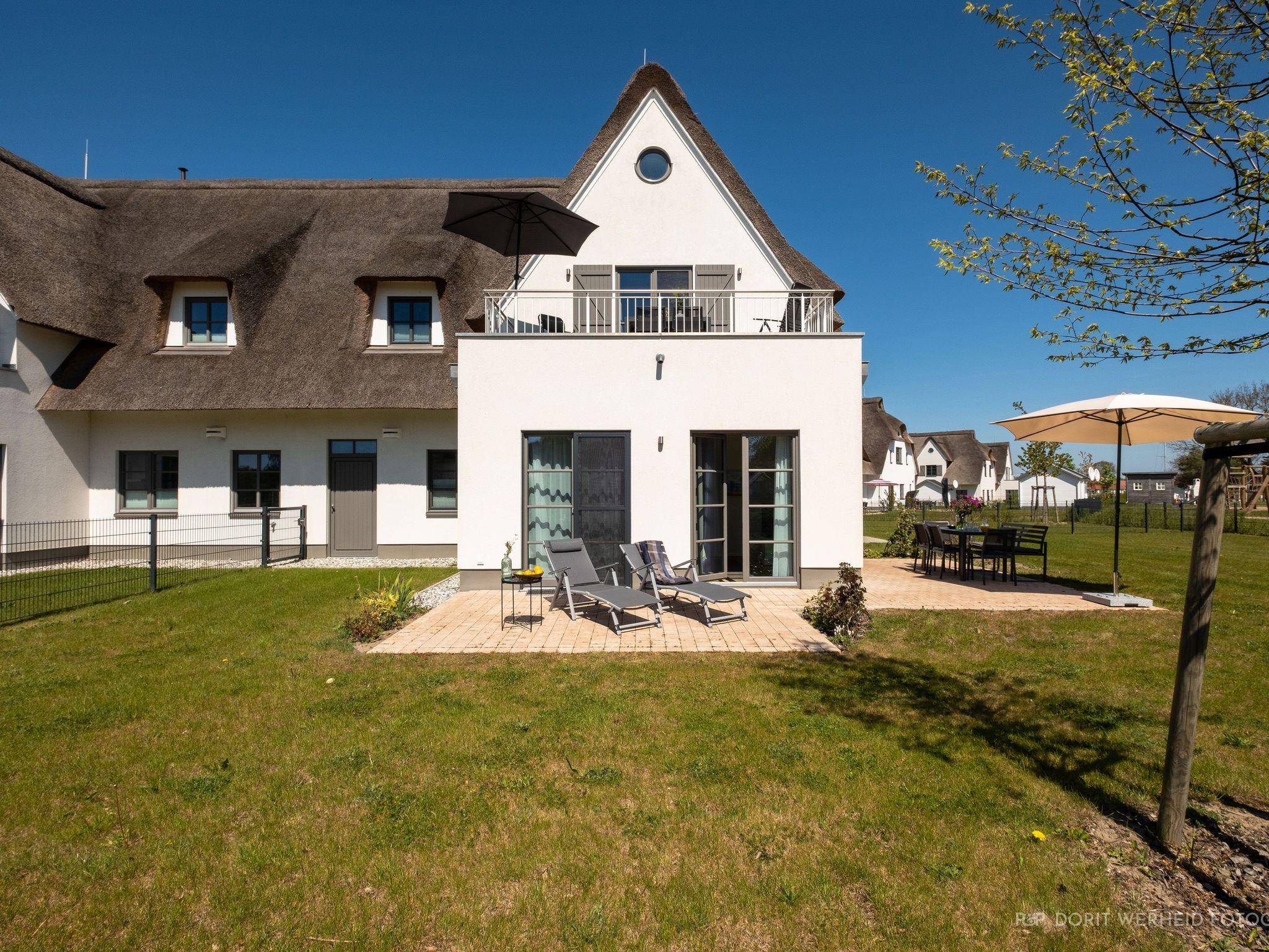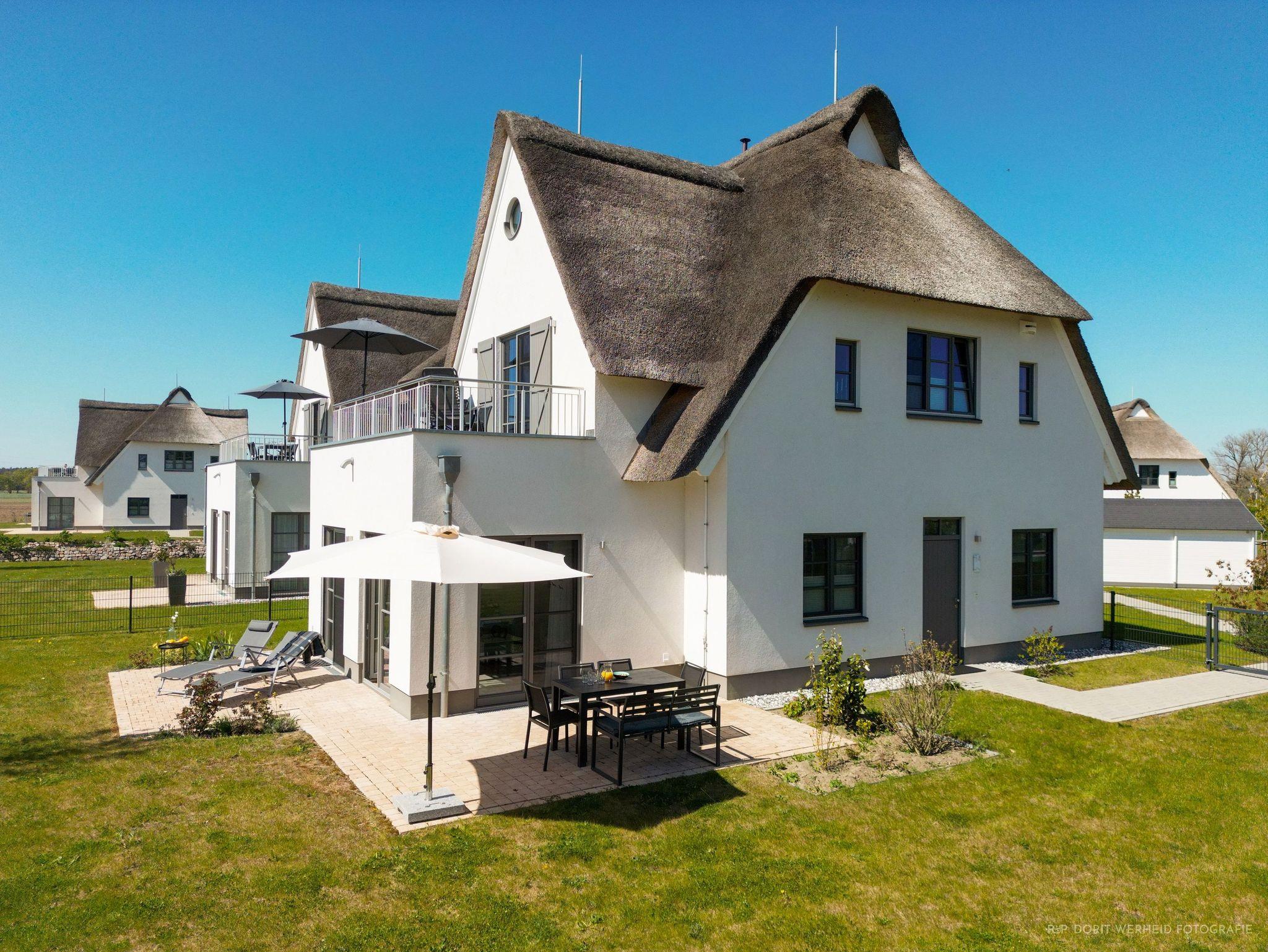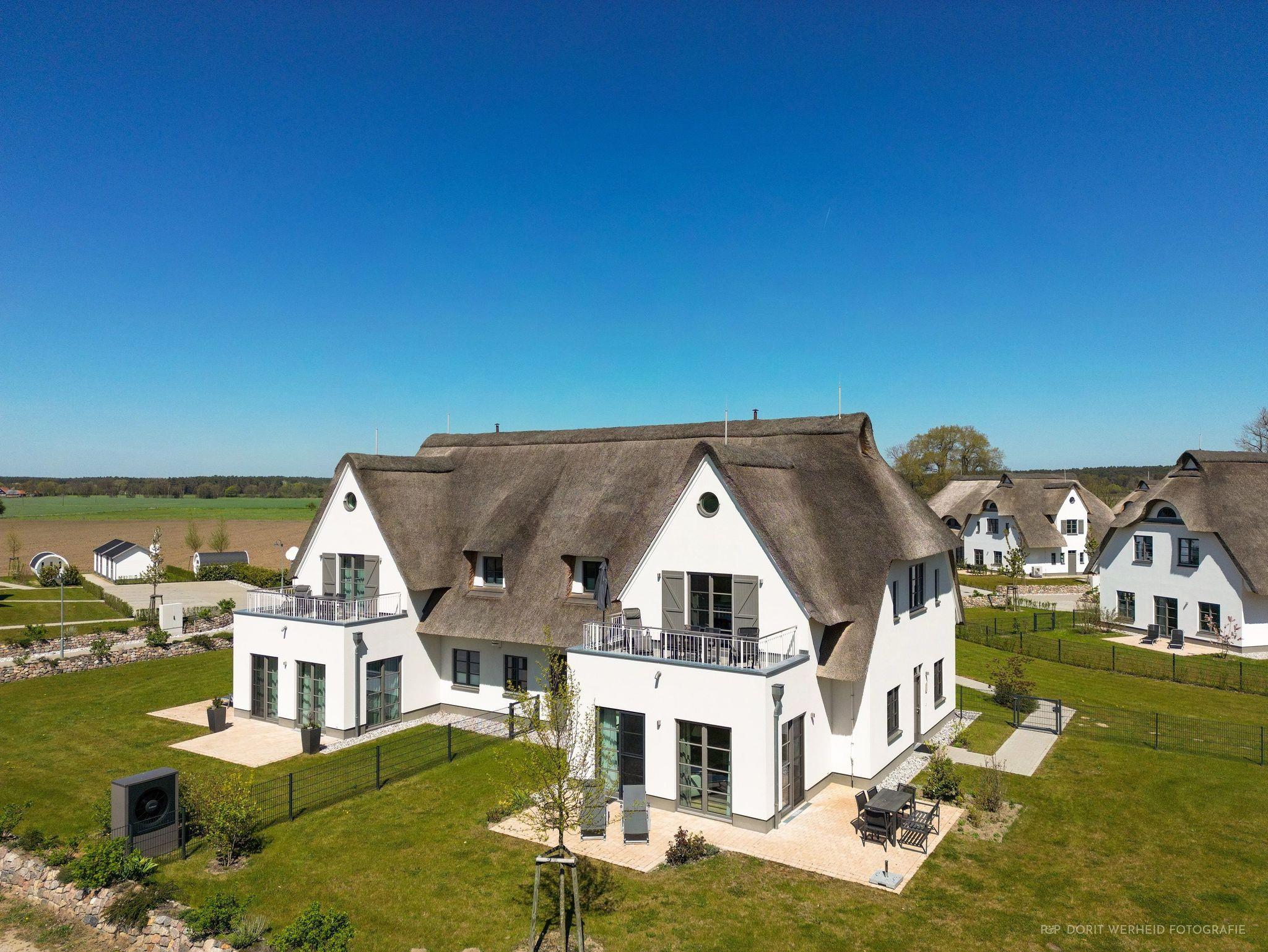 Modernes Apartment mit Reetdach, Terrasse und eingezäuntem Garten auf Usedom.
