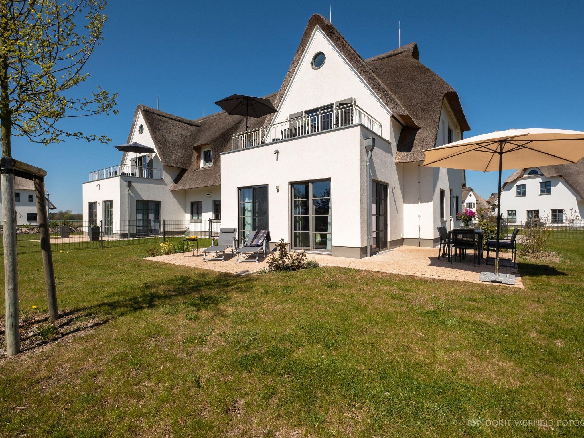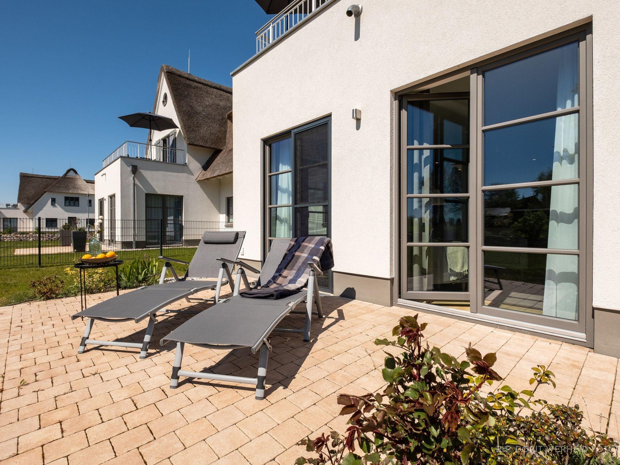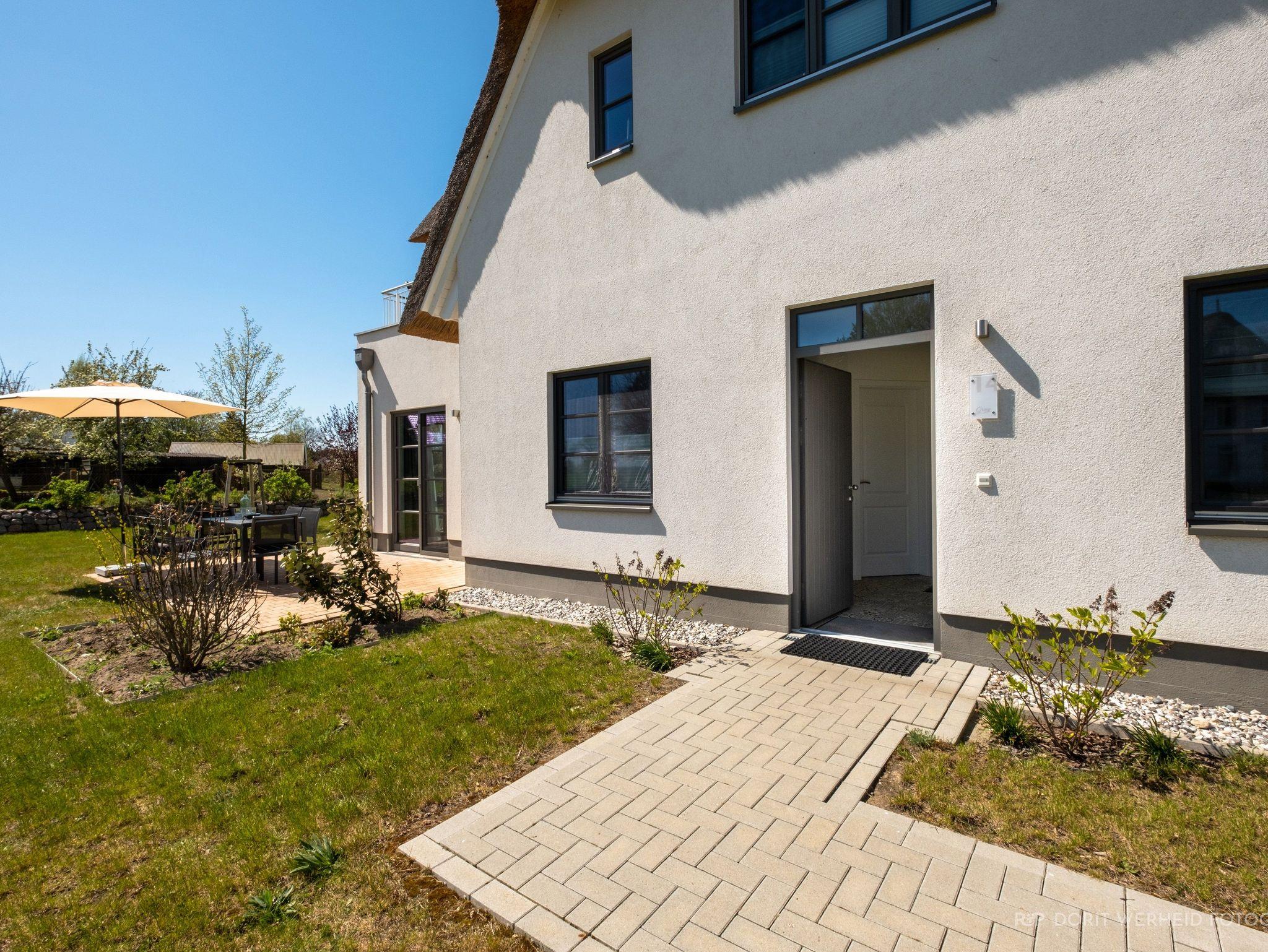 Modernes Apartment mit Reetdach, Terrasse und eingezäuntem Garten auf Usedom.