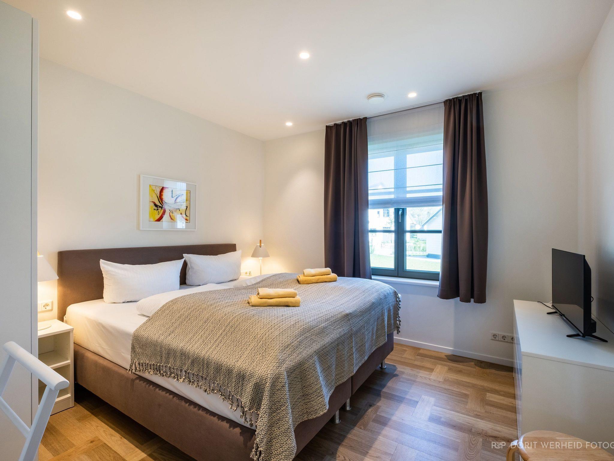 Beide Schlafzimmer verfügen über ein Doppelbett. Bei allen Betten handelt es sich um Boxspringbetten. Im Wohnzimmer, sowie in einem Schlafzimmer befinden sich jeweils ein Flachbildschirm-Fernseher. Das Grundstück ist komplett umzäunt.
