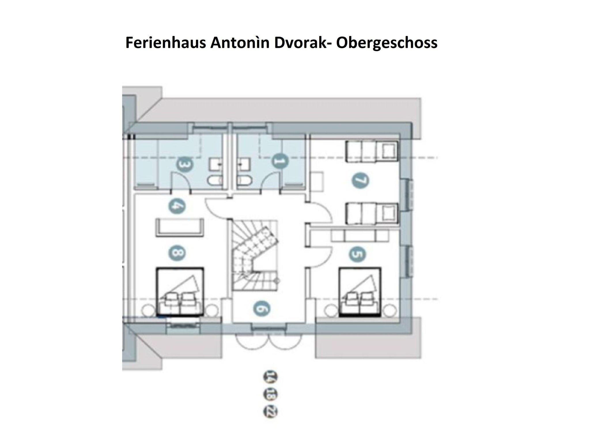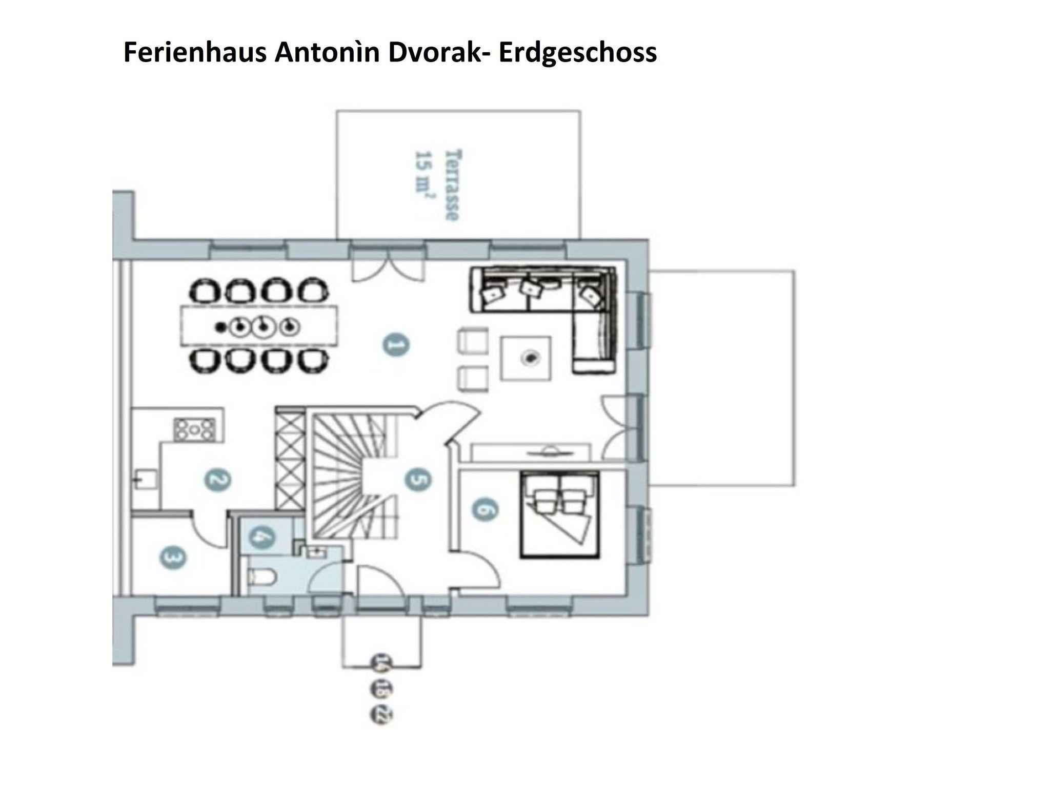Willkommen im Ferienhaus Antonìn Dvorák! Das 163 m² große Ferienhaus auf 3 Etagen ist für max. 8 Erwachsene und 1 Kind (bis 2 Jahre) geeignet und stilvoll-modern ausgestattet. Es verfügt über eine Wohnküche mit angrenzenden Terrassen, 4 Schlafzimmer, 3 Badezimmer und eine Fasssauna im Garten.