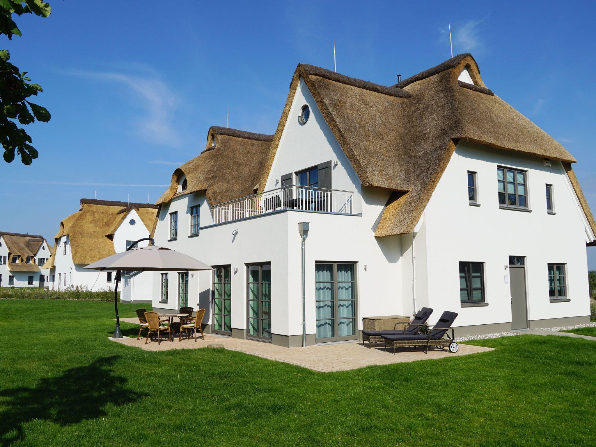 Modernes Apartment unter Reet mit Terrasse und Panoramablick auf Usedom.
