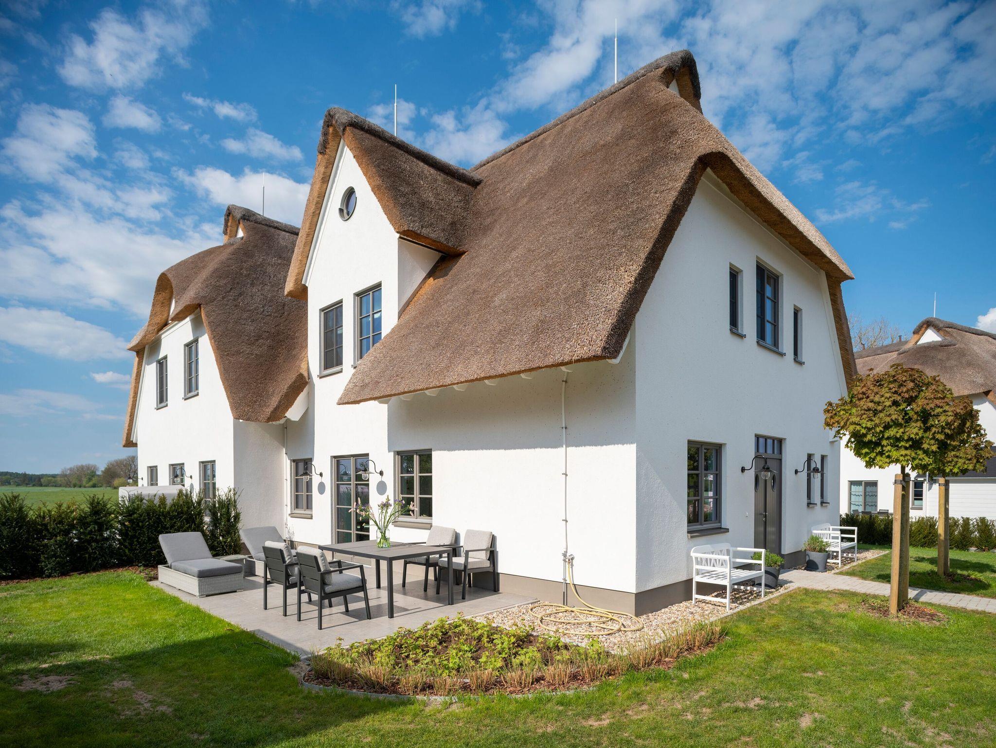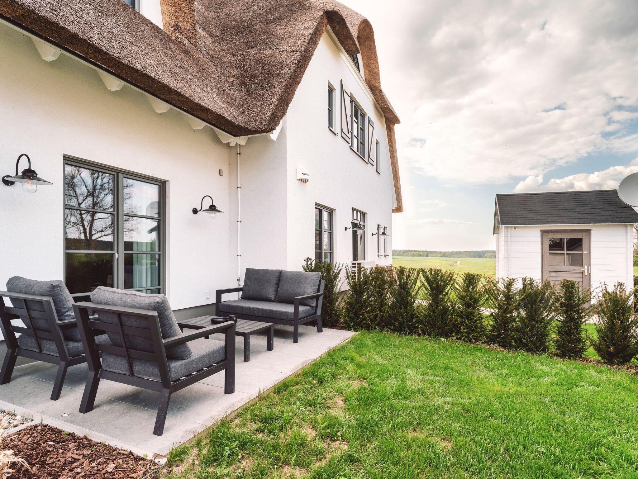 Exklusives Reetdachhaus im Friesenstil nahe Haff und Badebucht mit Sauna, Kamin und großem Garten.