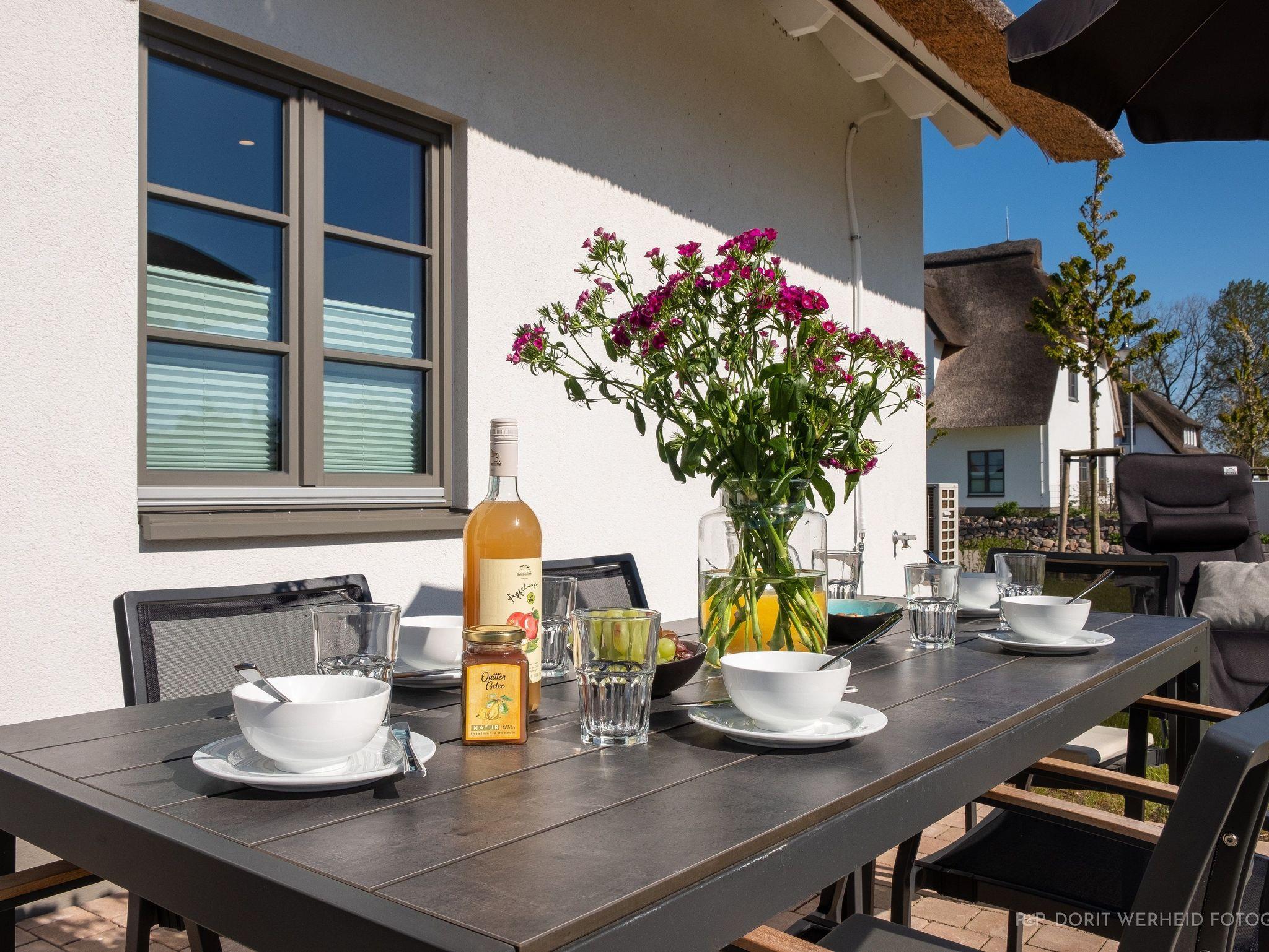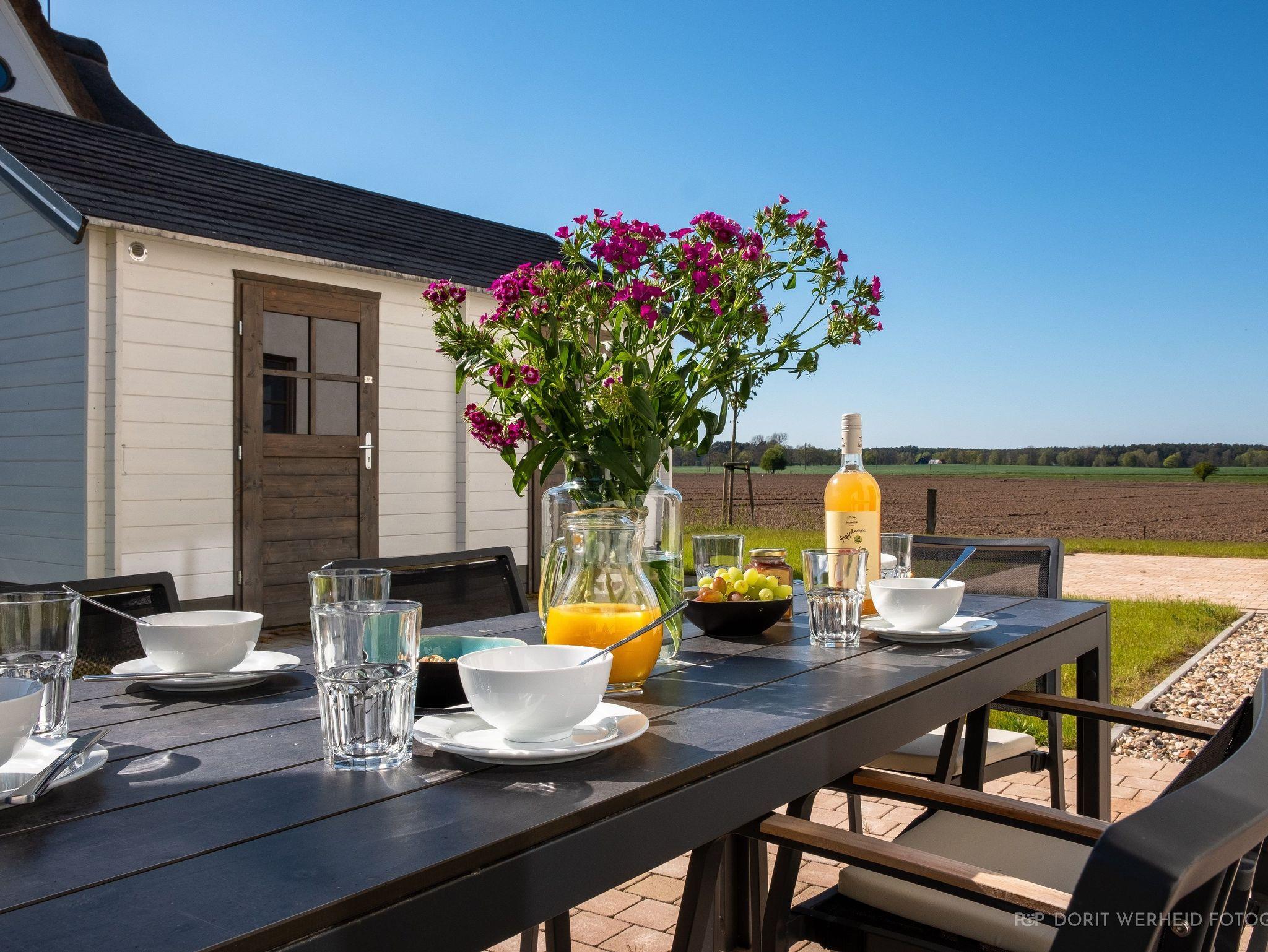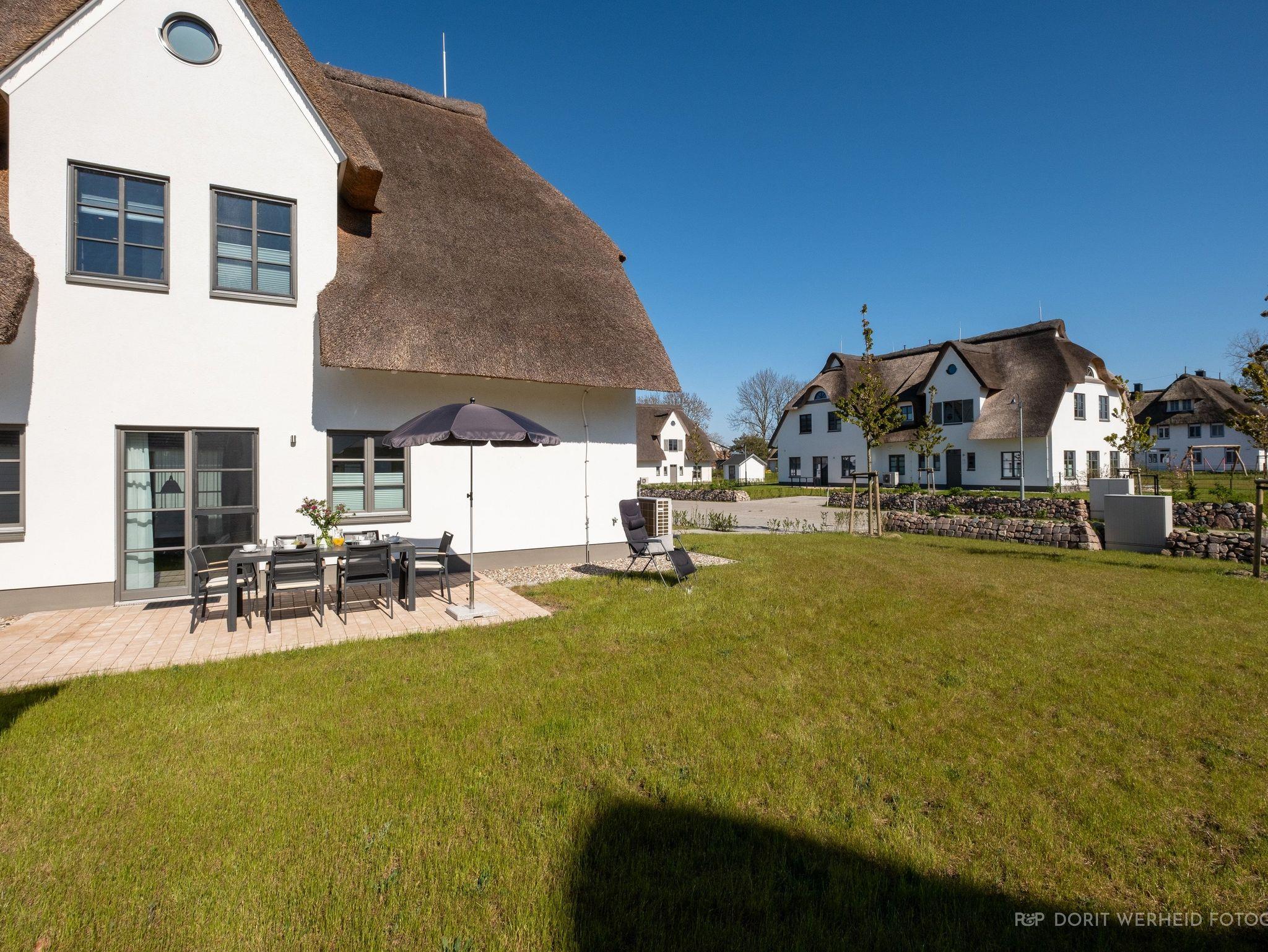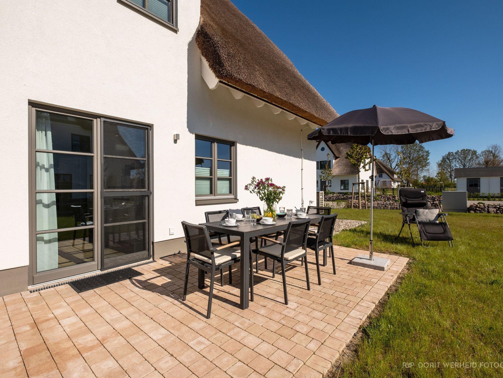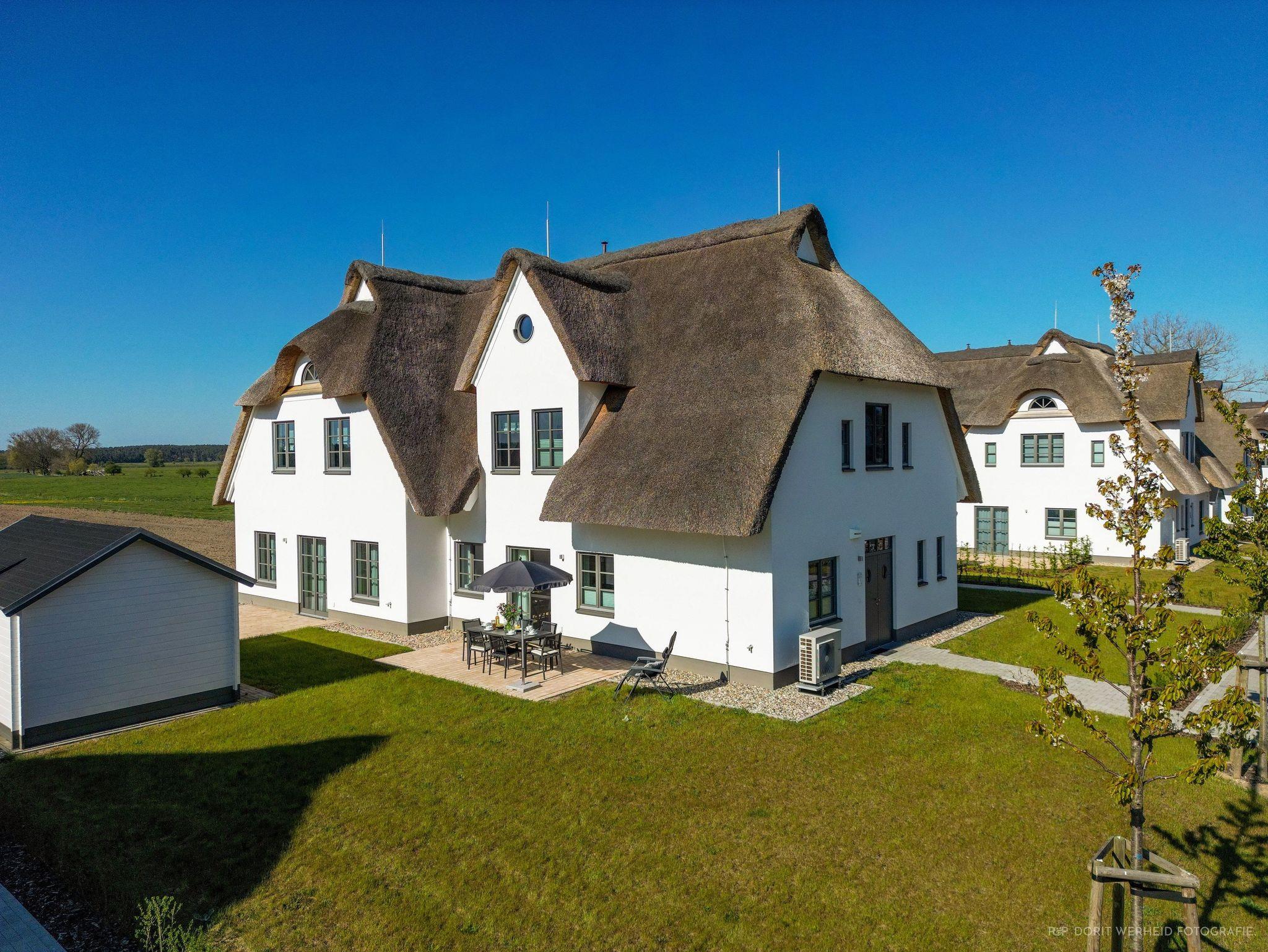 Die Reet gedeckten Häuser wurden in nachhaltiger Holzbauweise errichtet und die Einrichtung ist durch helle sowie freundliche Farben geprägt. Der Blick auf die Haffküste und die umliegende Natur machen Ihren Urlaub einzigartig.