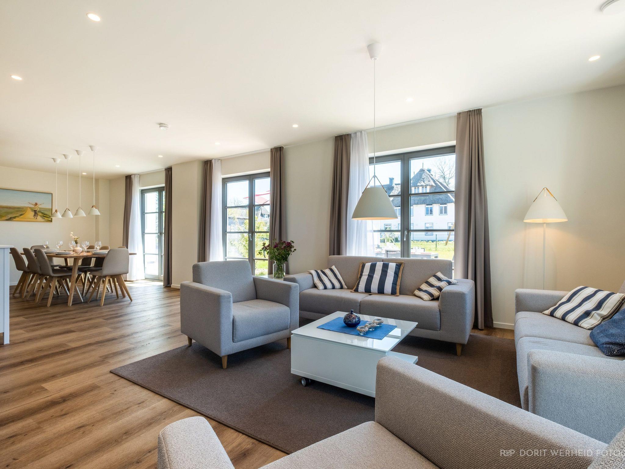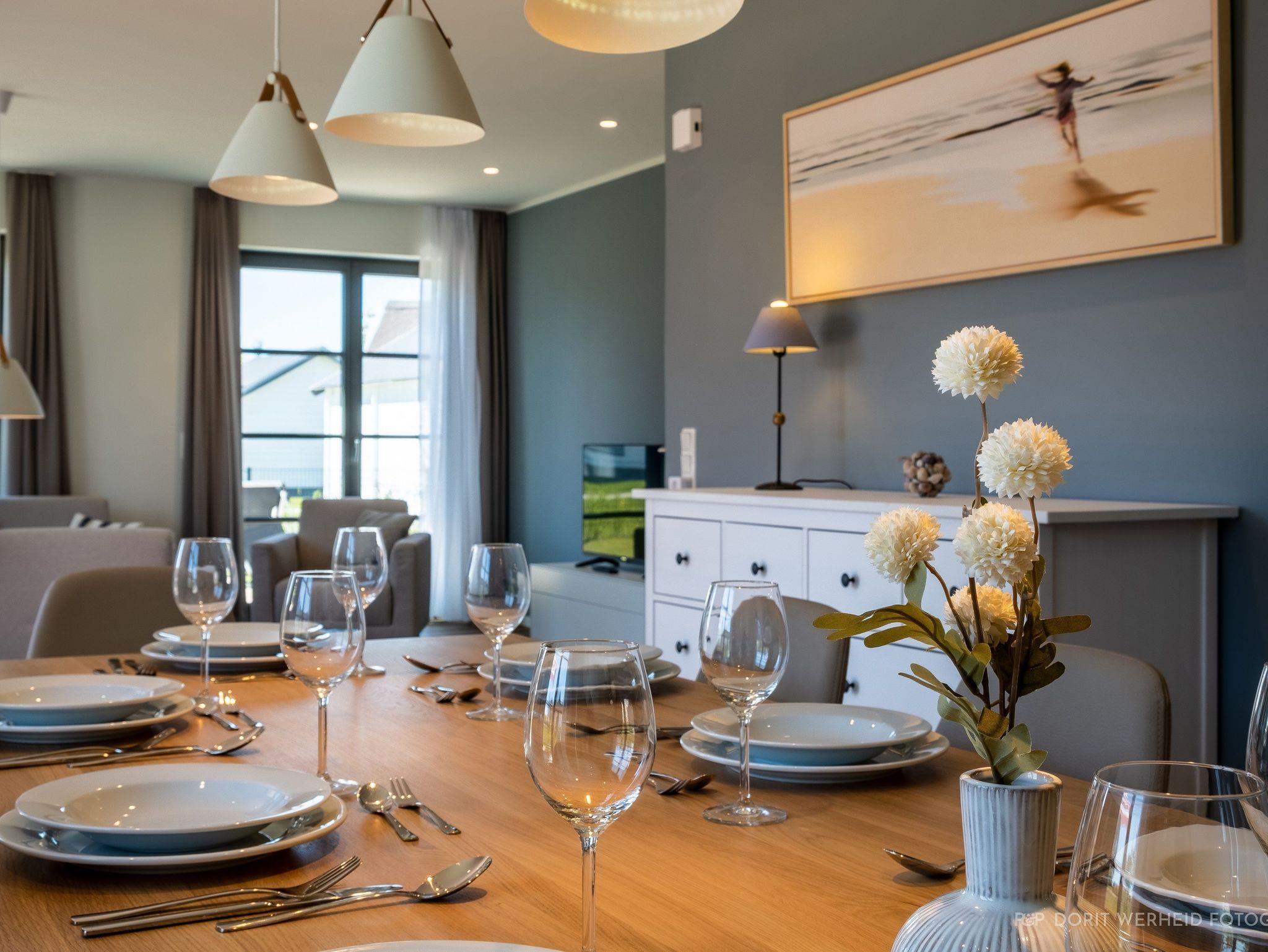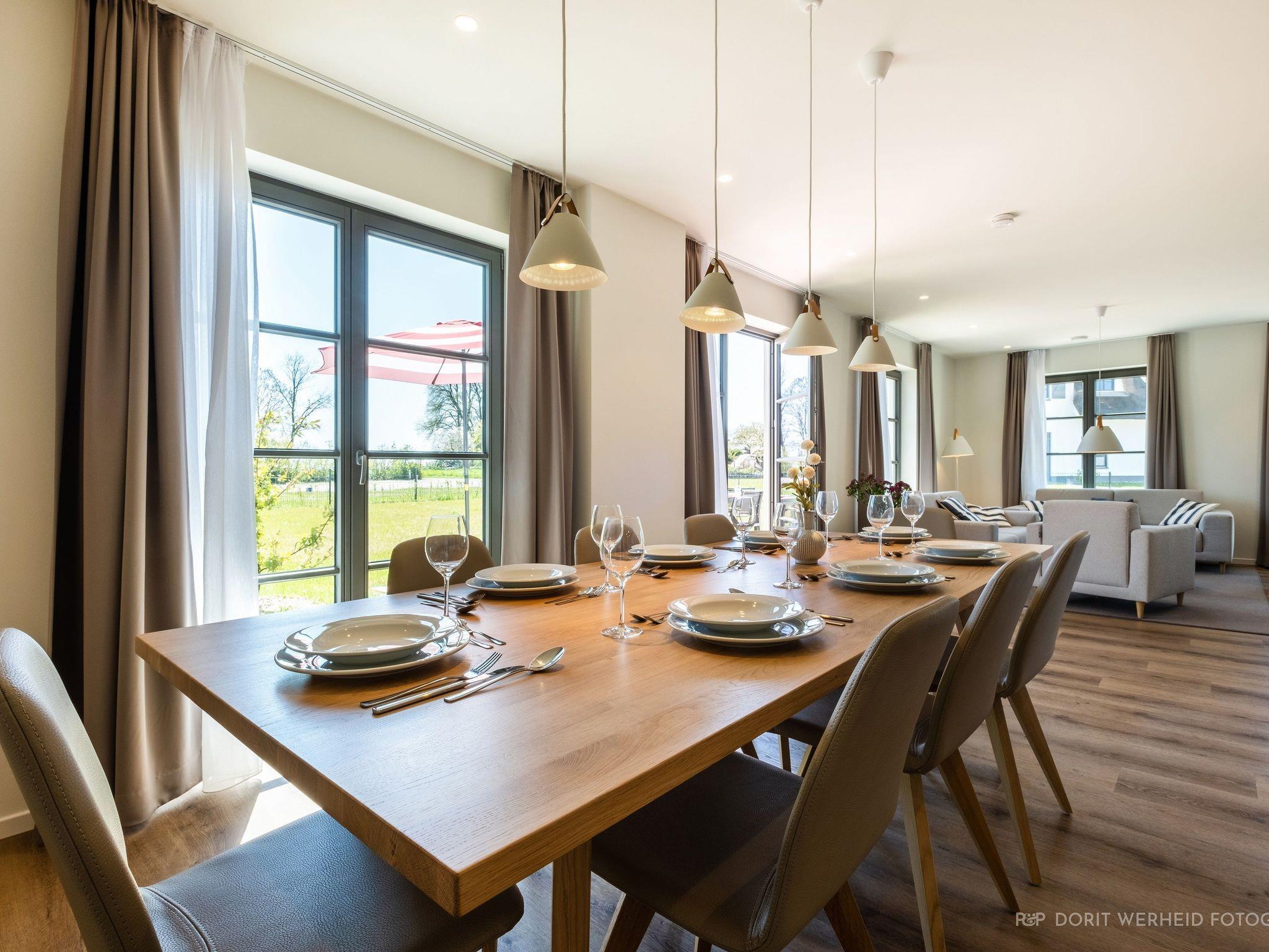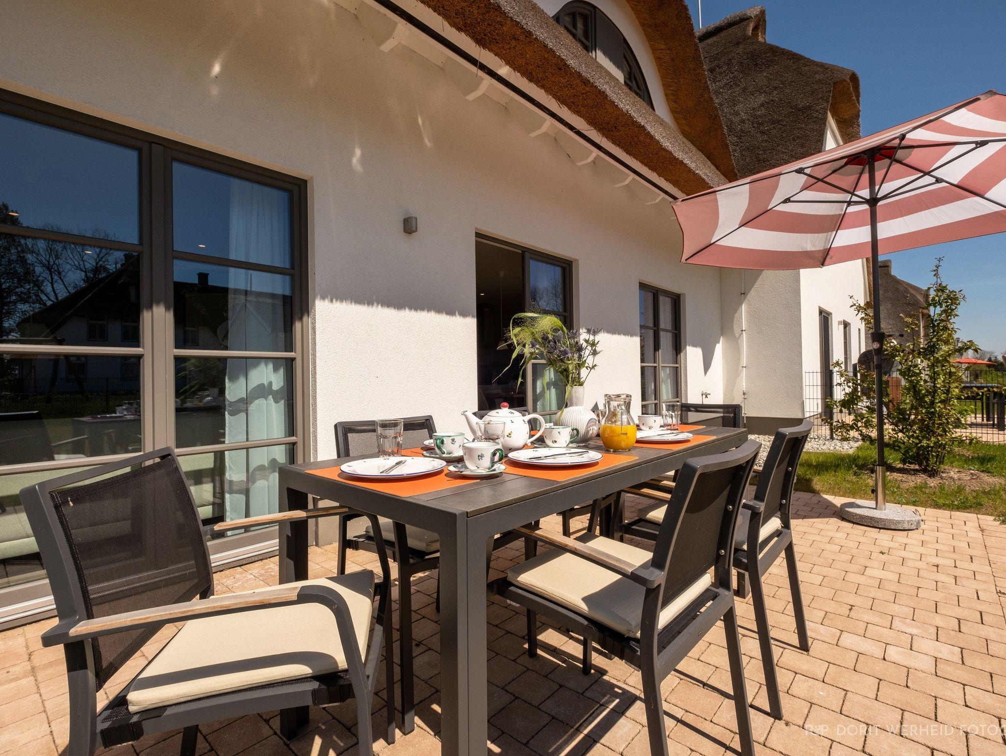 Die Reet gedeckten Häuser wurden in nachhaltiger Holzbauweise errichtet und die Einrichtung ist durch helle sowie freundliche Farben geprägt. Der Blick auf die Haffküste und die umliegende Natur machen Ihren Urlaub einzigartig.