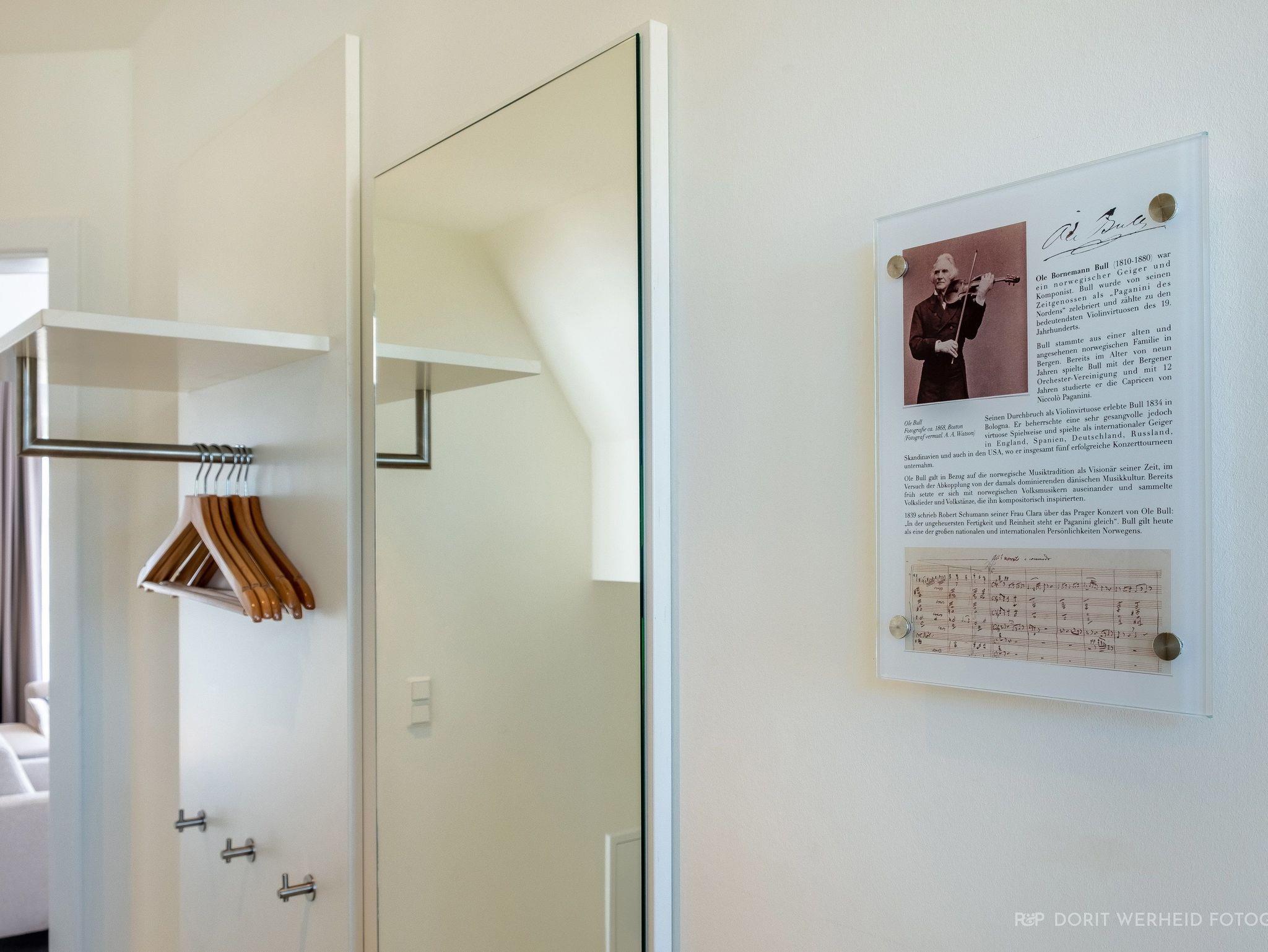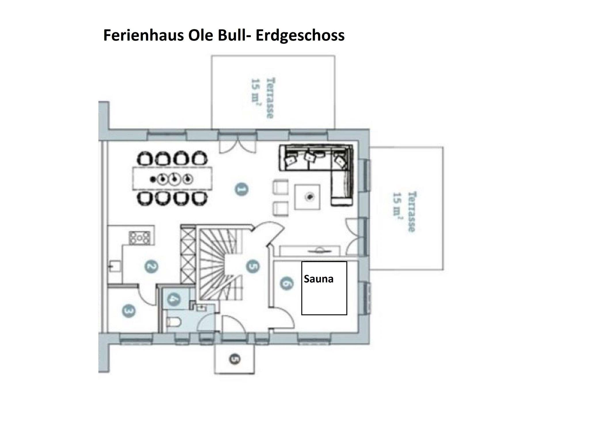 Willkommen im Ferienhaus Ole Bull! Das 165 m² große voll eingezäunte Ferienhaus auf 2 Etagen ist für max. 6 Erwachsene geeignet und stilvoll-modern ausgestattet. Es verfügt über eine Wohnküche mit angrenzenden Terrassen, 3 Schlafzimmer, 3 Badezimmer und einer finnischen Sauna mit Ruhe- Raum.