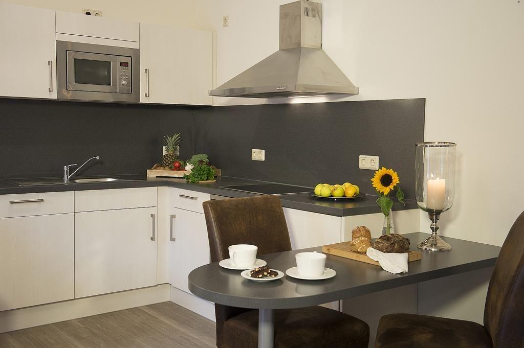 Es hat einen Wohn-Essbereich mit Schlafcouch und komplett ausgestatteter Küchenzeile ( inkl. Geschirrspüler ), ein separates Schlafzimmer mit Komfortbett und ein Badezimmer mit Badewanne, Dusche und WC. Im Appartement gibt es ein Gäste-WC und einen Abstellraum.