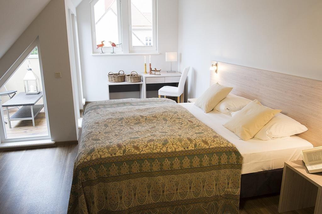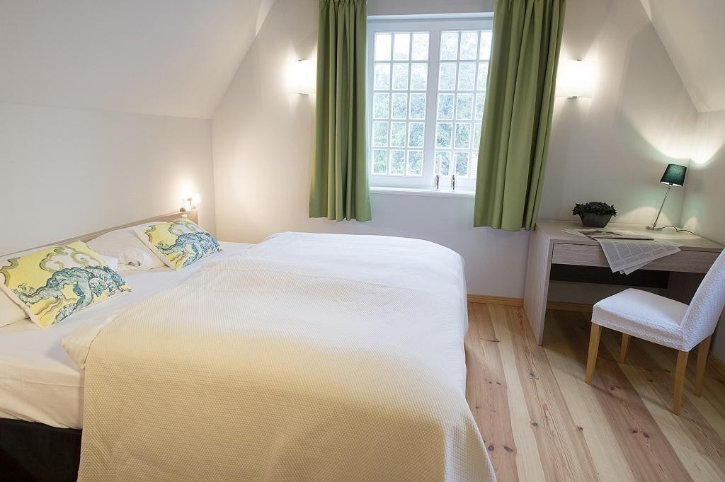 Appartement Nr. 45 Vogt Bernhard I im historischen Westflügel von Schloss Stolpe, Südseite zum Haff, mit zwei Loggien zu Haff und Schloss, im 2. OG (Dachgeschoss) gelegen.
