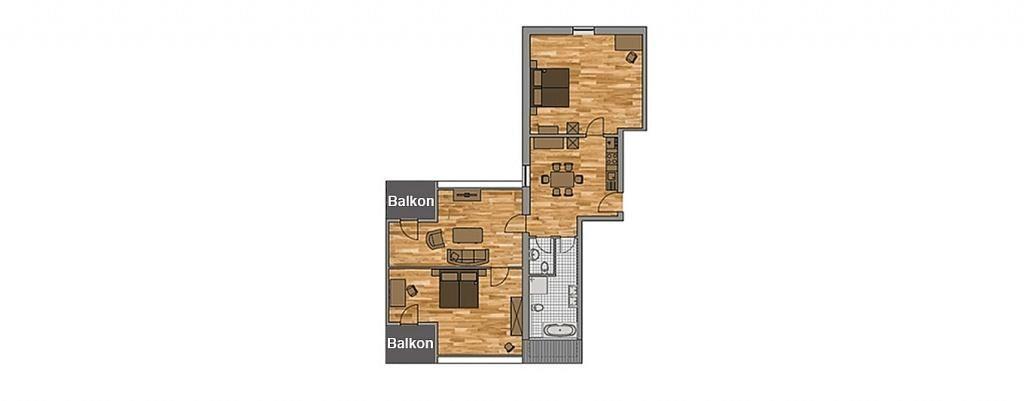 Das Appartement bietet Platz für 2-5 Personen und ist mit einem Aufzug erreichbar.