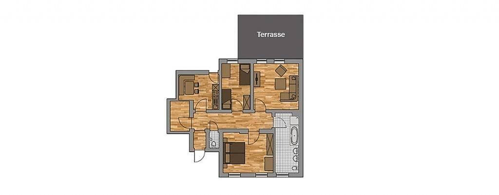 Das Appartement mit Süd-Westterrasse, liegt im Erdgeschoss und bietet mit seinen zwei Schlafzimmern mit 2 Komfortdoppelbetten und einer Schlafcouch im Wohnbereich Platz für 1-6 Personen.
