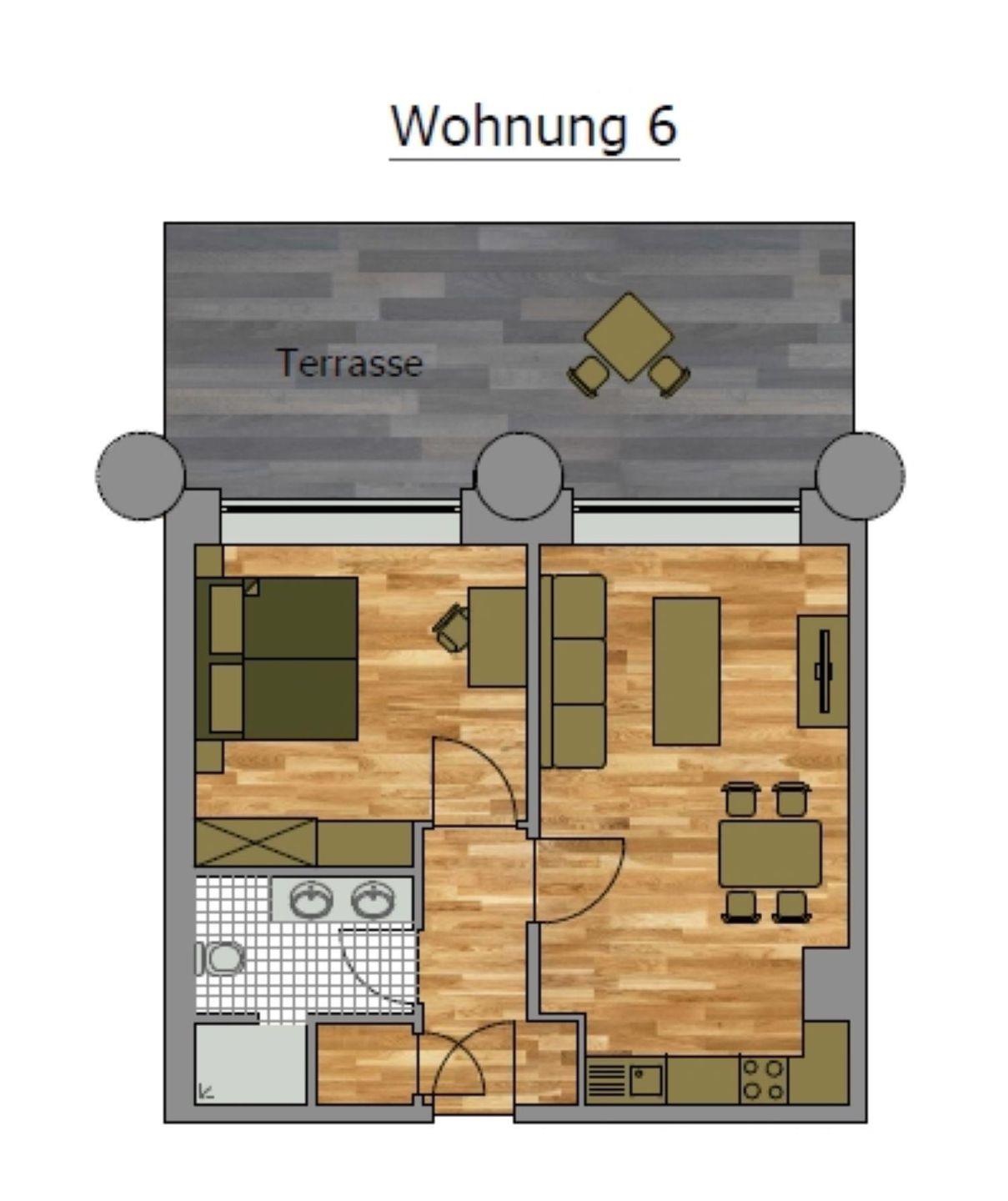 2 Zimmerappartement, für bis zu 4 Personen, 1 Schlafzimmer mit Doppelbett, 1 Schlafcouch im Wohnbereich, Bad mit Dusche, offene Küchenzeile mit Geschirrspüler, Westterrasse, Fernseher, WLAN, Parkplatz