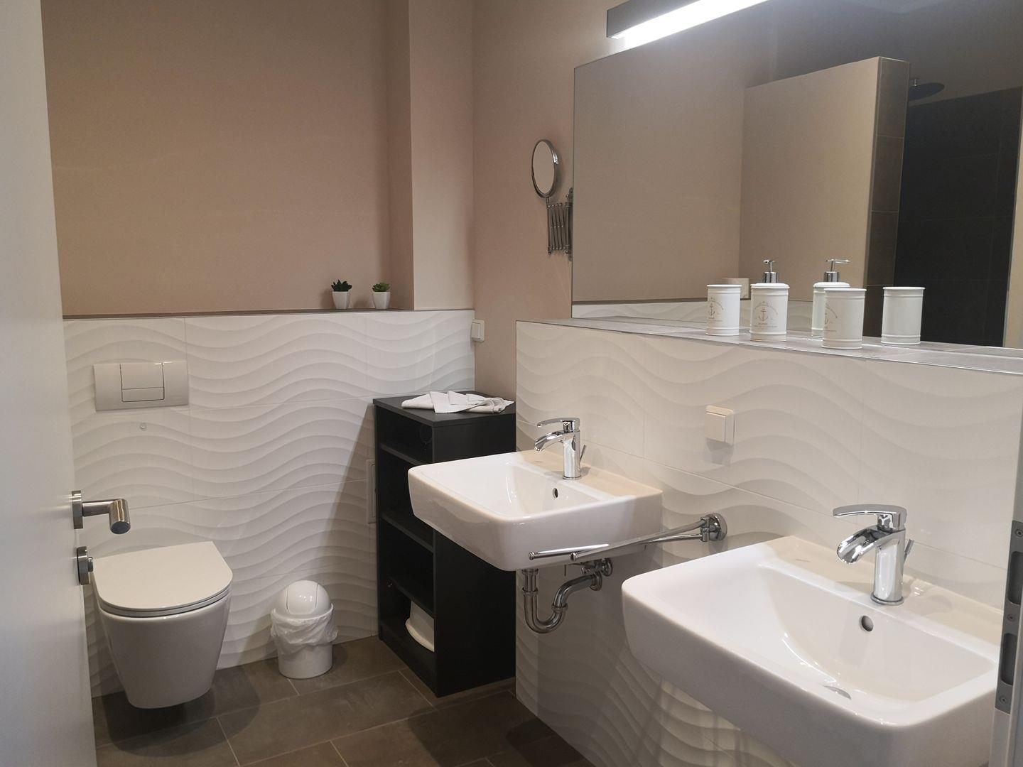 Das Duschbad mit WC ist ausreichend groß, Sie finden hier einen Fön und einen Kosmetikspiegel.