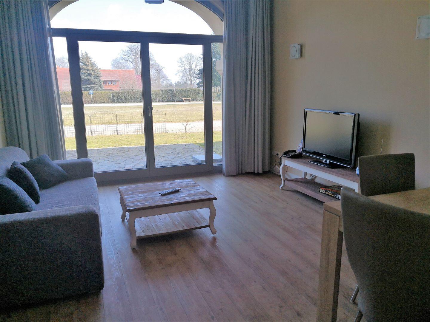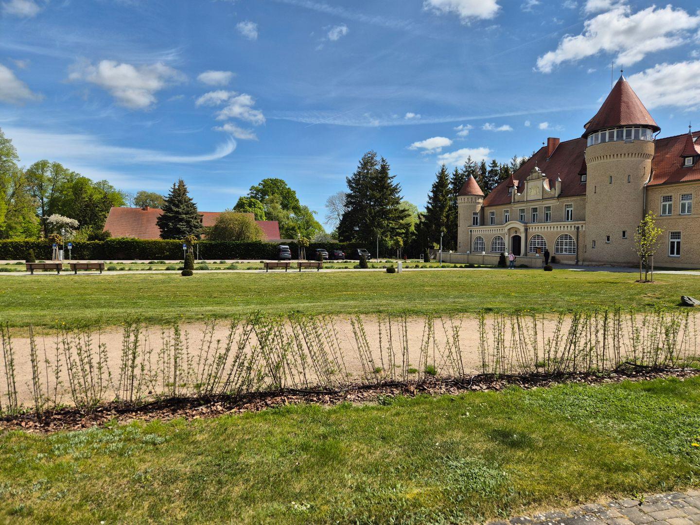 Das Appartement "Oleander" in der ehemaligen Remise von Schloss Stolpe liegt ebenerdig und hat ein nach Westen zum Schloss ausgerichtete Terrasse.
