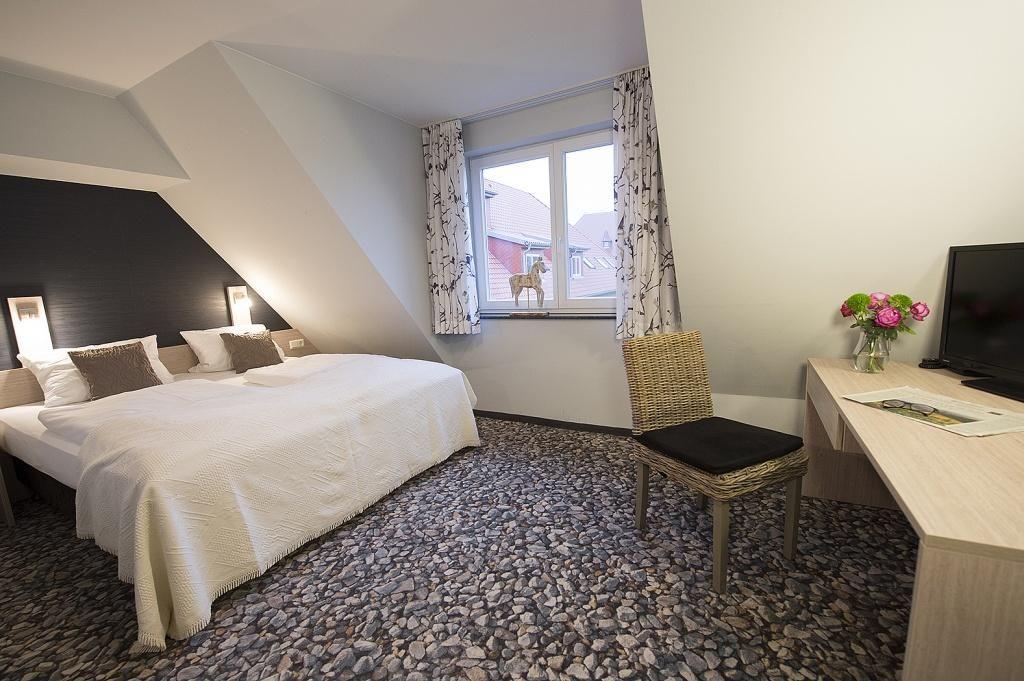 Superior Hotelzimmer Nr. 15 "Rembrandt" in der historischen Remise von Schloss Stolpe bietet Platz für 2 Personen und 1 Kind bis zu 3 Jahren im Beistellbett.