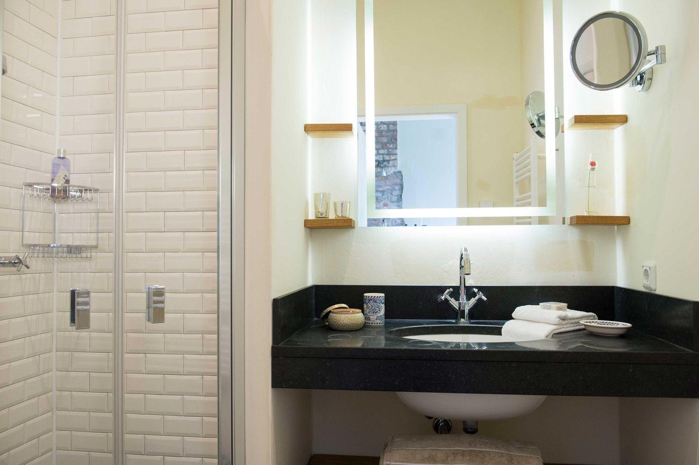 Das Appartement Nr. 3 "Lexington" liegt ebenerdig mit einer Südterrasse um Innenhof in der ehemaligen 2013 renovierten Remise von Schloss Stolpe. Es ist gut für 1-2 Personen geeignet.