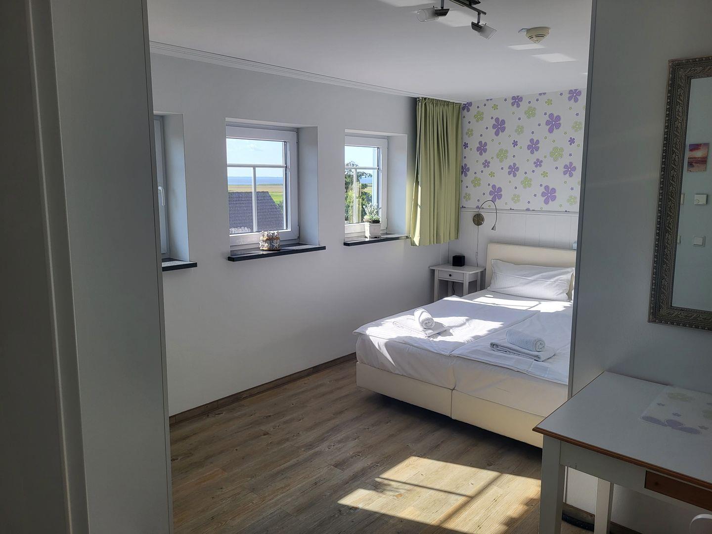 2 Schlafzimmer bieten Platz für 4 Personen, das obere Schlafzimmer hat zusätzlich einen eigenen Zugang zur 3. Etage. Boxspringbetten Gr.160 x 200cm, Verdunklung und Insektenschutz vor den Fenstern sorgen für einen erholsamen Schlaf. Zusätzlich sind die Schlafzimmer mit einem Schreibtisch, Fernseher und DVD Player ausgestattet.