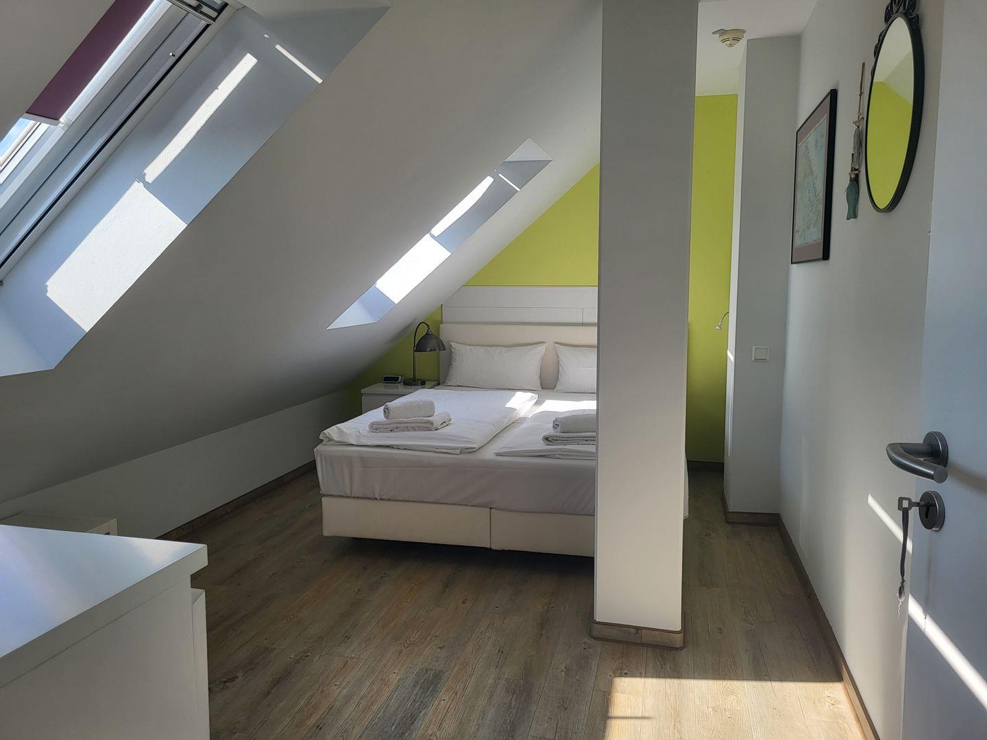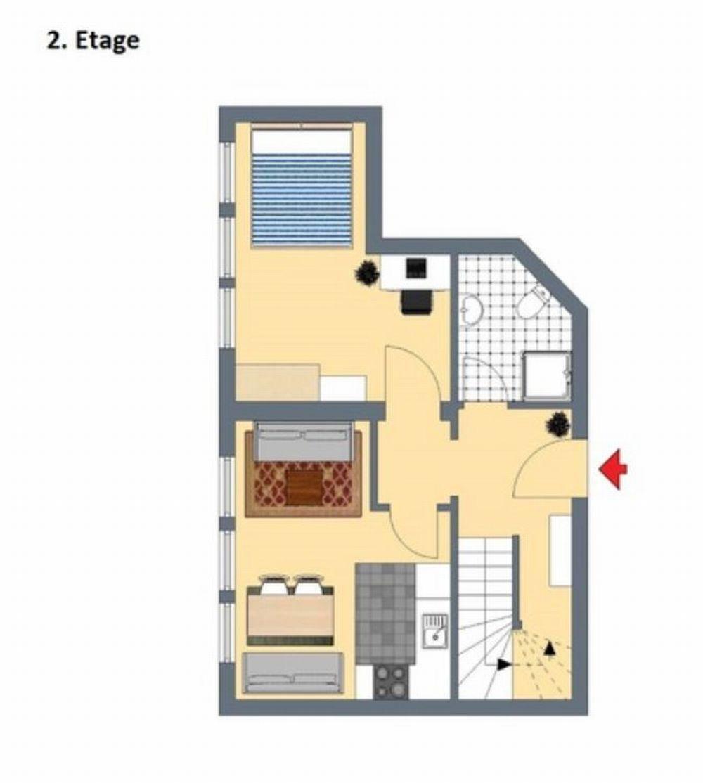 3 Zimmerappartement über 2 Etagen, 53m² für 4 Personen, 2 Schlafzimmer mit Doppelbetten, Duschbad, offene Küchenzeile mit Spülmaschine, Fernseher, WLAN, Parkplatz, kein Balkon/ Terrasse, Allergiker geeignet