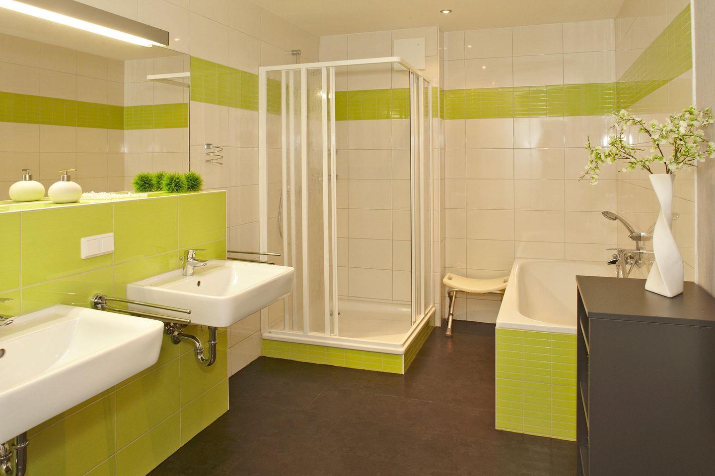 Die Wohnung verfügt über ein großzügiges Bad , ausgestattet mit Doppelwaschtisch, Dusche und Badewanne. Eine separate zweite Toilette ist vorhanden.