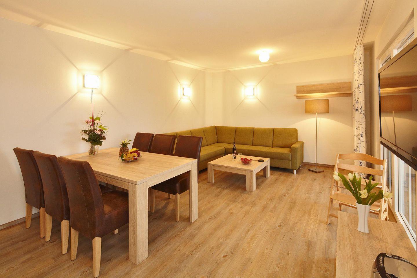 3 Zimmerappartement, 101m² für 6 Personen, 2 Schlafzimmer mit je 1 Doppelbett und 1 Einzelbett, Bad mit Dusche und Wanne, Gäste- WC, offene Küche mit Spülmaschine,