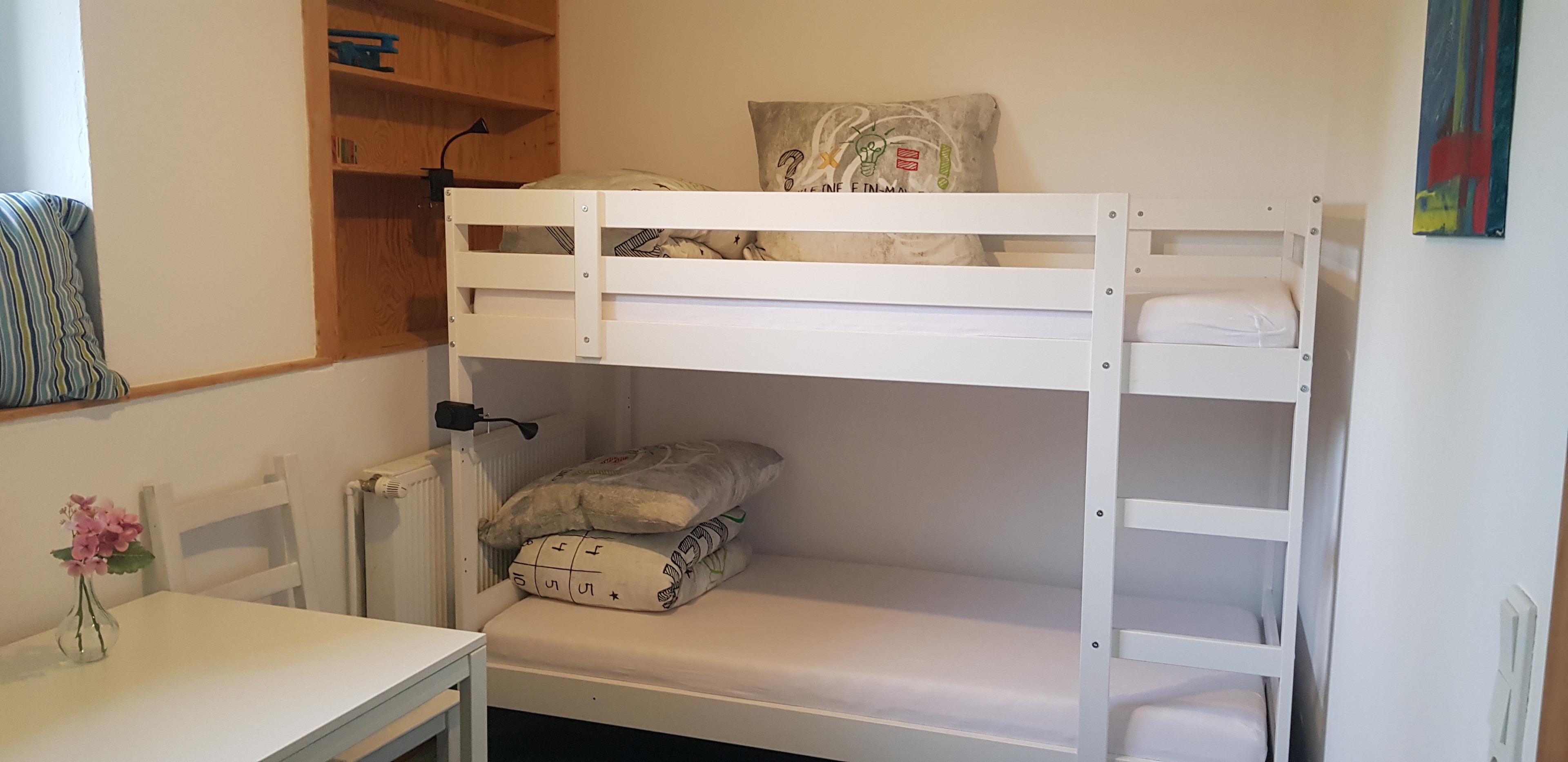 Im oberen Geschoss befinden sich die Schlafräume. Zwei Räume mit jeweils einem KingSize Bett. Ein Zimmer ist mit einem begehbaren Kleiderschrank ausgestattet. Das dritte Schlafzimmer befindet sich im gegenüberliegenden Teil der Wohnung und ist mit einem Etagenbett, einem Tisch mit 2 Stühlen und einem gemütlichen Sofa ausgestattet. Zwischen den Schlafzimmern ists unsere Galerie, die ebenfalls mit einem gemütlichen Sofa als ein wunderschöner Rückzugsort genutzt werden kann.