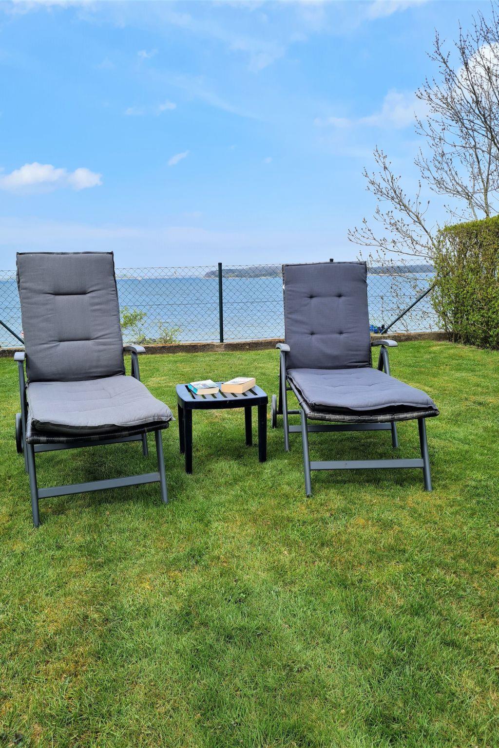 Der Außenbereich lädt zum Verweilen ein und bietet eine sonnige Terrasse, bequeme Gartenmöbel und einen Holzkohlegrill. Die zur Unterkunft gehörenden Stufen führen Sie direkt zum Strand, wo Sie unvergessliche Tage am Meer verbringen können.