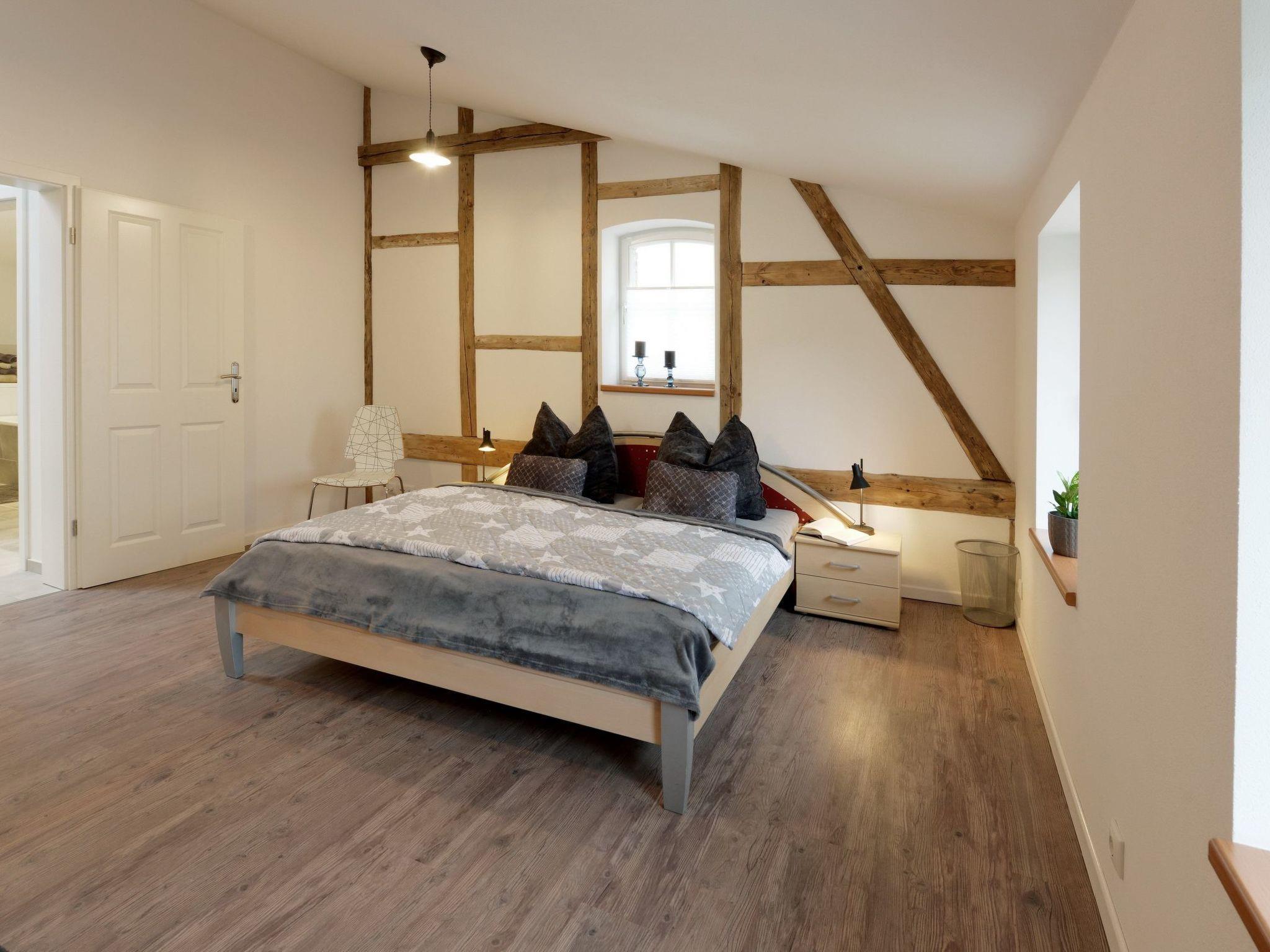 Unsere Wohnung zum Hufschmied befindet sich im Obergeschoss der Alten Schmiede und wurde in den historischen Mauern vollständig neu aufgebaut. Die Ferienwohnung hat ein Schlafzimmer mit Doppelbett und ein Schlafzimmer mit Doppelbett und Schlafcouch (140cm) und eine Schlafcouch (160cm) im Wohnzimmer. Das Wohnzimmer ist modern eingerichtet, verfügt über eine gemütliche Sofaecke, die sich zur Schlafgelegenheit umbauen lässt. Für Unterhaltung sorgt der Flachbildschirm und der Internetanschluss über WLAN. Die Küche ist separat und verfügt über einen Essbereich, sie verbindet alle Räume miteinander. Das Badezimmer ist ausgestattet mit einer ebenerdigen Dusche, einer Badewanne, einem beheizten Handtuchhalter, sowie einem Waschtisch,einem WC und einer Waschmaschine mit Trockner. Parkmöglichkeiten für diese Wohnung sind direkt vor dem Haus auf der öffentlichen Straße. Legen Sie Wert auf einen privaten Parkplatz, buchen Sie bitte unser Ferienhaus im Hof: zum Stallmeister.
