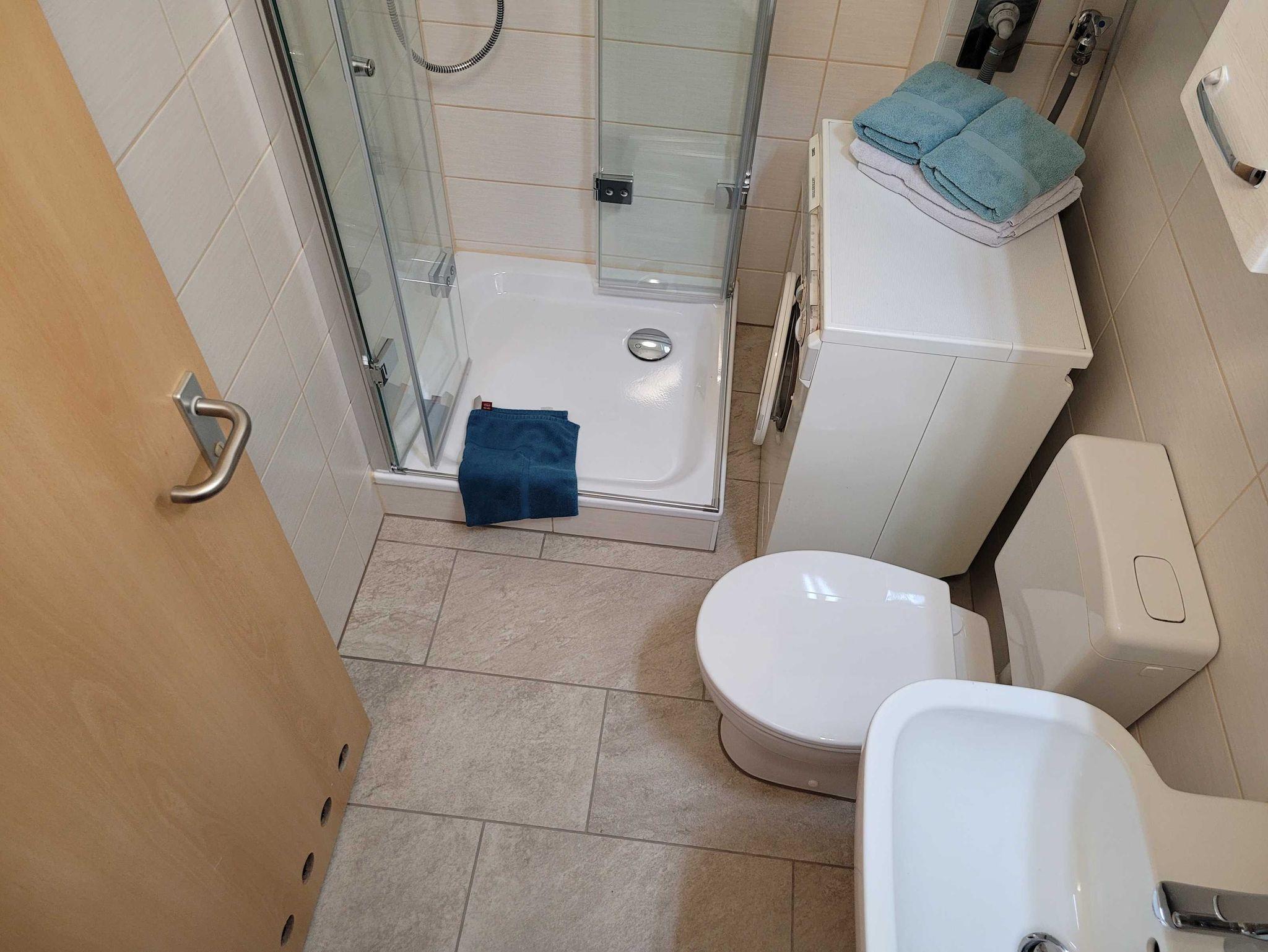 Die Wohnung verfügt über ein Wohnzimmer, Schlafzimmer mit zwei Einzelbetten, Wohnküche, Bad mit Dusche/WC und liegt zur Straßenseite (Kopfsteinpflaster).