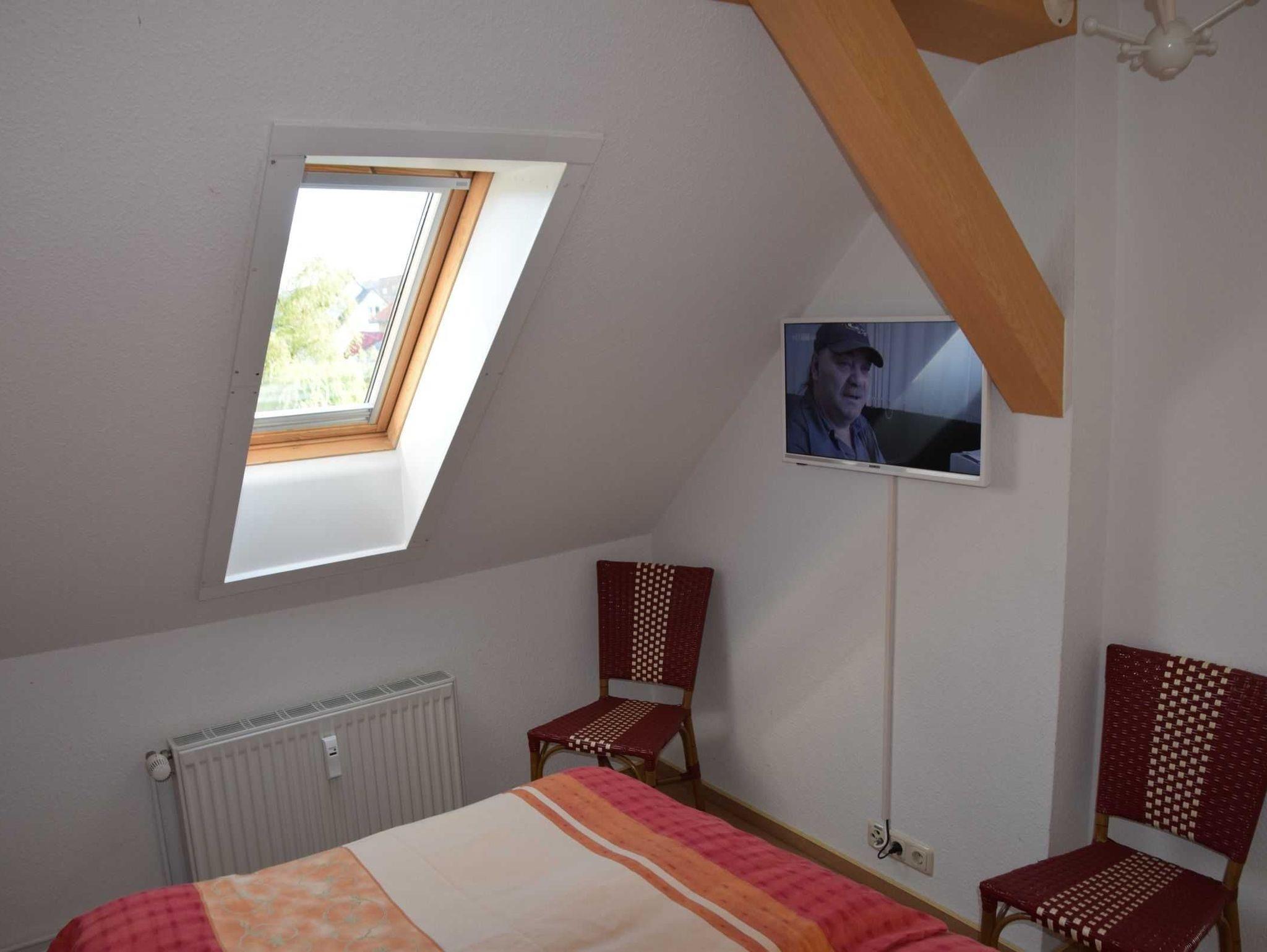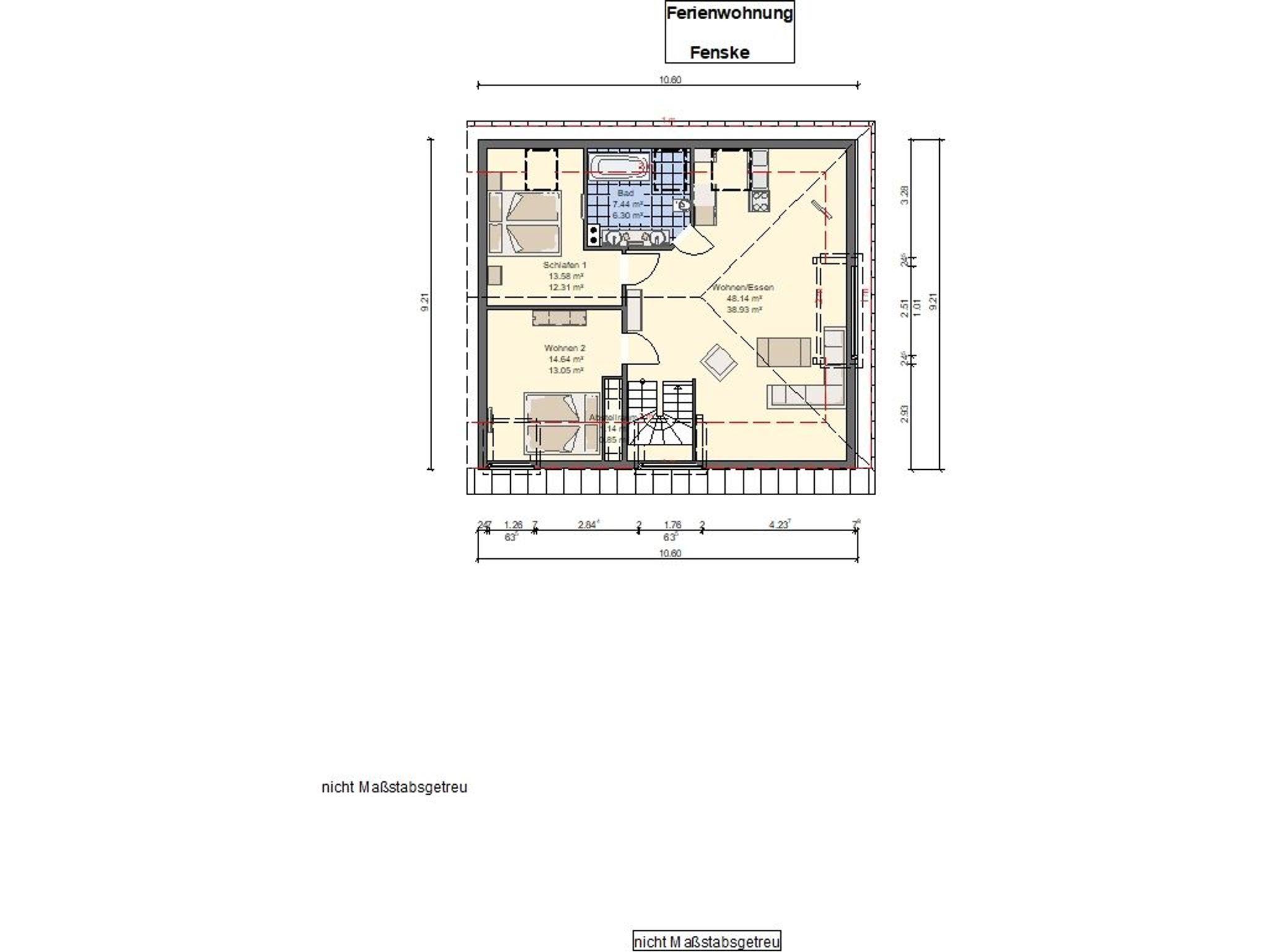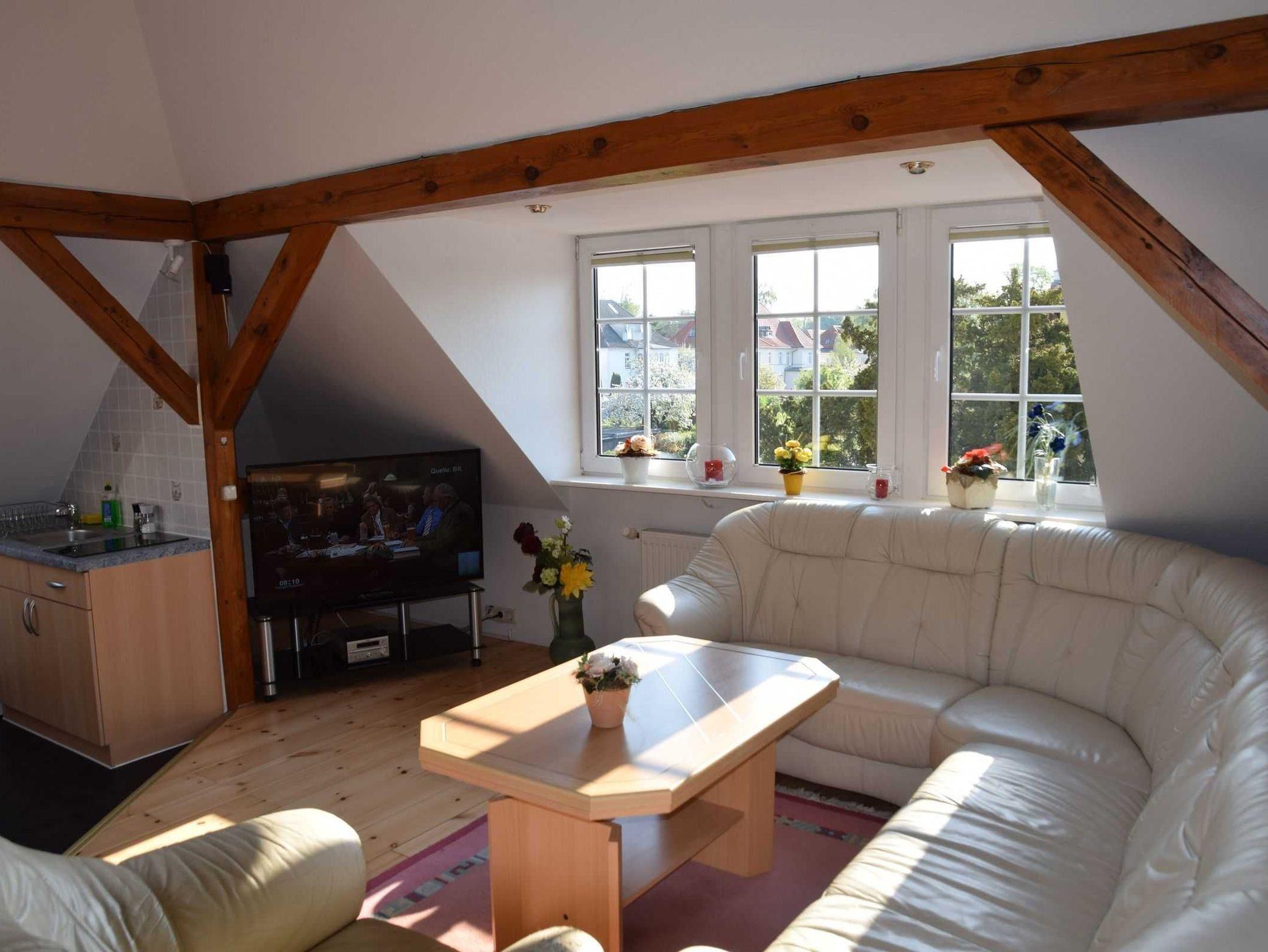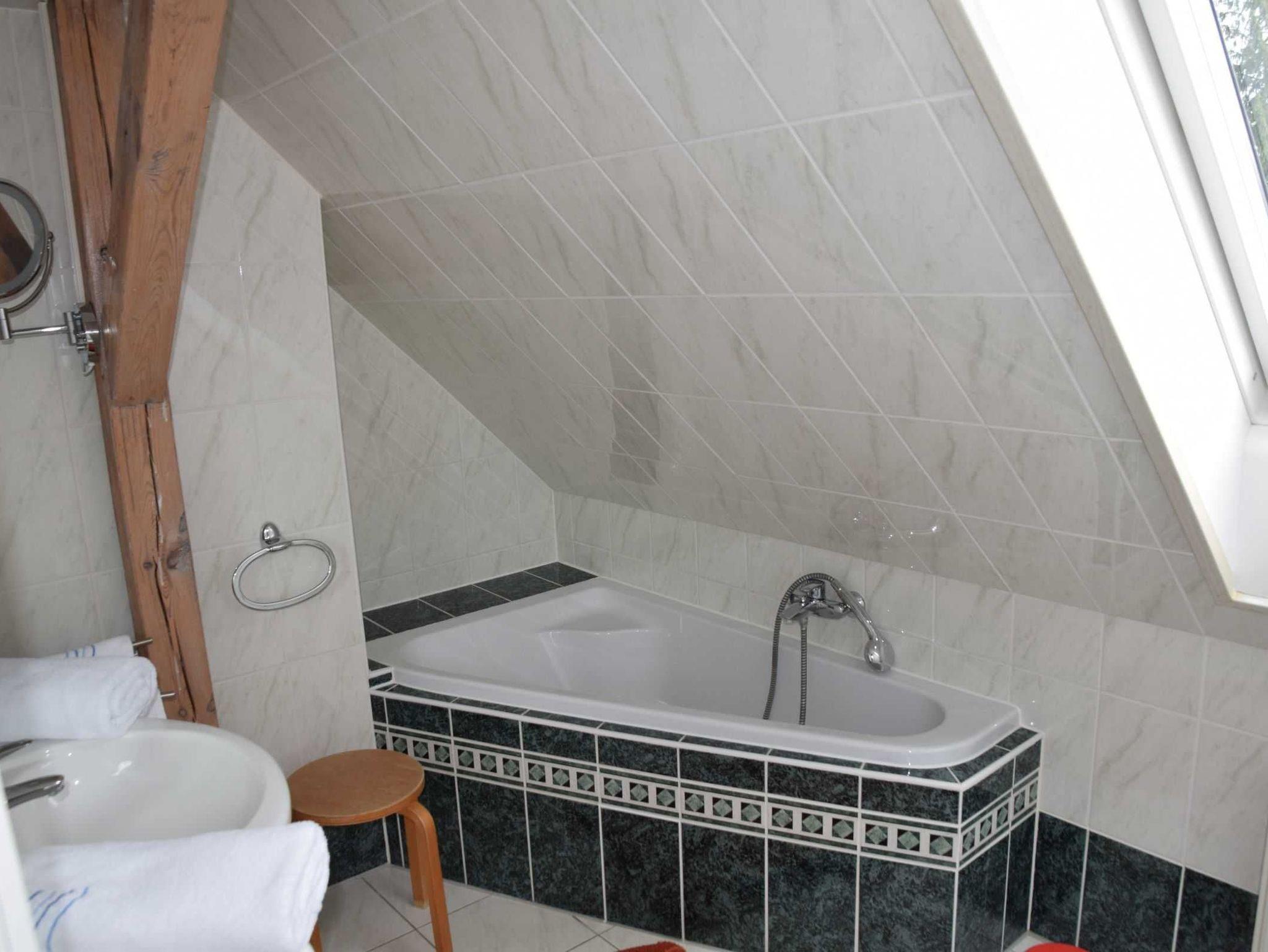 Bitte beachten Sie, dass die Ferienwohnung (aufgrund des Dachgeschosses, der Dachschrägen und der Badewanne) nicht für Menschen mit körperlichen Einschränkungen zu empfehlen ist.