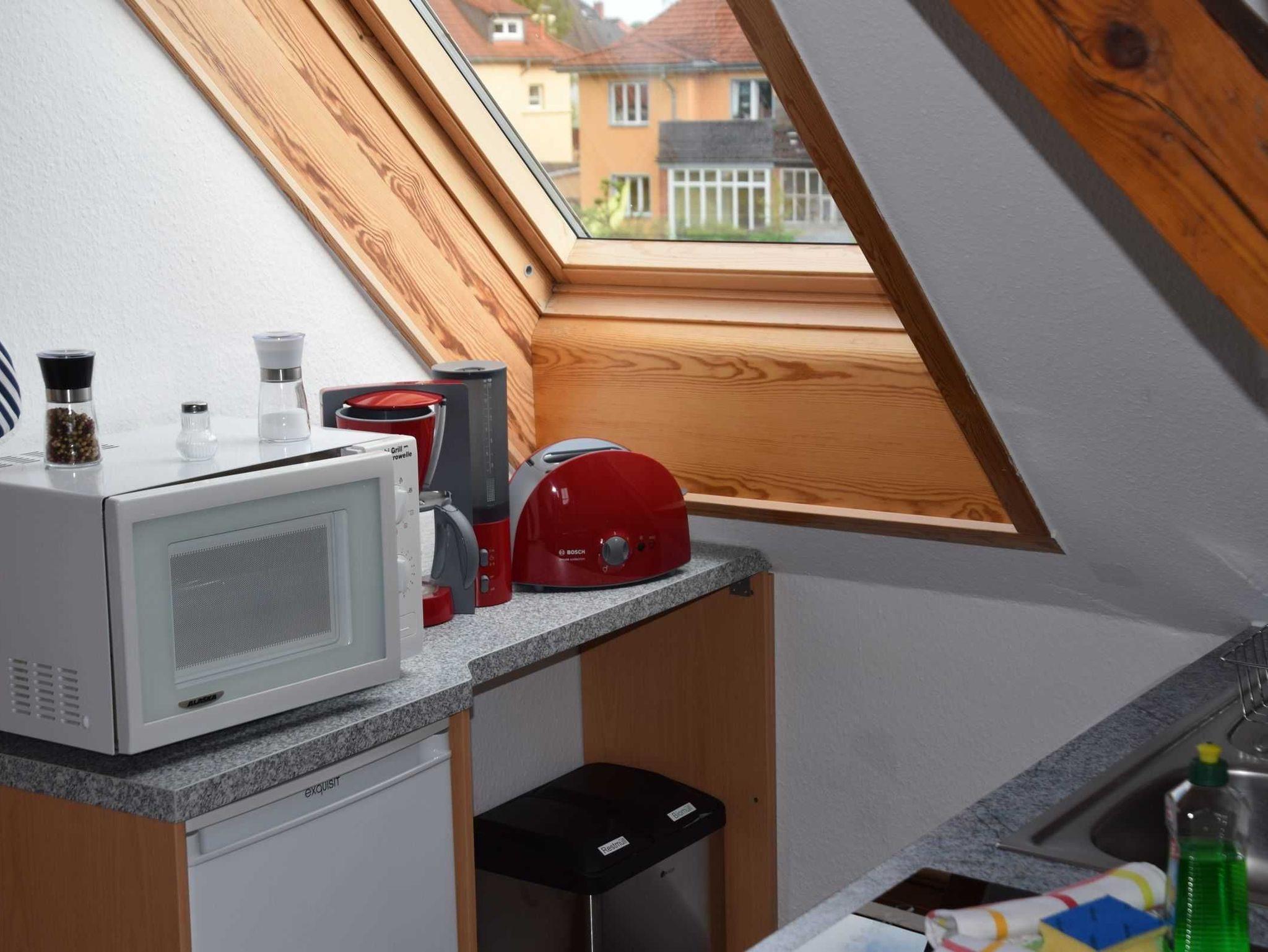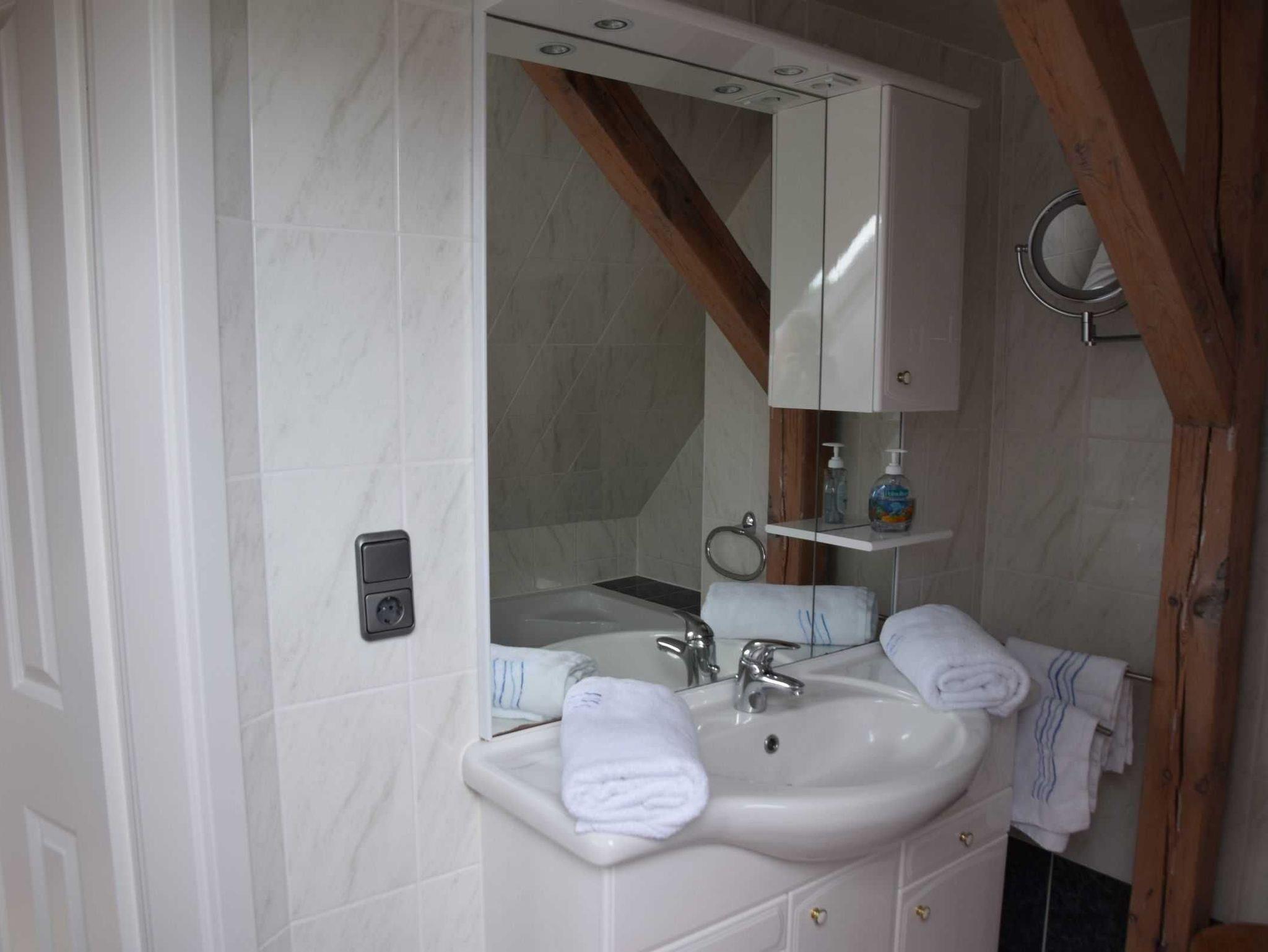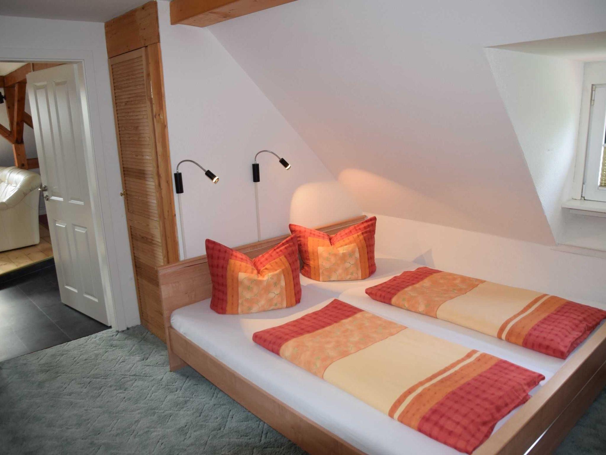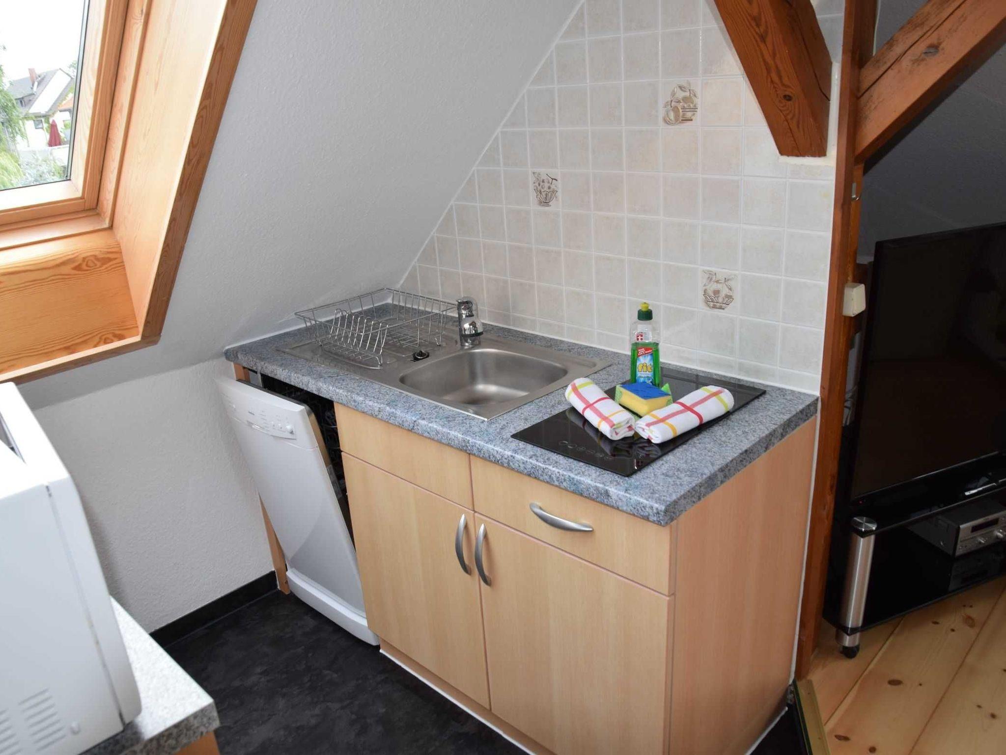 Bitte beachten Sie, dass die Ferienwohnung (aufgrund des Dachgeschosses, der Dachschrägen und der Badewanne) nicht für Menschen mit körperlichen Einschränkungen zu empfehlen ist.