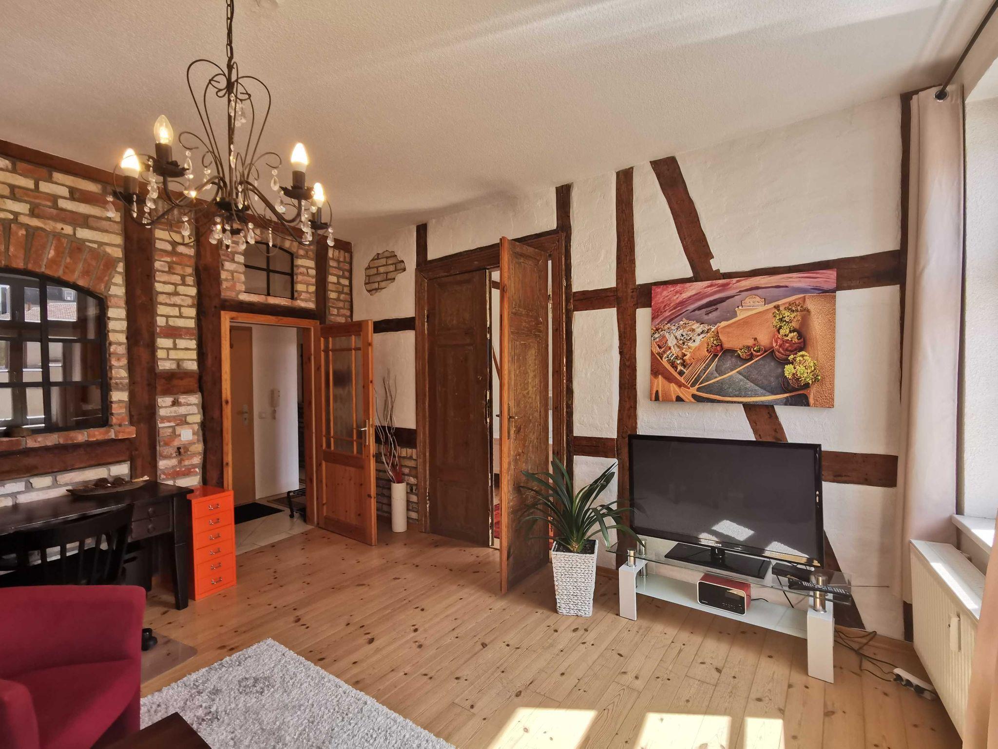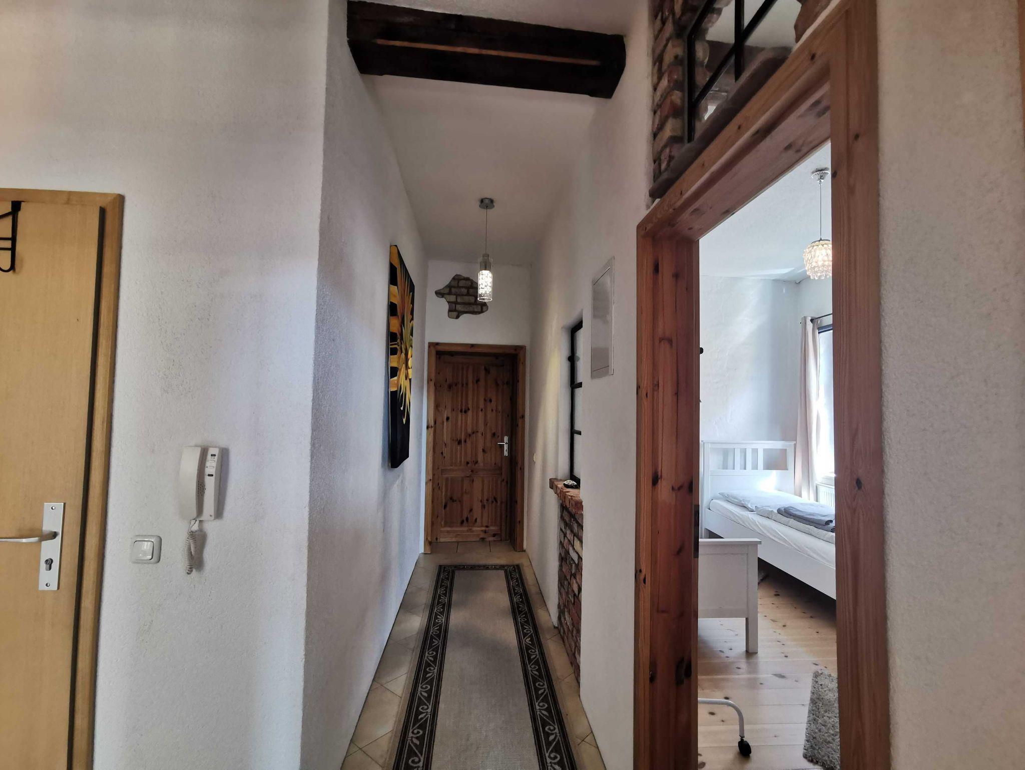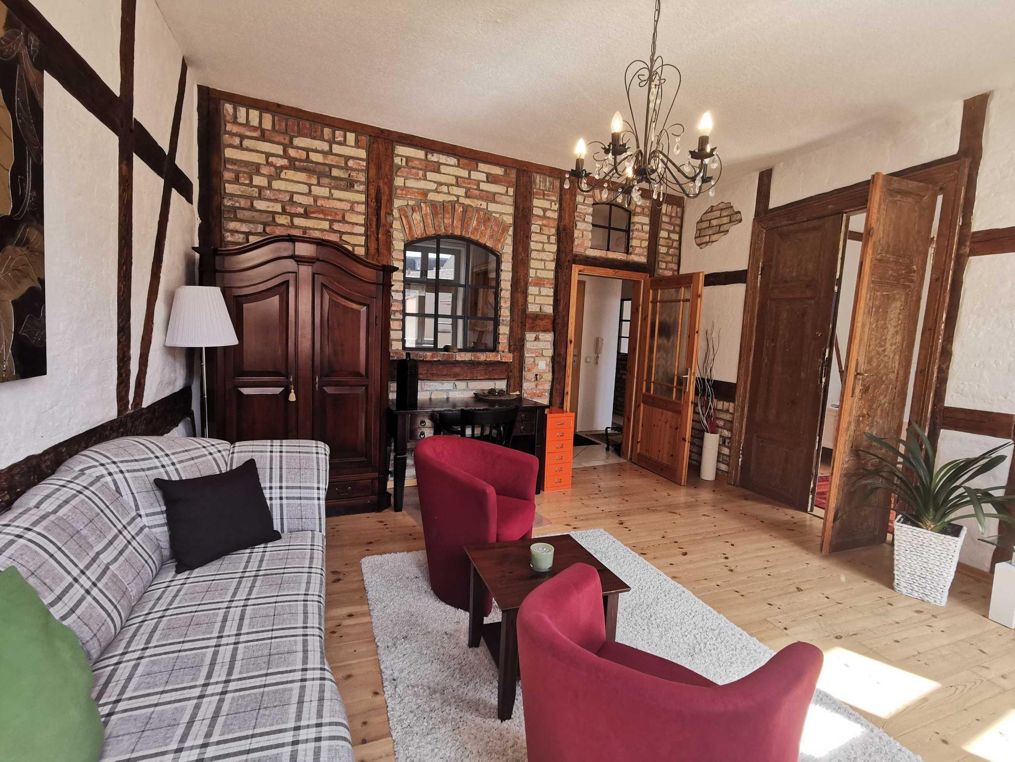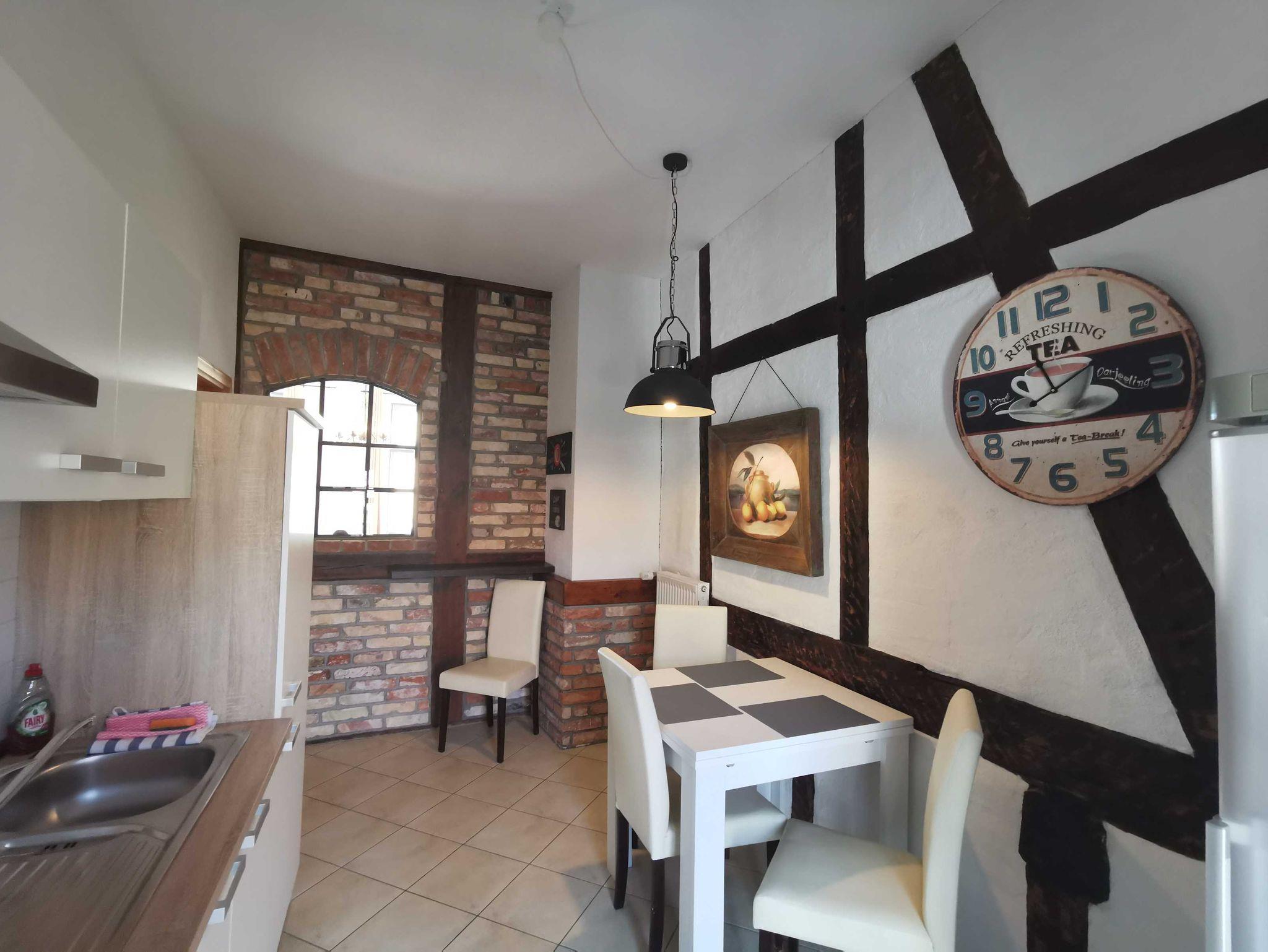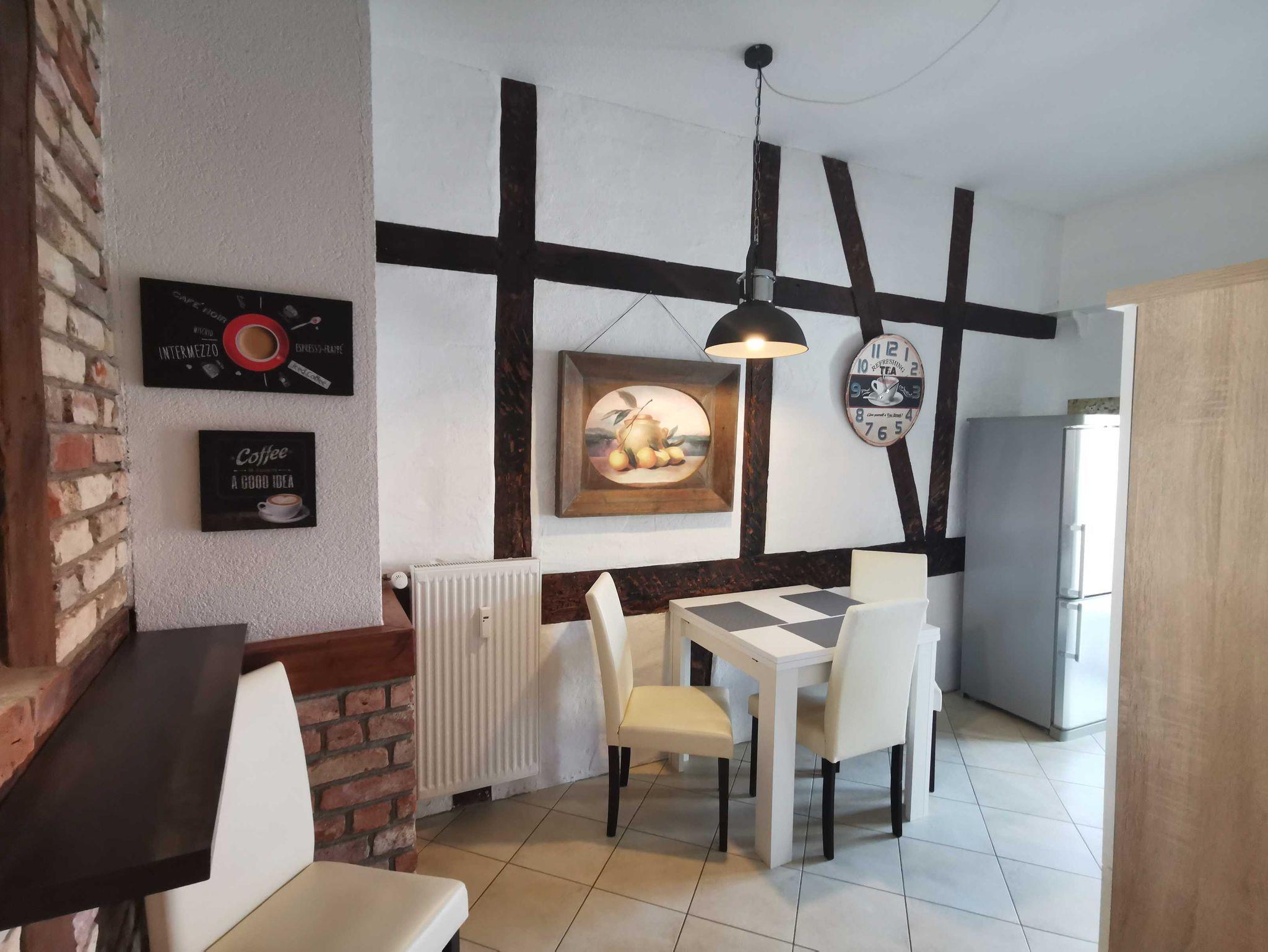 Unsere Ferienwohnung Utkiek 2, ideal für 2 ? 5 Personen, befindet sich im 2. OG in der Frankenstraße 49 in Stralsund, mit Dielen & Fliesen, offener Küche, Balkon, offenem historisches Fachwerk.