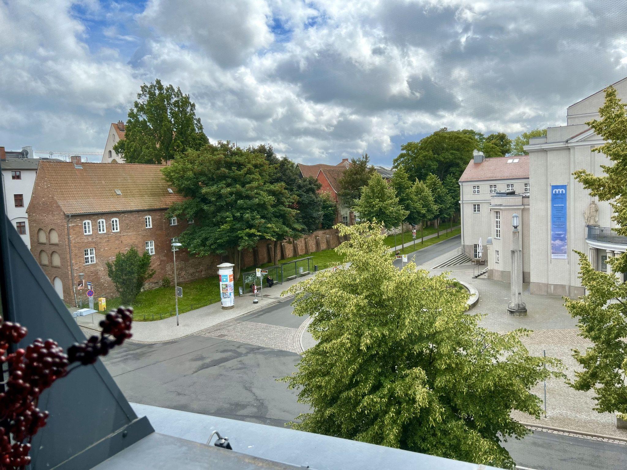Charmante Maisonette-Ferienwohnung am Olof-Palme-Platz in Stralsund mit Blick auf Theater und Hafen.
