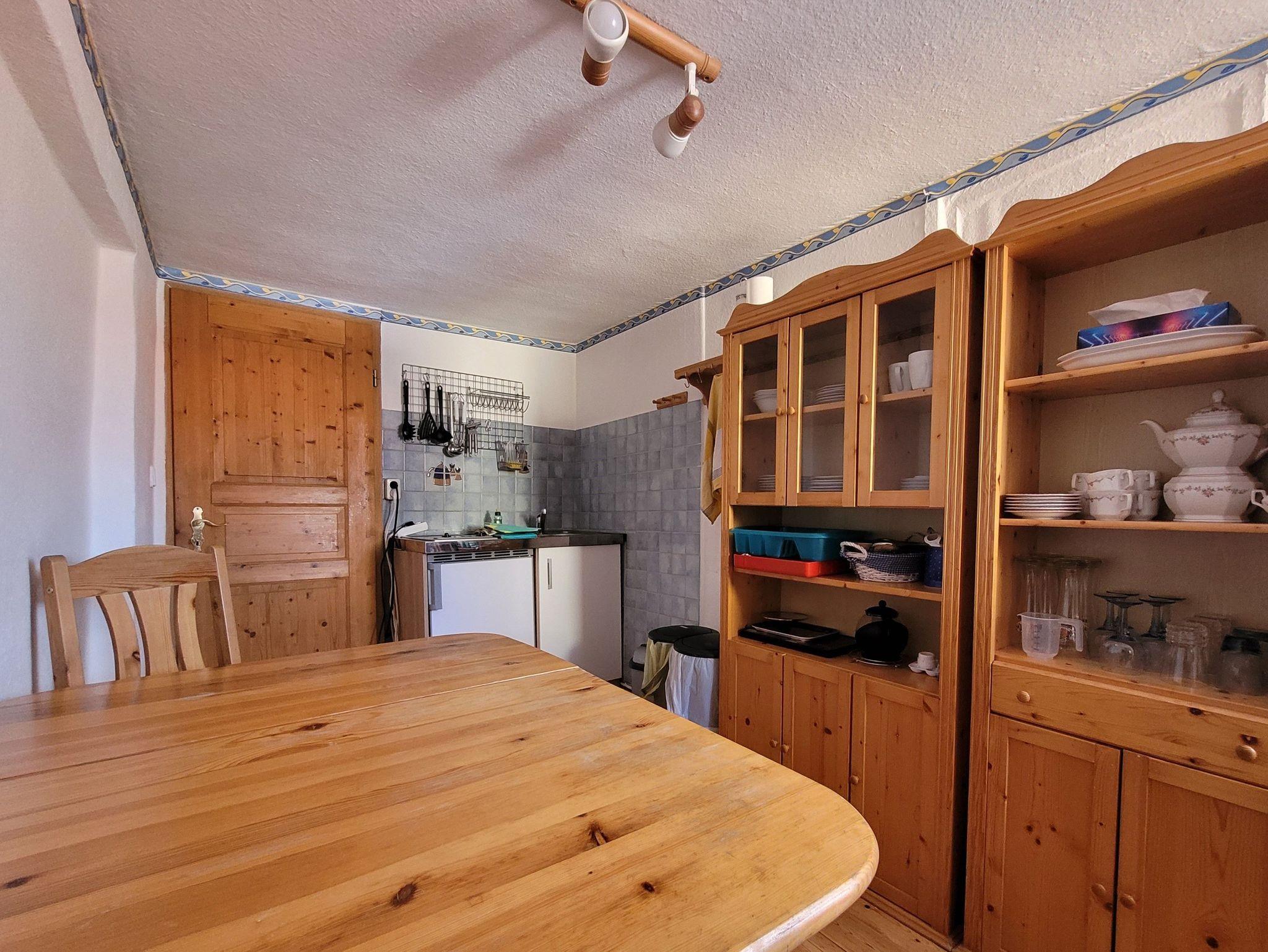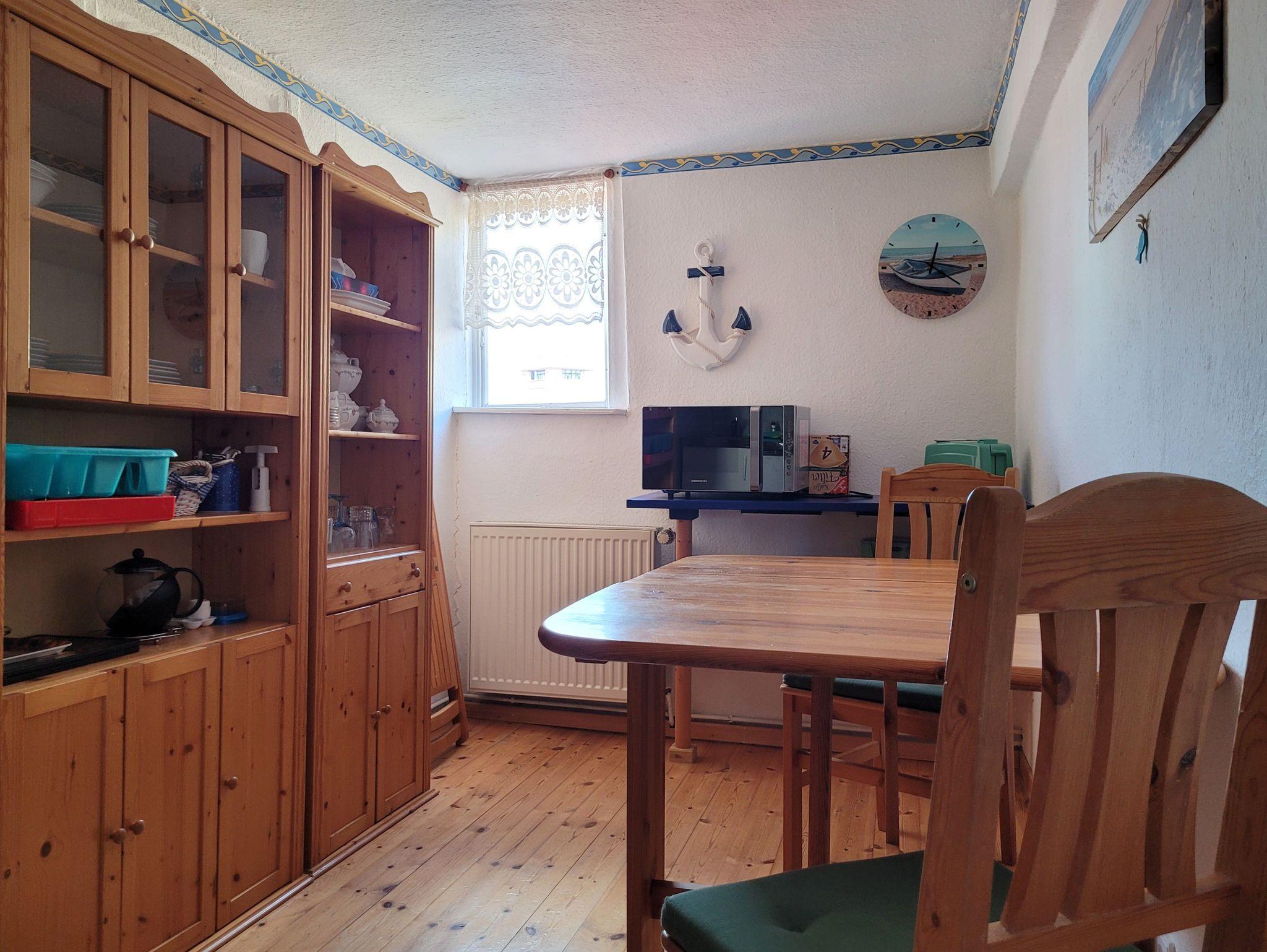 Die kleine süße Küche bietet, was zwei bis drei Personen für einen Aufenthalt benötigen mit Zweiplatten-Ceranherd, Mikrowelle, Kühlschrank mit Tiefkühlfach, Toaster, Wasserkocher und Kaffeemaschine.