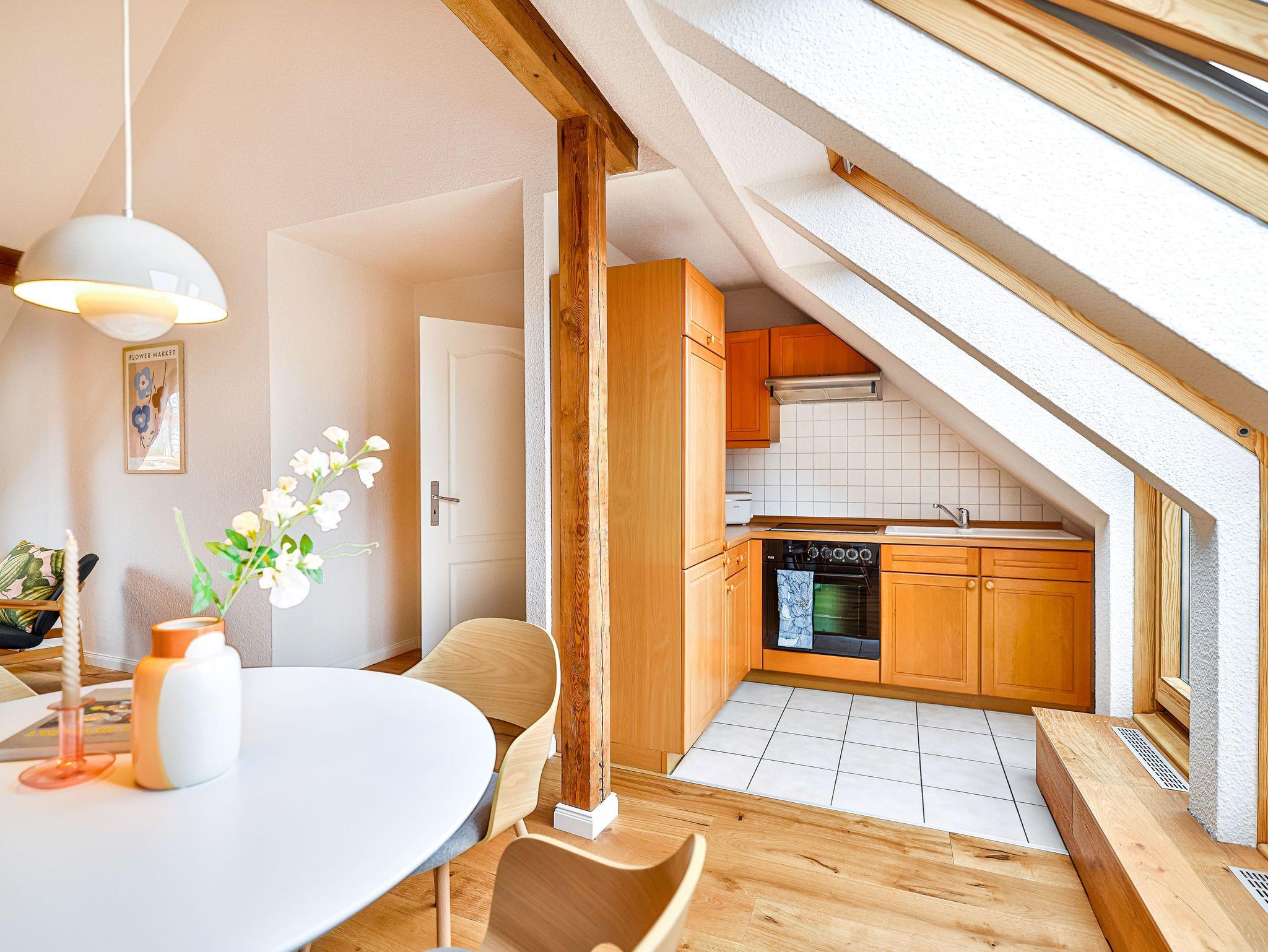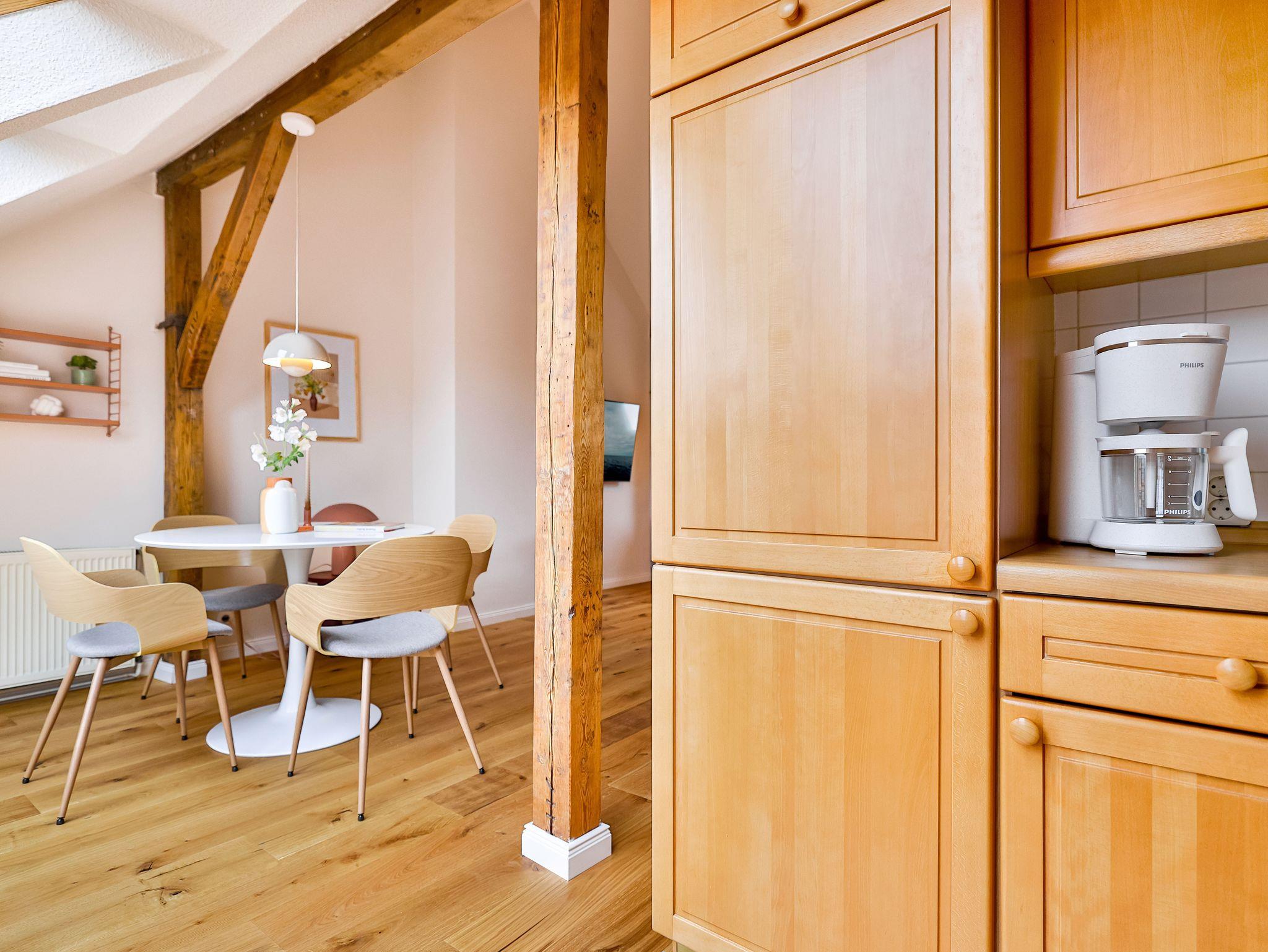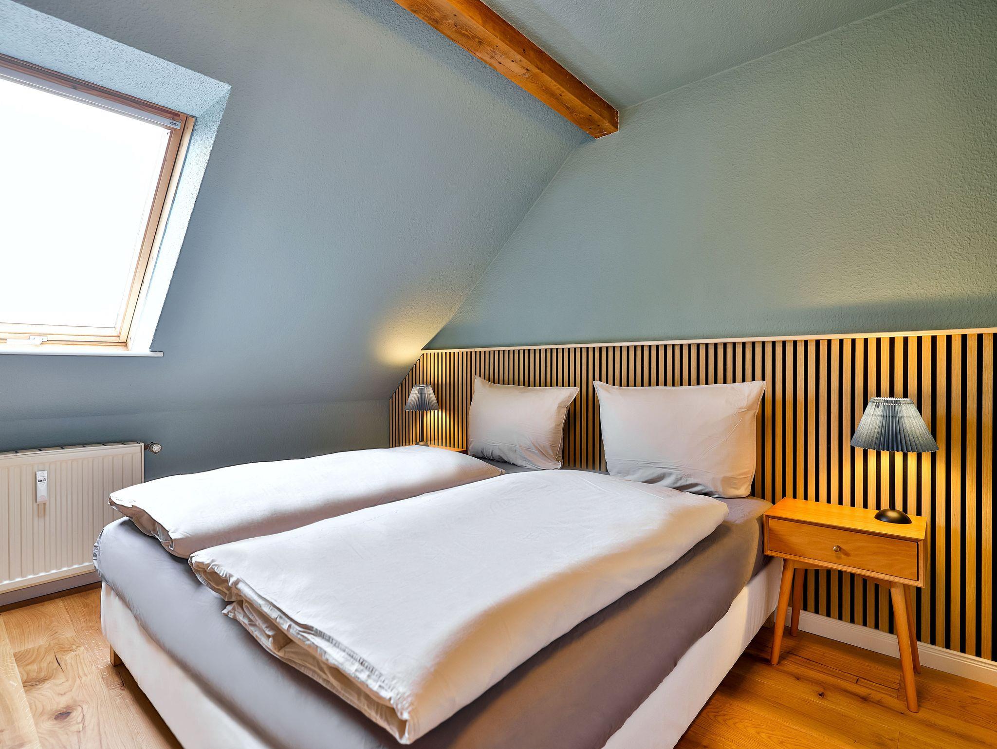 Einkaufsmöglichkeiten (Supermarkt) und Bushaltestelle sind 2 Gehminuten entfernt. Bis in das Zentrum (Markt) benötigt man 5 Gehminuten. Die Wohnung liegen im 1.OG und 2.OG eines komplett sanierten Apartmenthauses und verfügen über einen großen Garten im Hof. Die Gemeinschaftsterrasse und die Rasenflächen dürfen gerne von den Gästen genutzt werden.