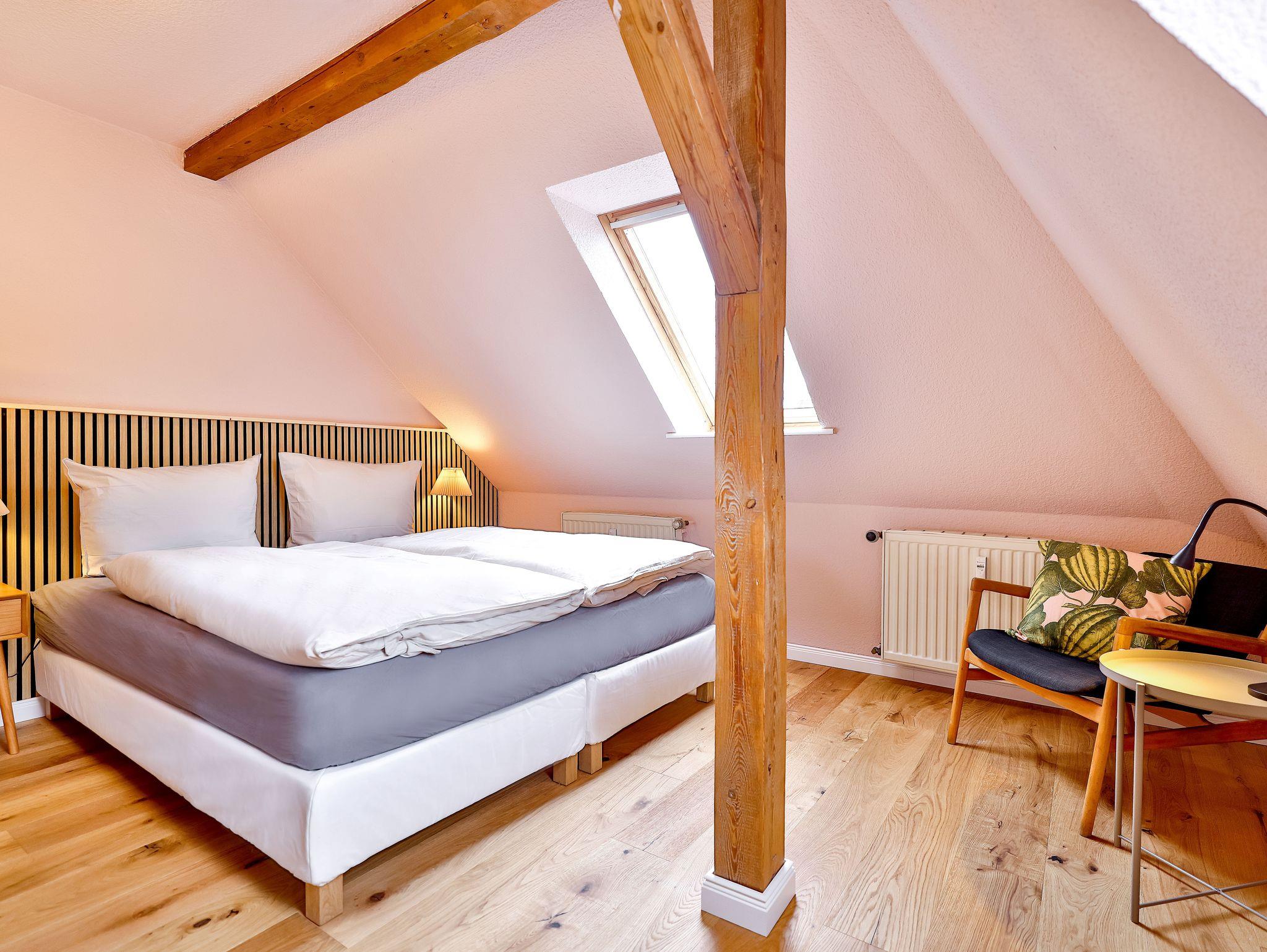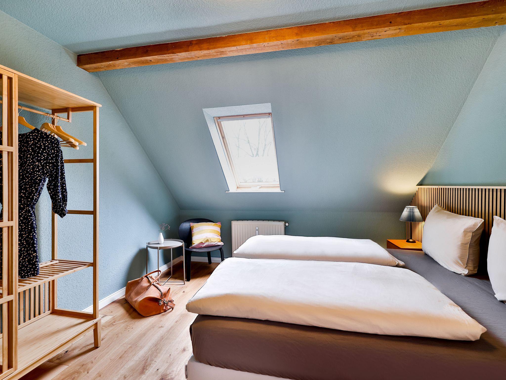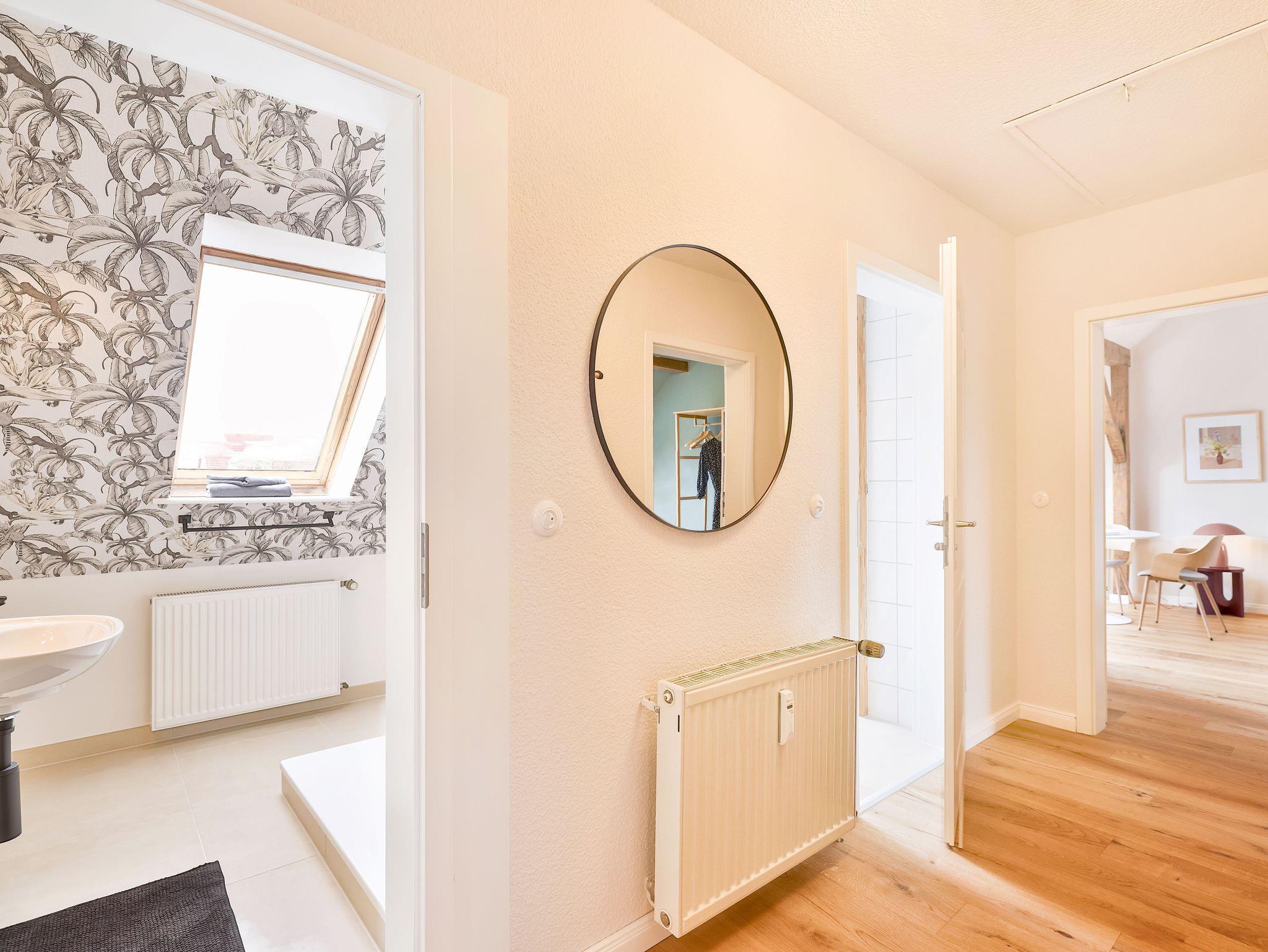 Einkaufsmöglichkeiten (Supermarkt) und Bushaltestelle sind 2 Gehminuten entfernt. Bis in das Zentrum (Markt) benötigt man 5 Gehminuten. Die Wohnung liegen im 1.OG und 2.OG eines komplett sanierten Apartmenthauses und verfügen über einen großen Garten im Hof. Die Gemeinschaftsterrasse und die Rasenflächen dürfen gerne von den Gästen genutzt werden.