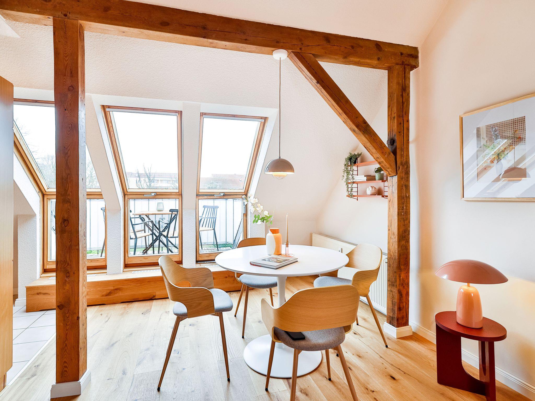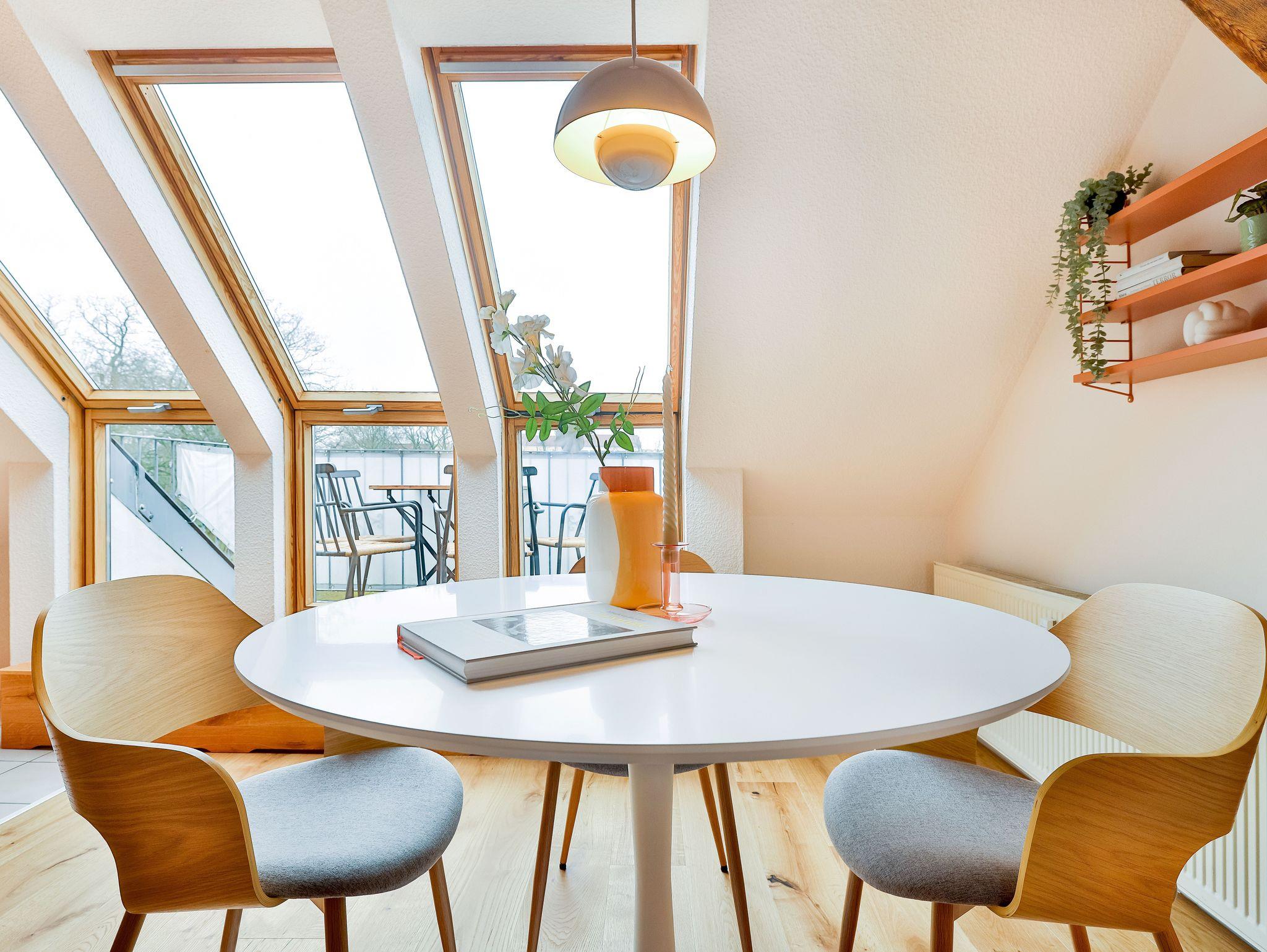 Ruhige Ferienwohnung in Stralsund mit Garten, Terrasse, Balkon und moderner Ausstattung im grünen Viertel.